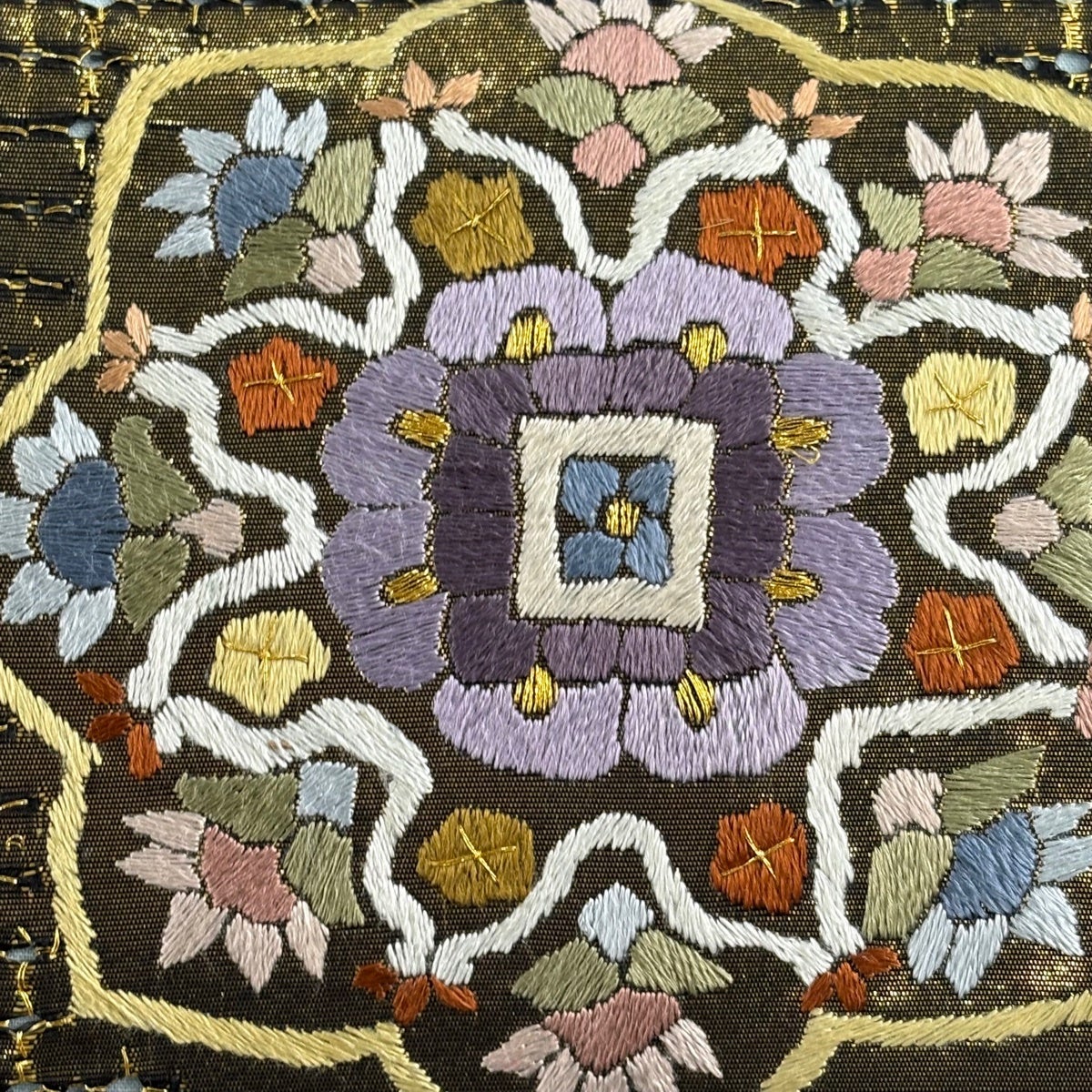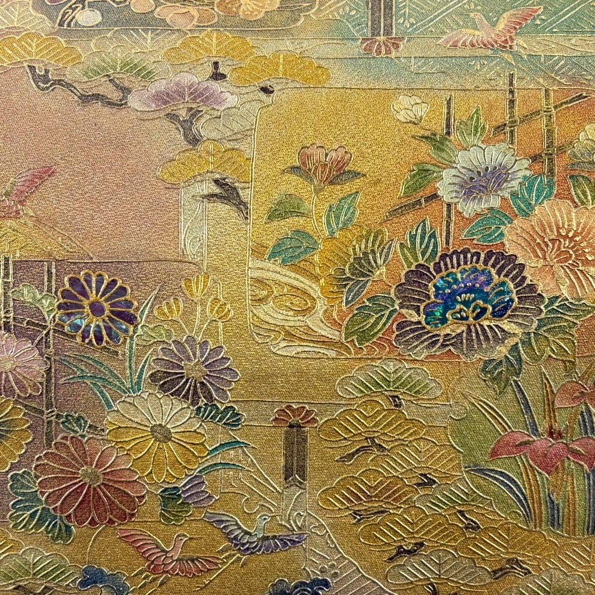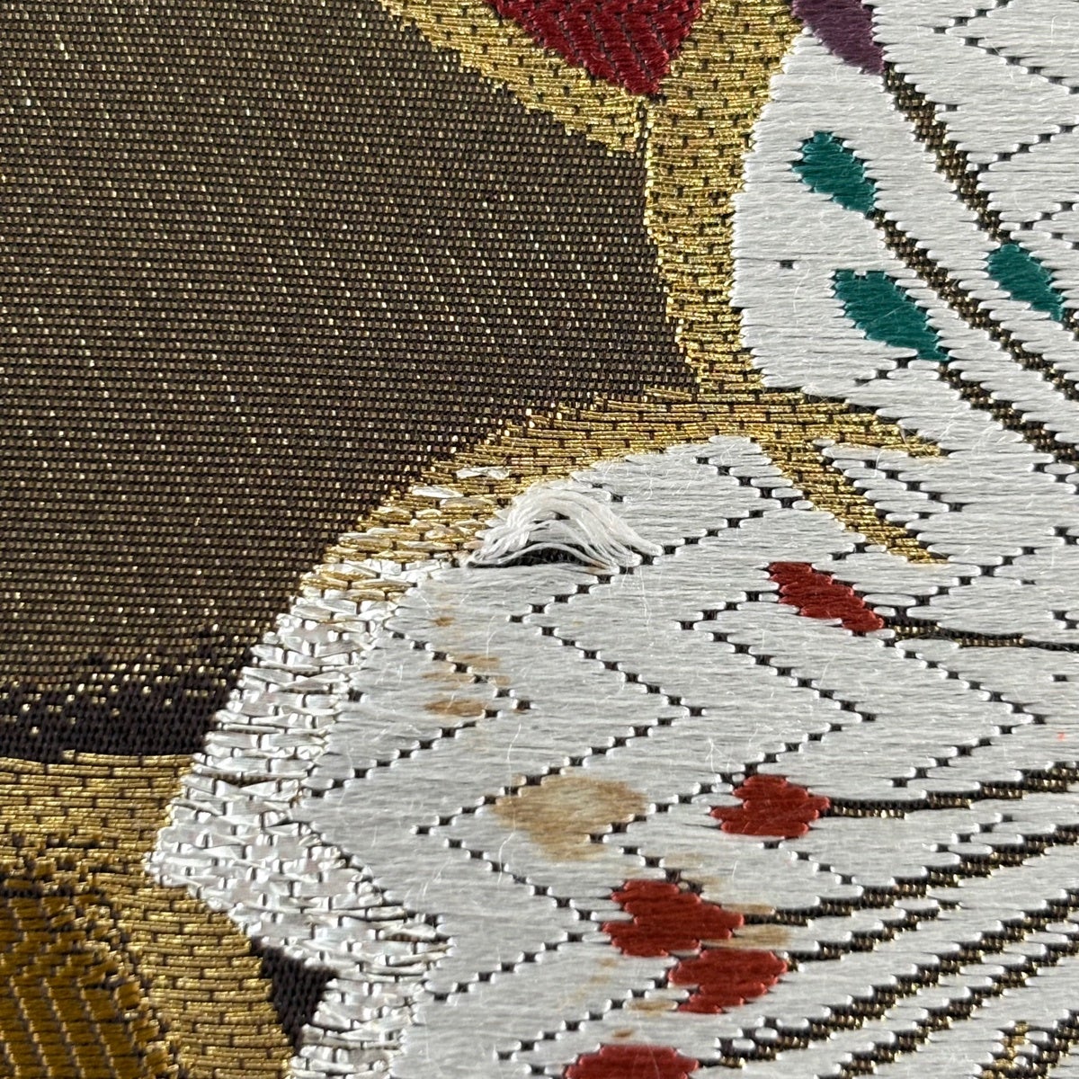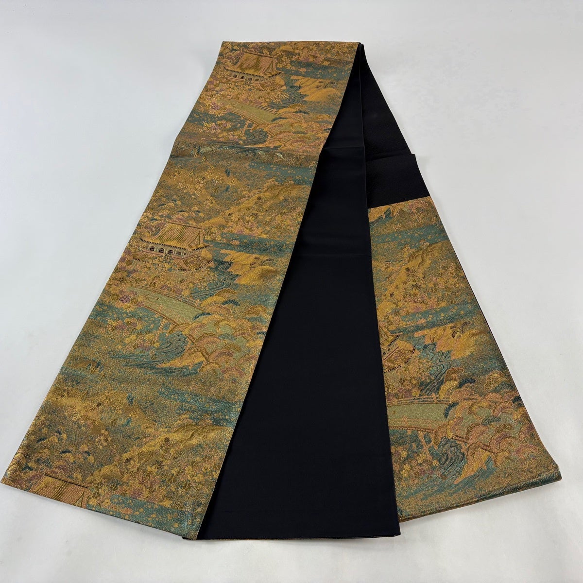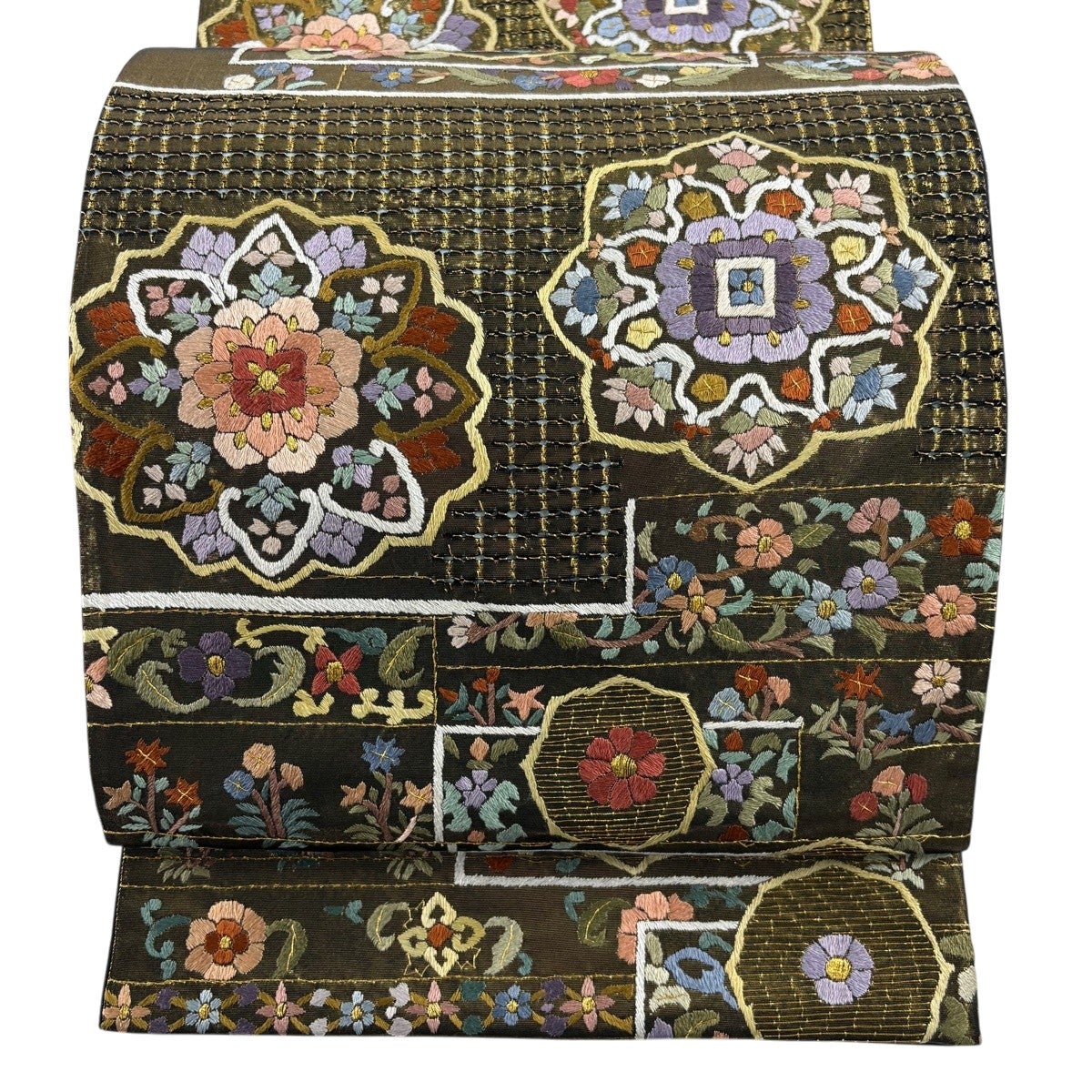50%OFF 袋帯 秀品 花びら 幾何学 金糸 金茶 全通 正絹 K50
