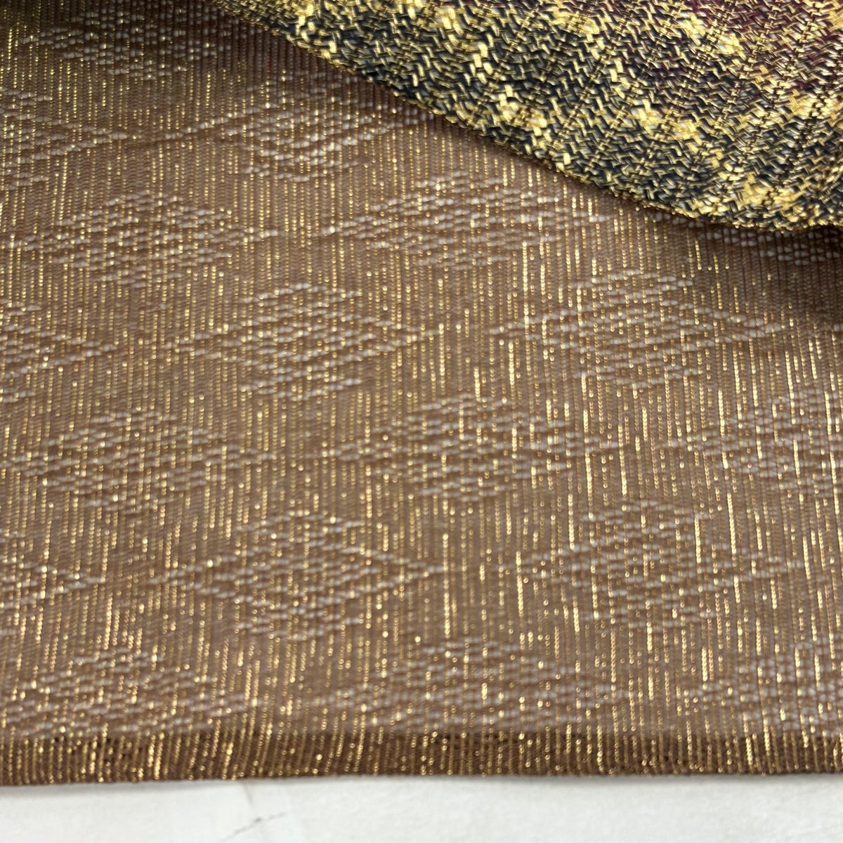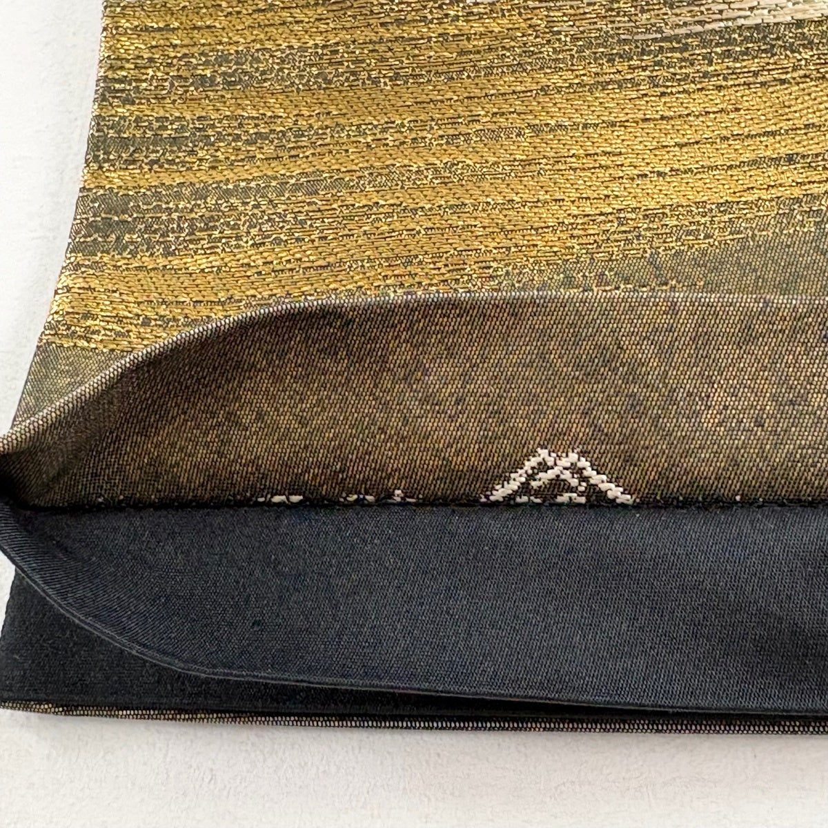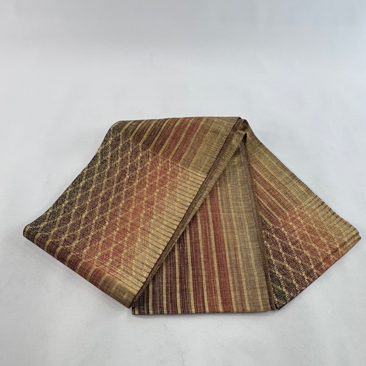 30%OFF 袋帯 秀品 斜め格子 縞 金糸 金茶 全通 正絹 K30