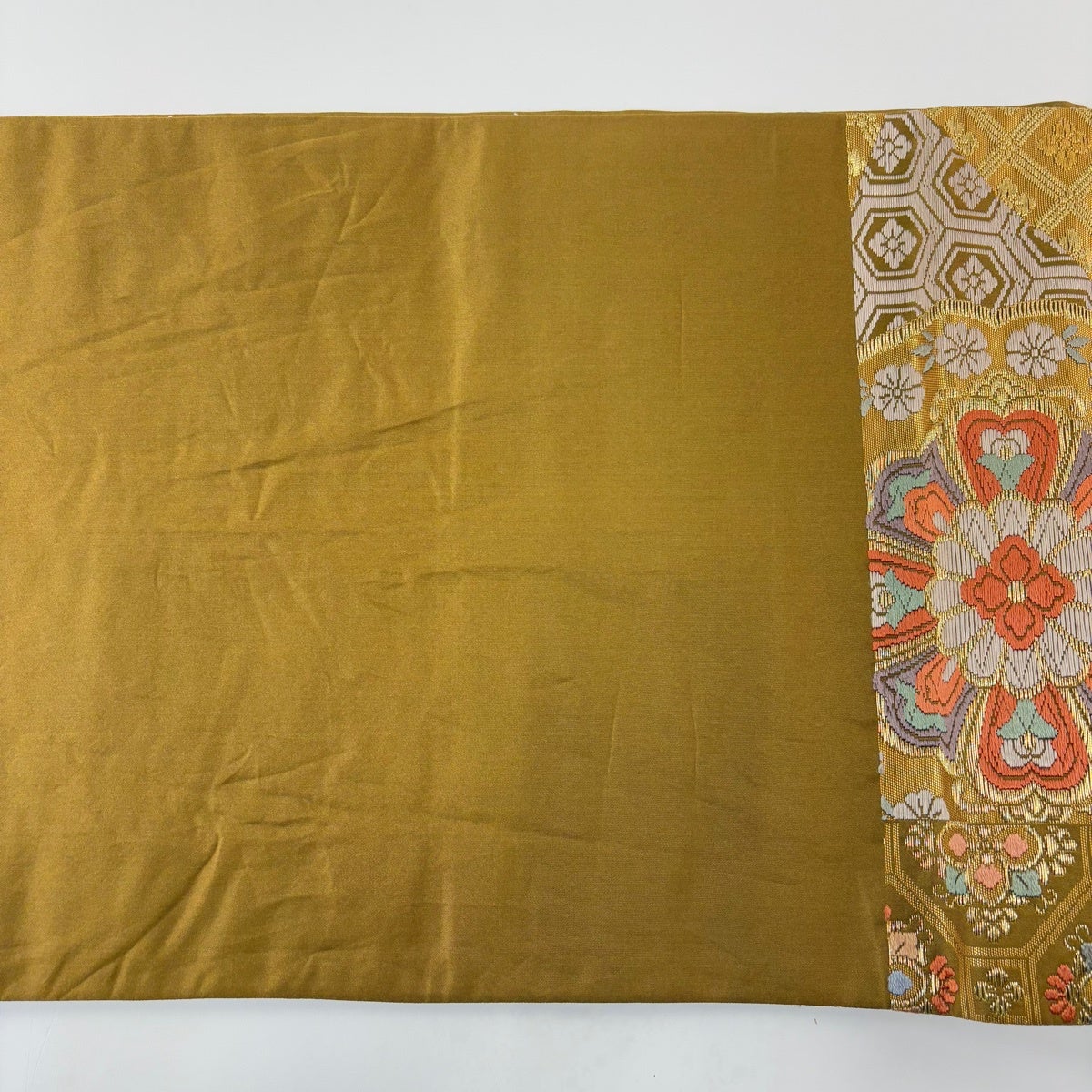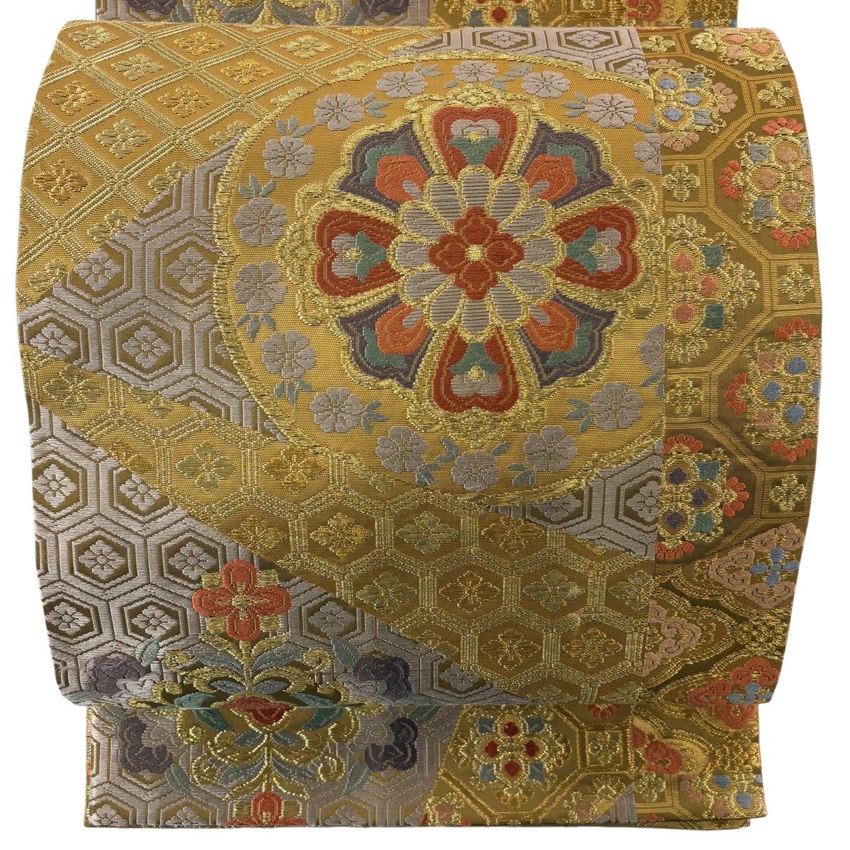 50%OFF 袋帯 秀品 花びら 幾何学 金糸 金茶 全通 正絹 K50