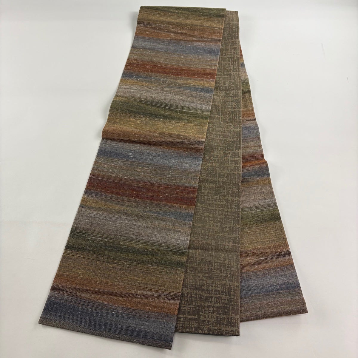 30%OFF 袋帯 秀品 斜め格子 縞 金糸 金茶 全通 正絹 K30