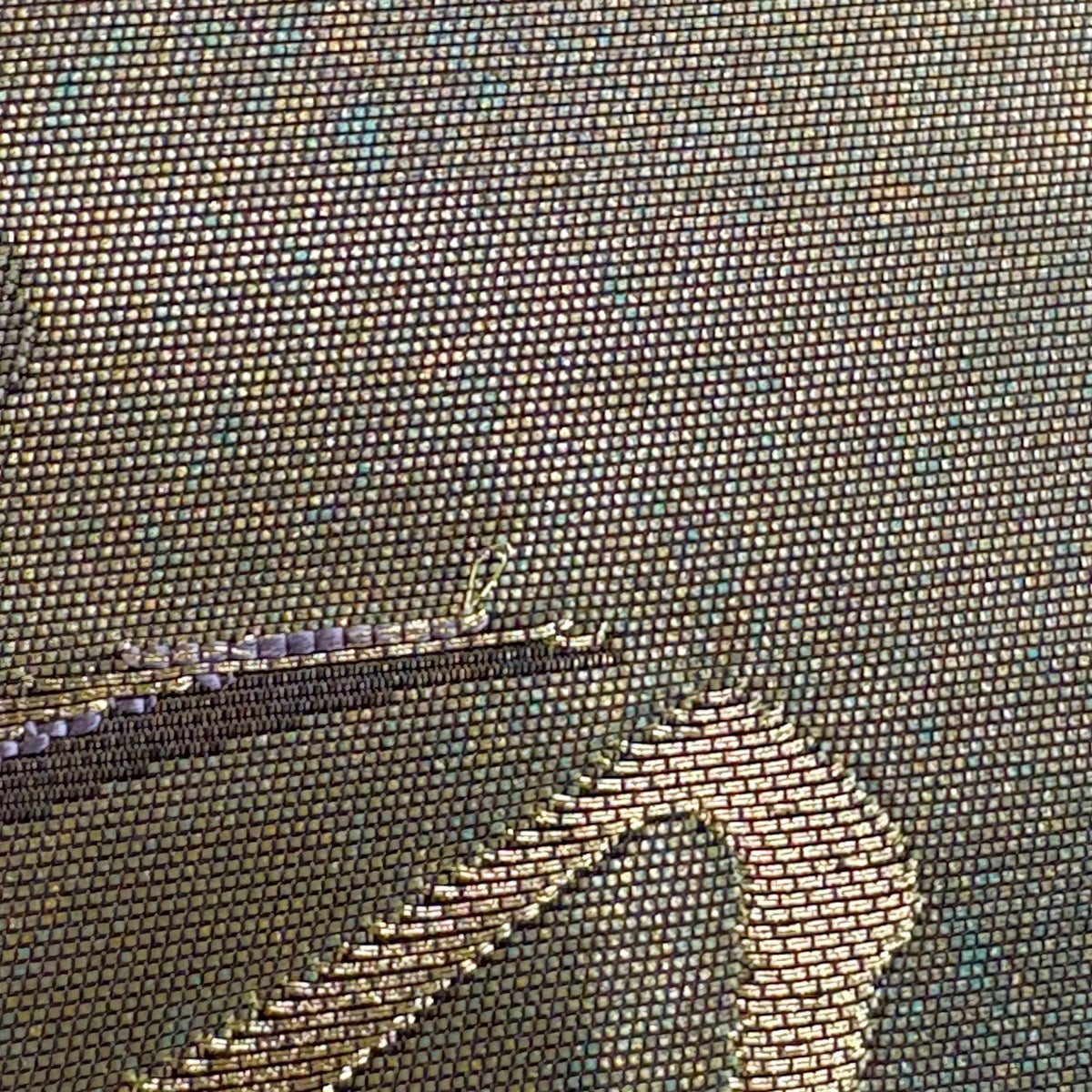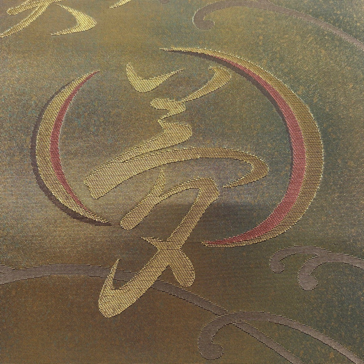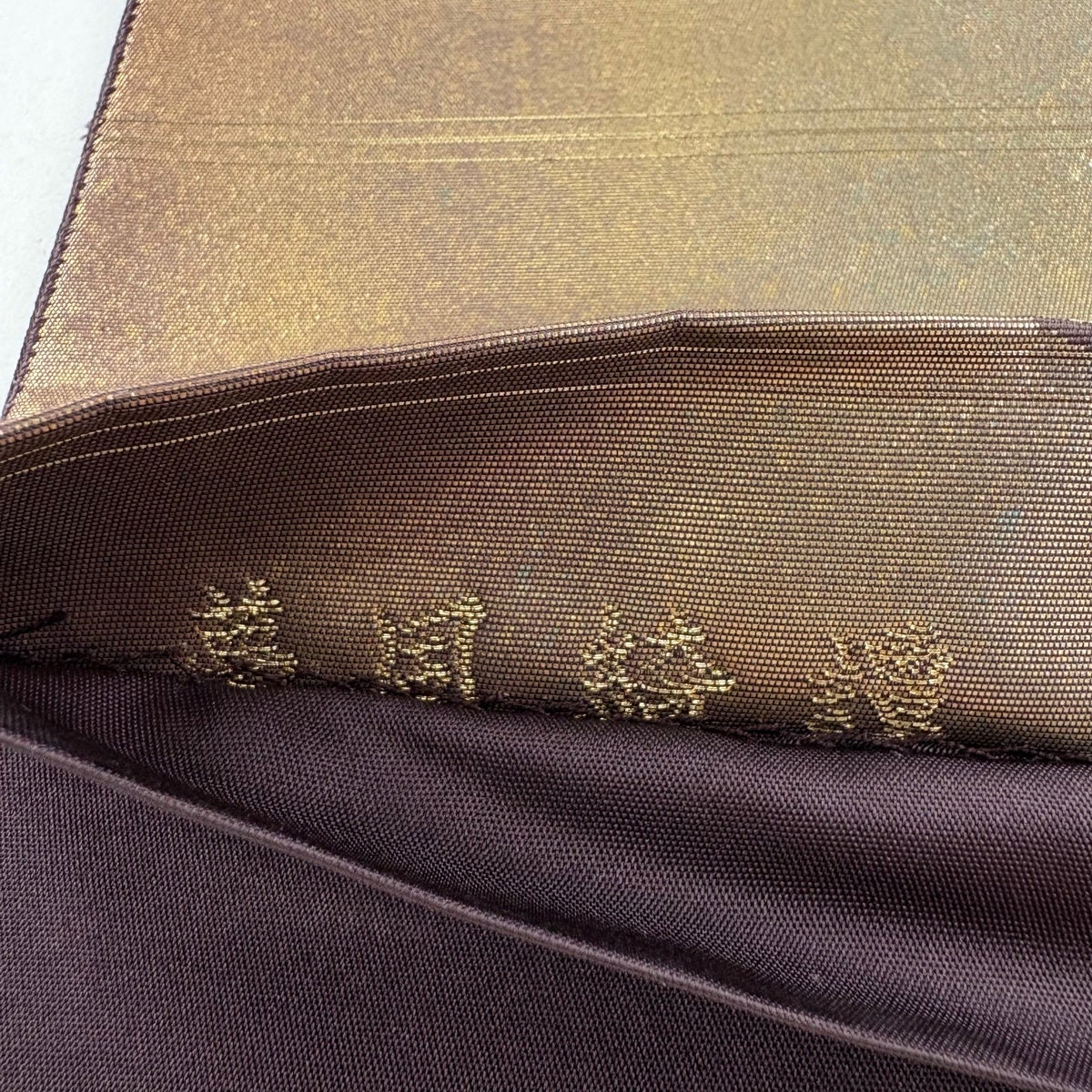 50%OFF 袋帯 秀品 草花 箔 唐織 金茶 六通 正絹 K50