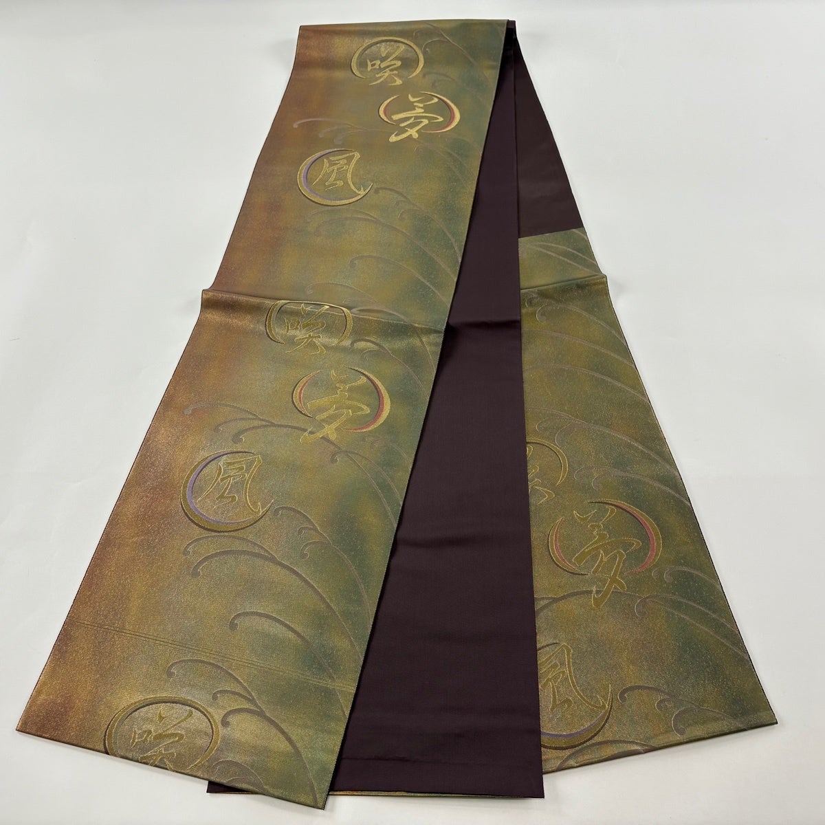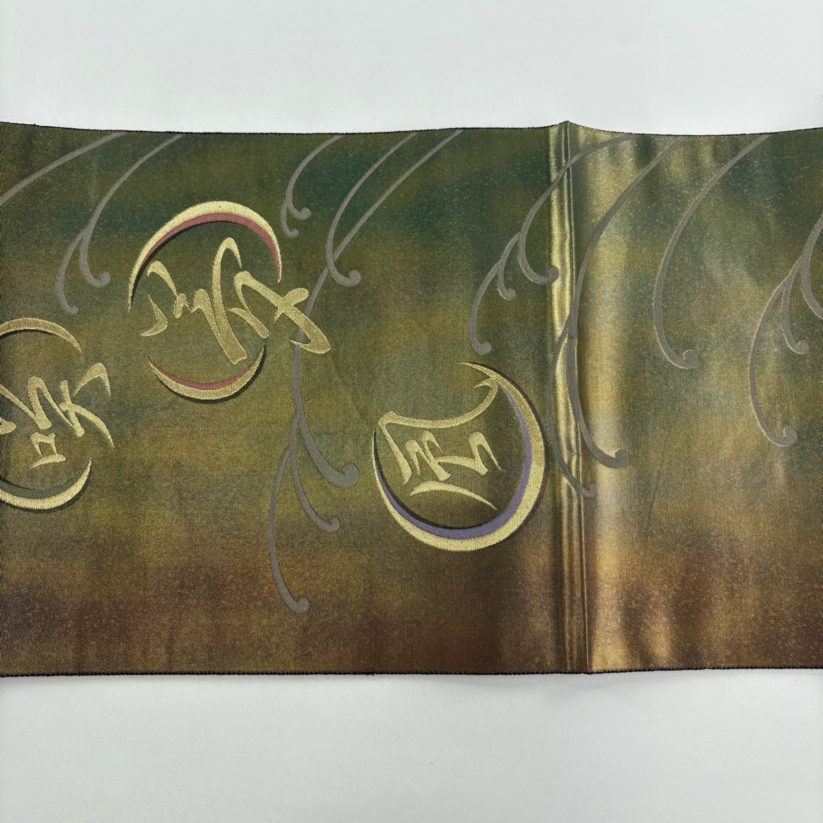 50%OFF 【美品】 袋帯 秀品 霞 箔 金茶 全通 正絹 K50