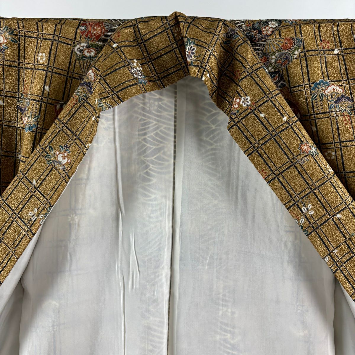 他の画像を見る 50%OFF 【美品】 小紋 身丈159.5cm 裄丈64.5cm M 袷 名古屋帯セット 扇 波 金彩 金茶 正絹 秀品 K50 当店通常価格 ¥ 20,800 ¥ 10,400 税込