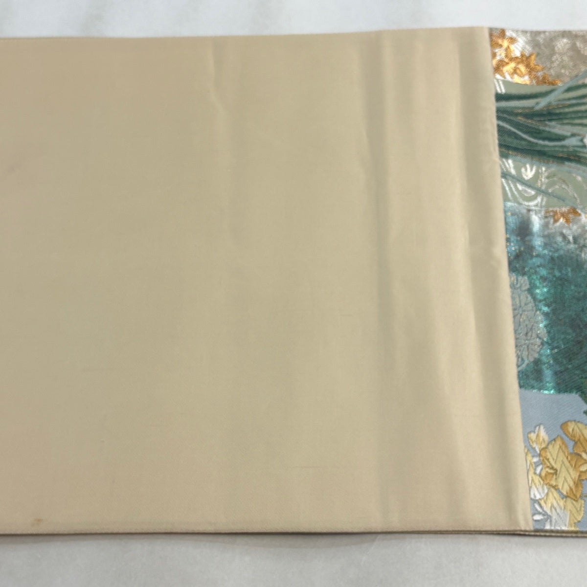 袋帯 秀品 屏風 貝合わせ 金糸 箔 銀色 お太鼓柄 正絹