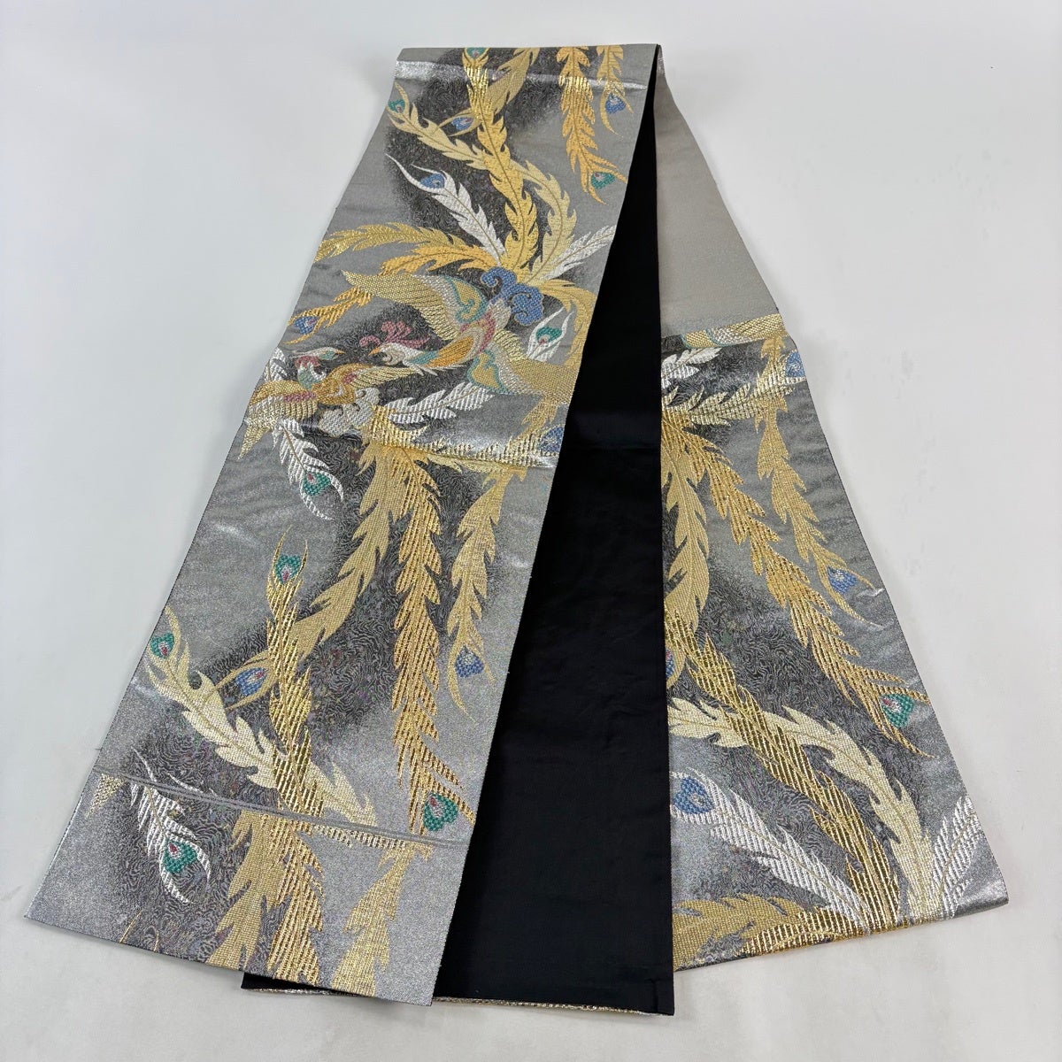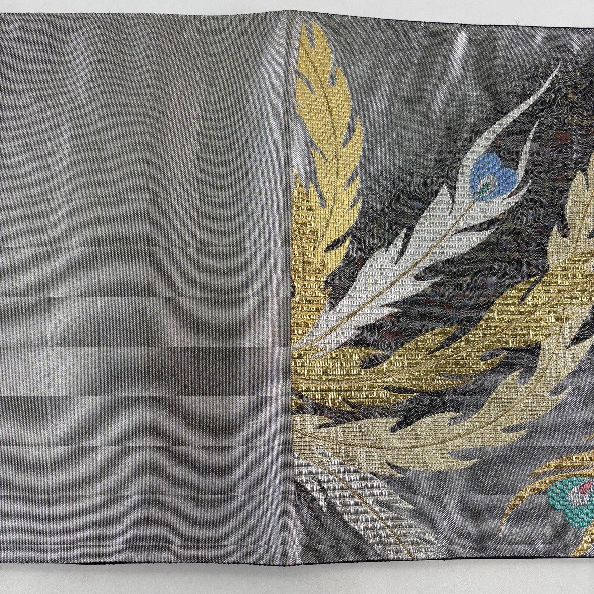 袋帯 秀品 鳳凰 幾何学模様 金銀糸 箔 銀色 六通 正絹