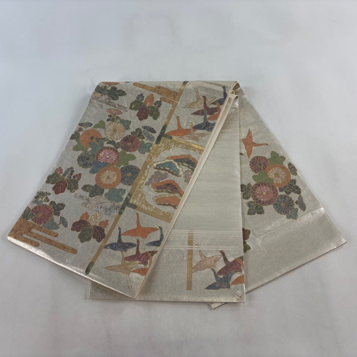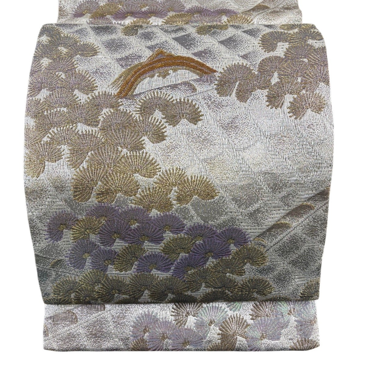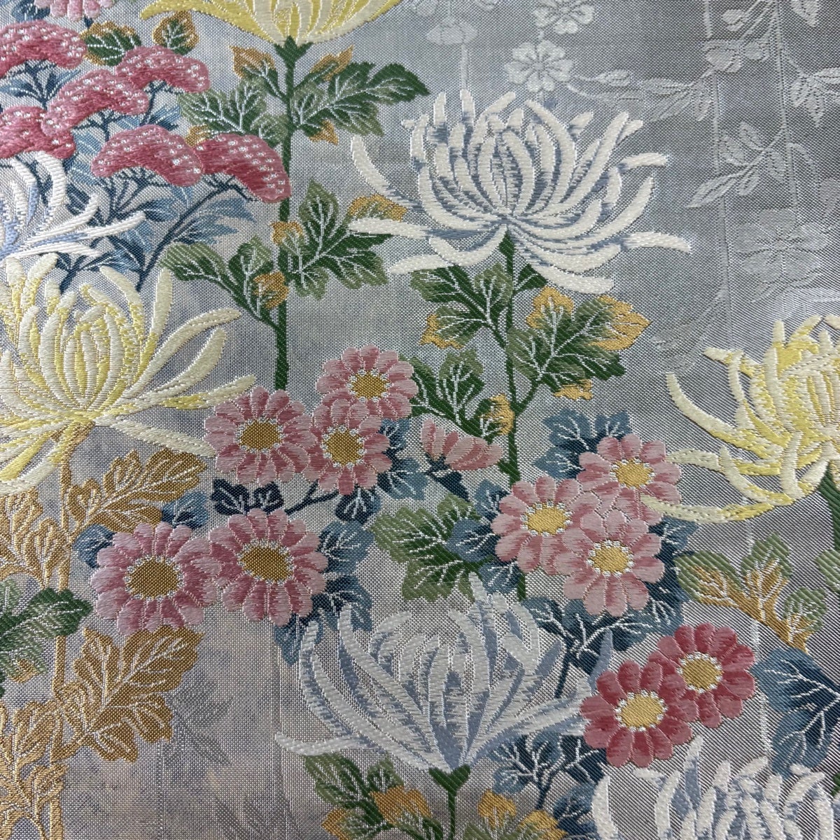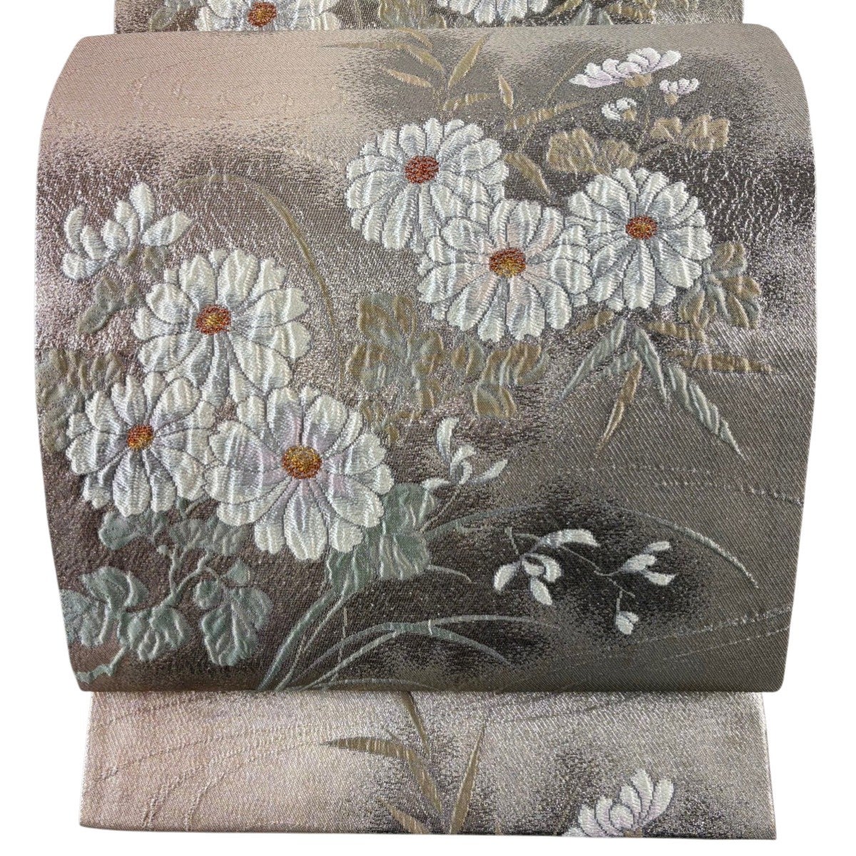 50%OFF 袋帯 秀品 菊 金糸 箔 銀色 六通 正絹 K50