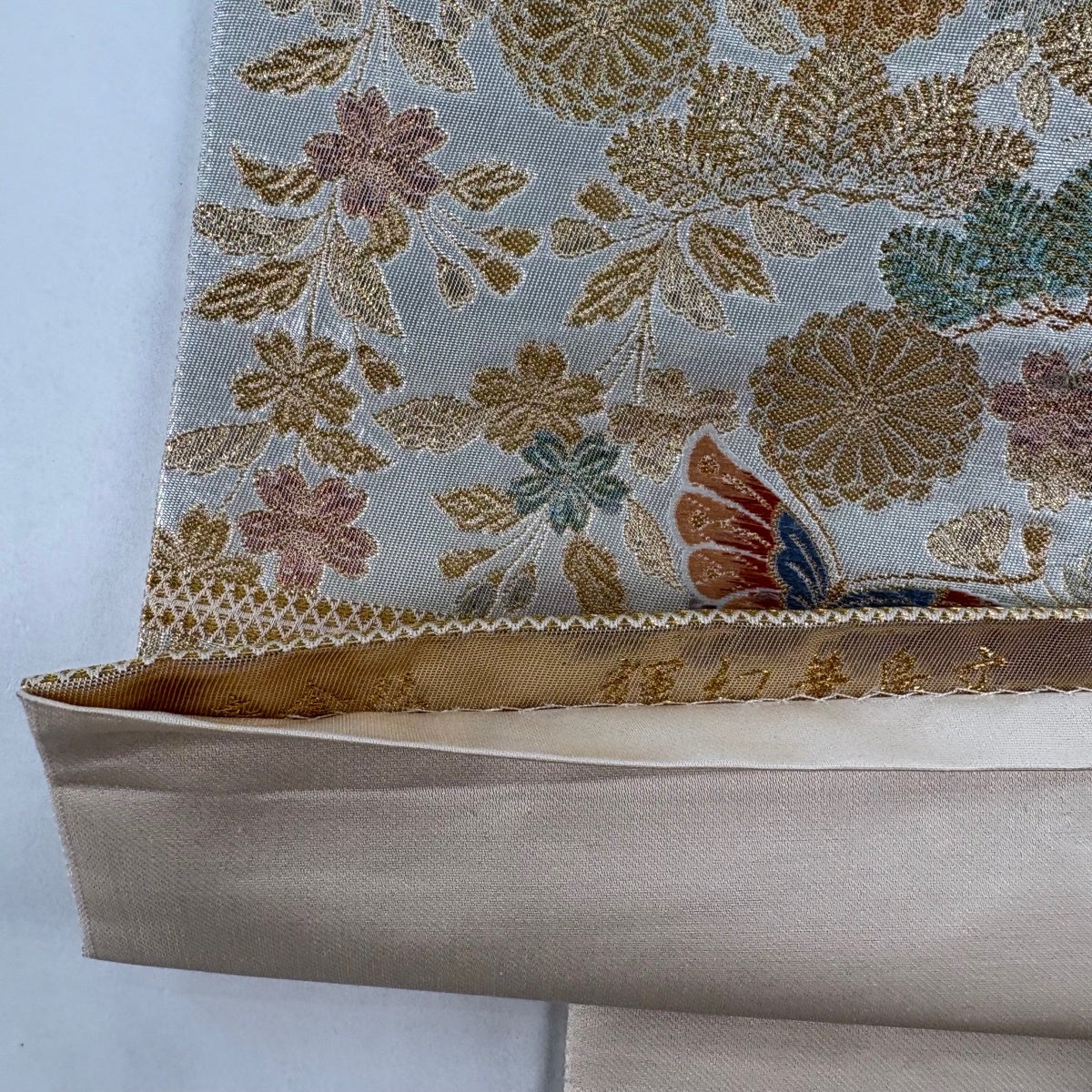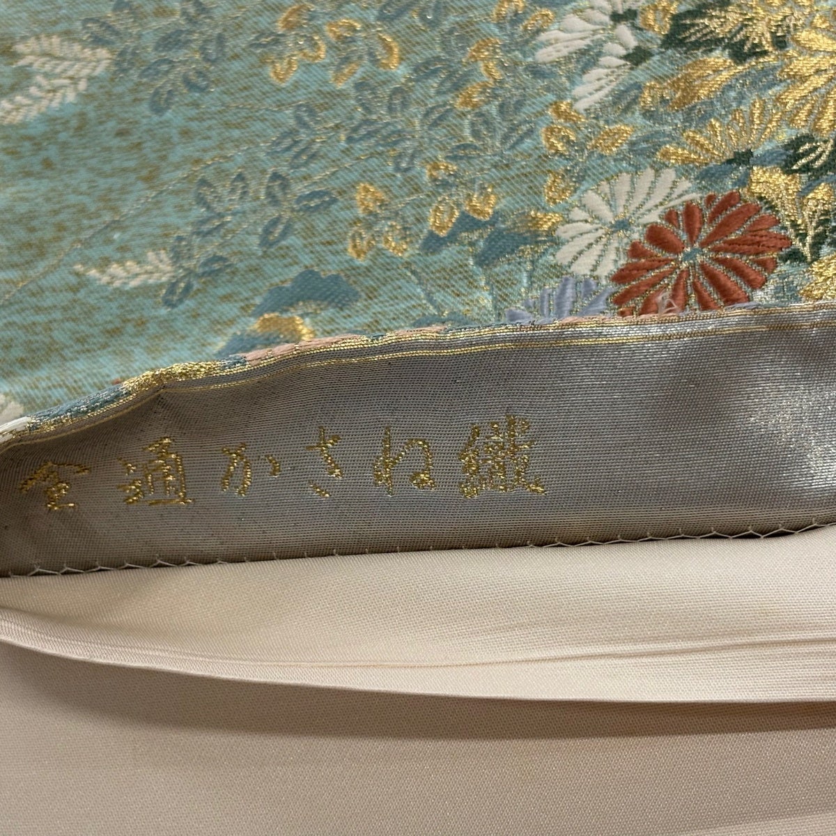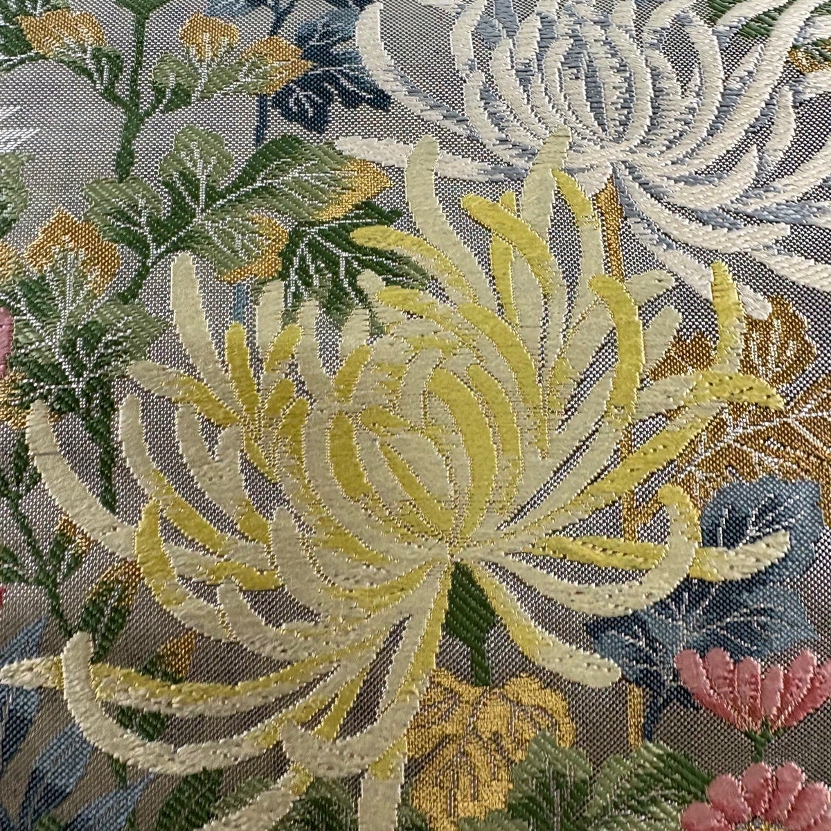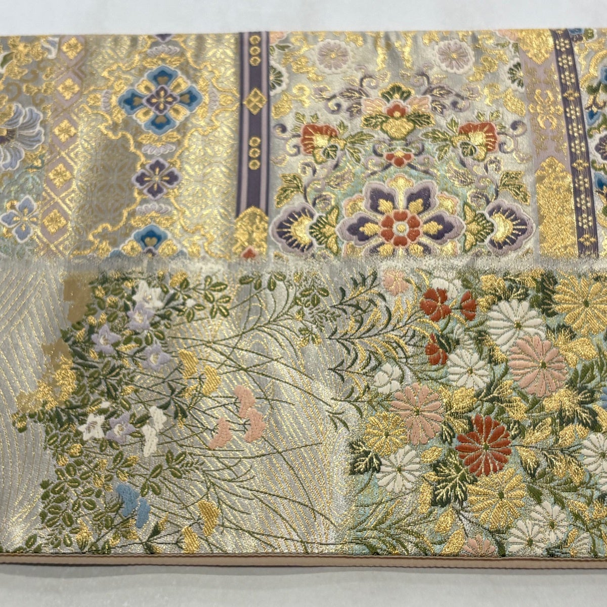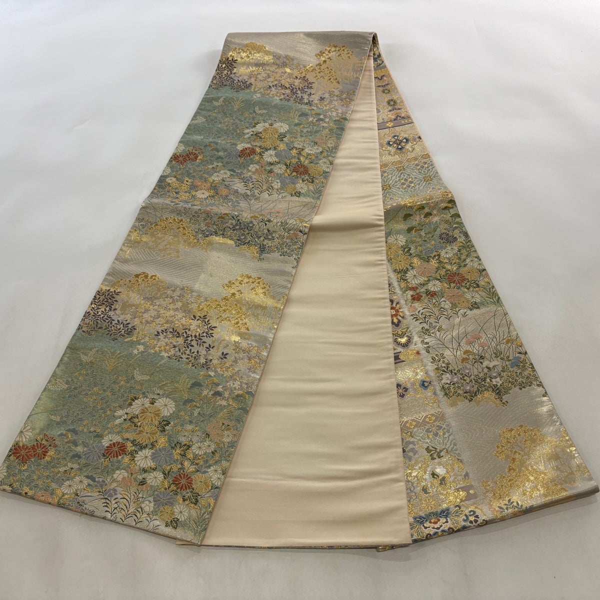 50%OFF 袋帯 秀品 菊 金糸 箔 銀色 六通 正絹 K50