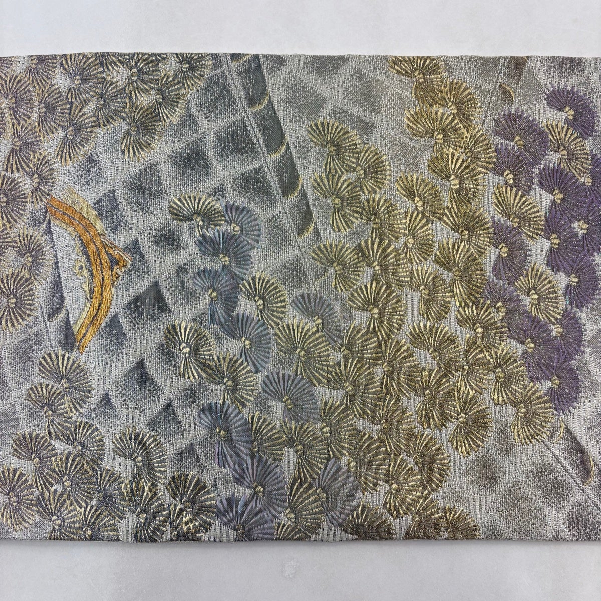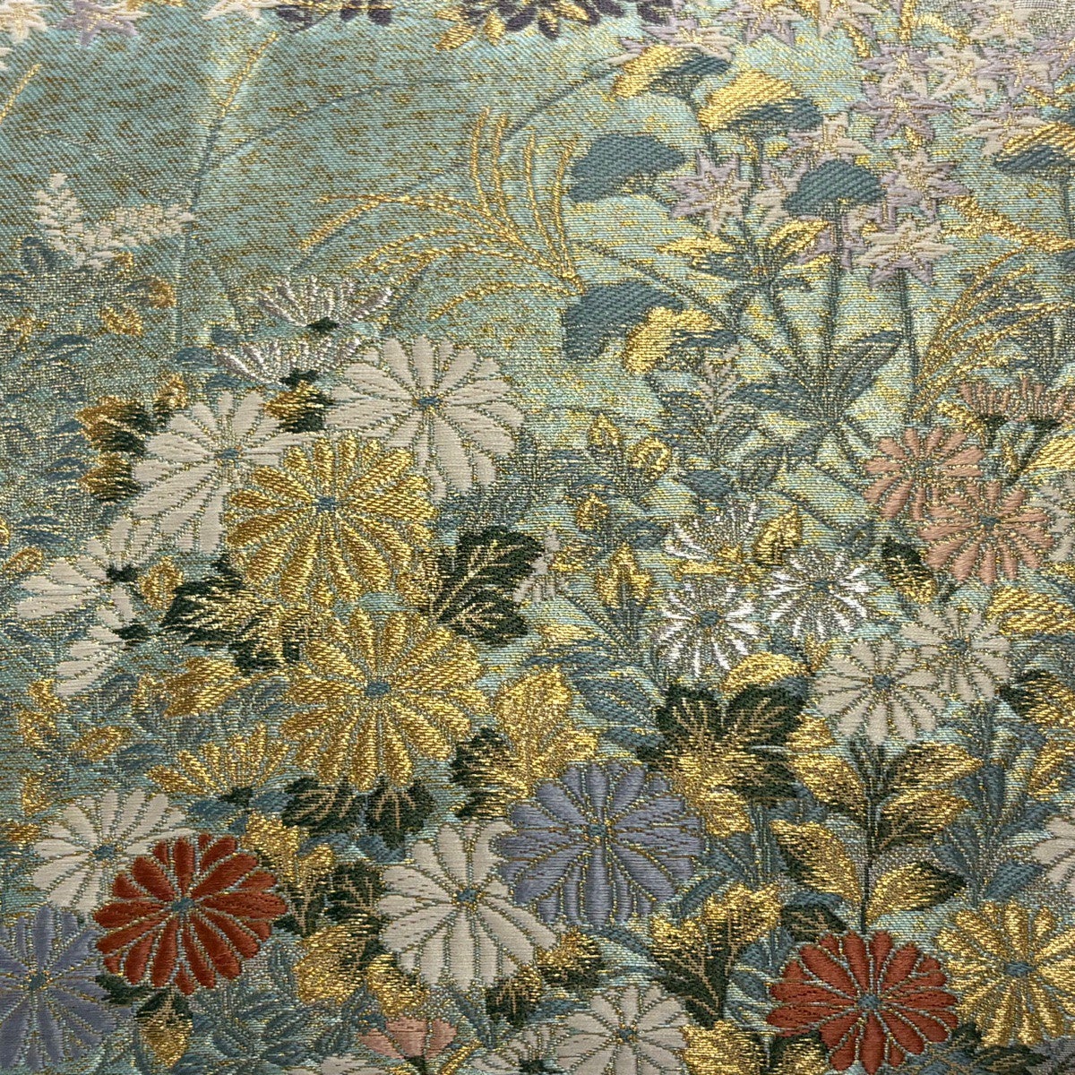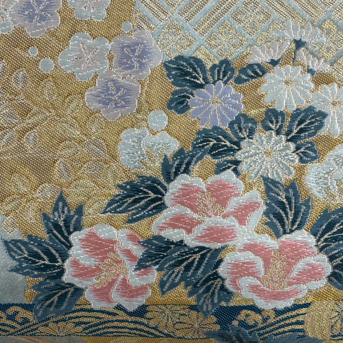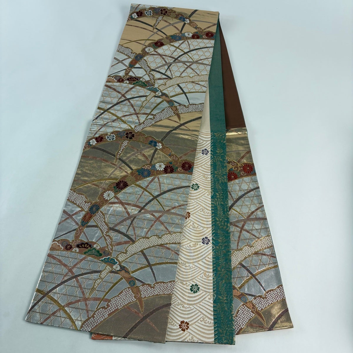 50%OFF 袋帯 秀品 菊 金糸 箔 銀色 六通 正絹 K50