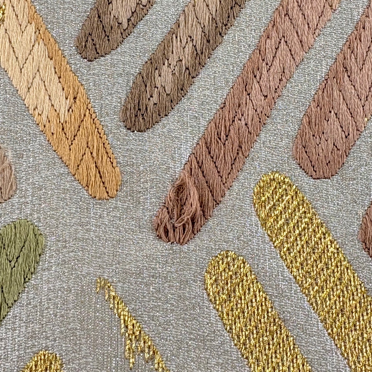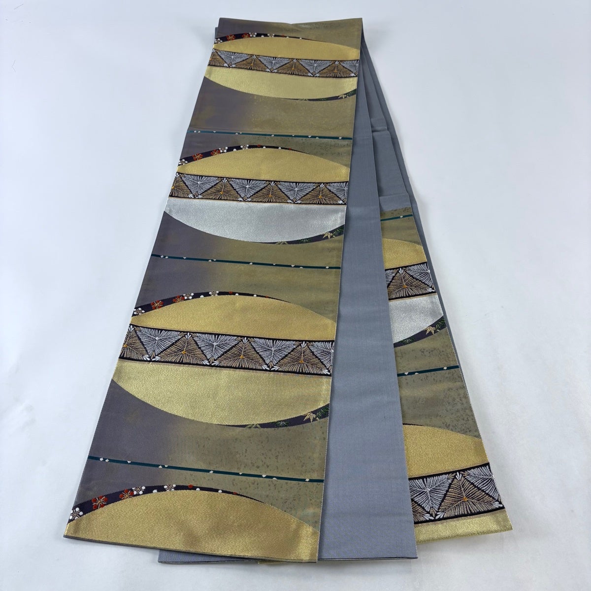 30%OFF 袋帯 秀品 幾何学 箔 銀糸 銀色 六通 正絹 K30