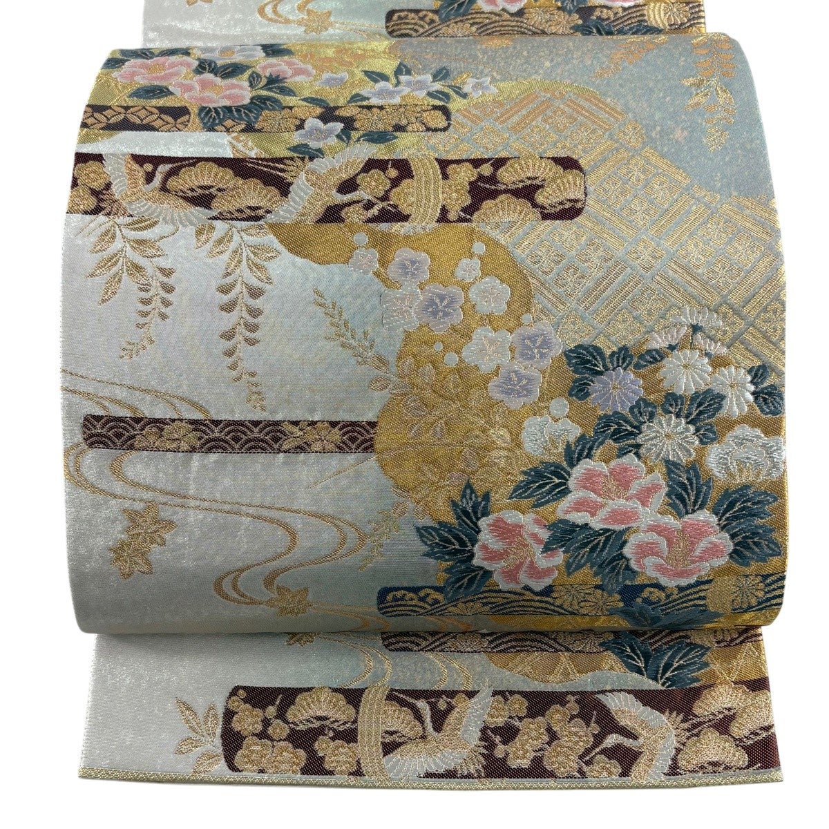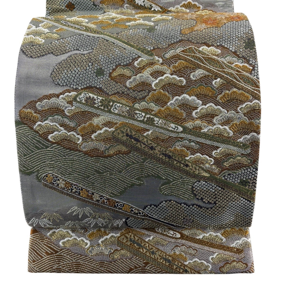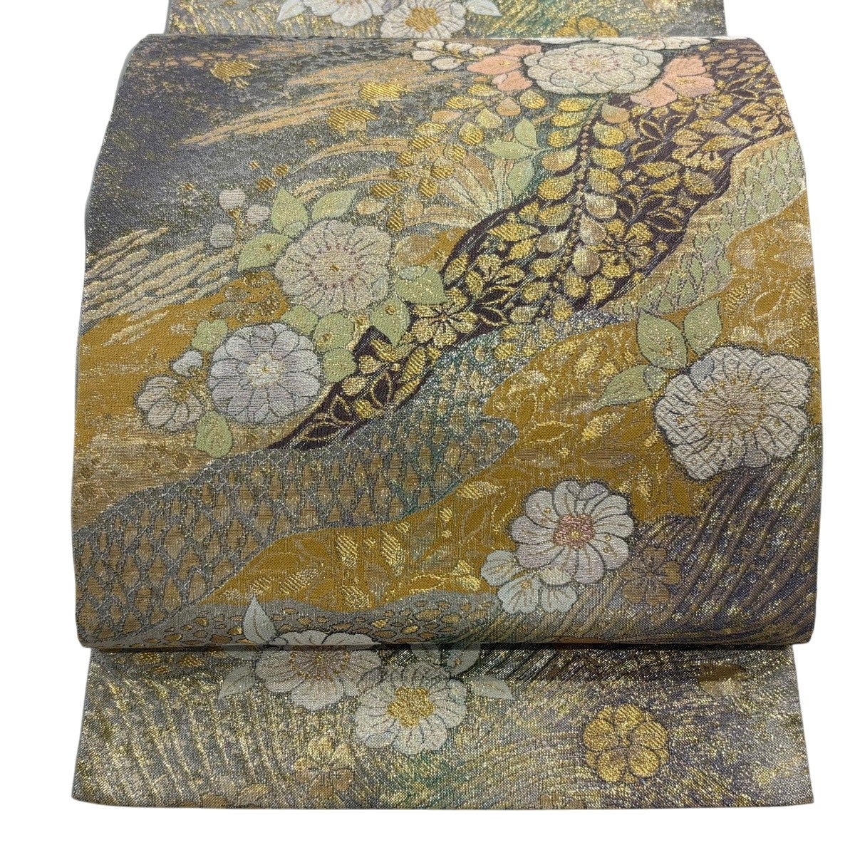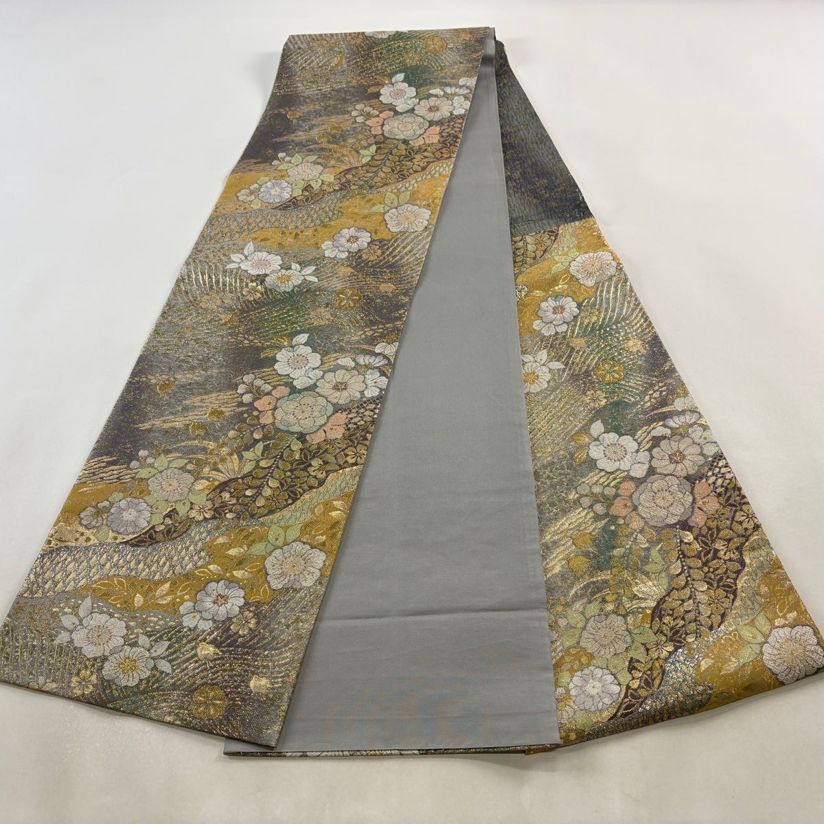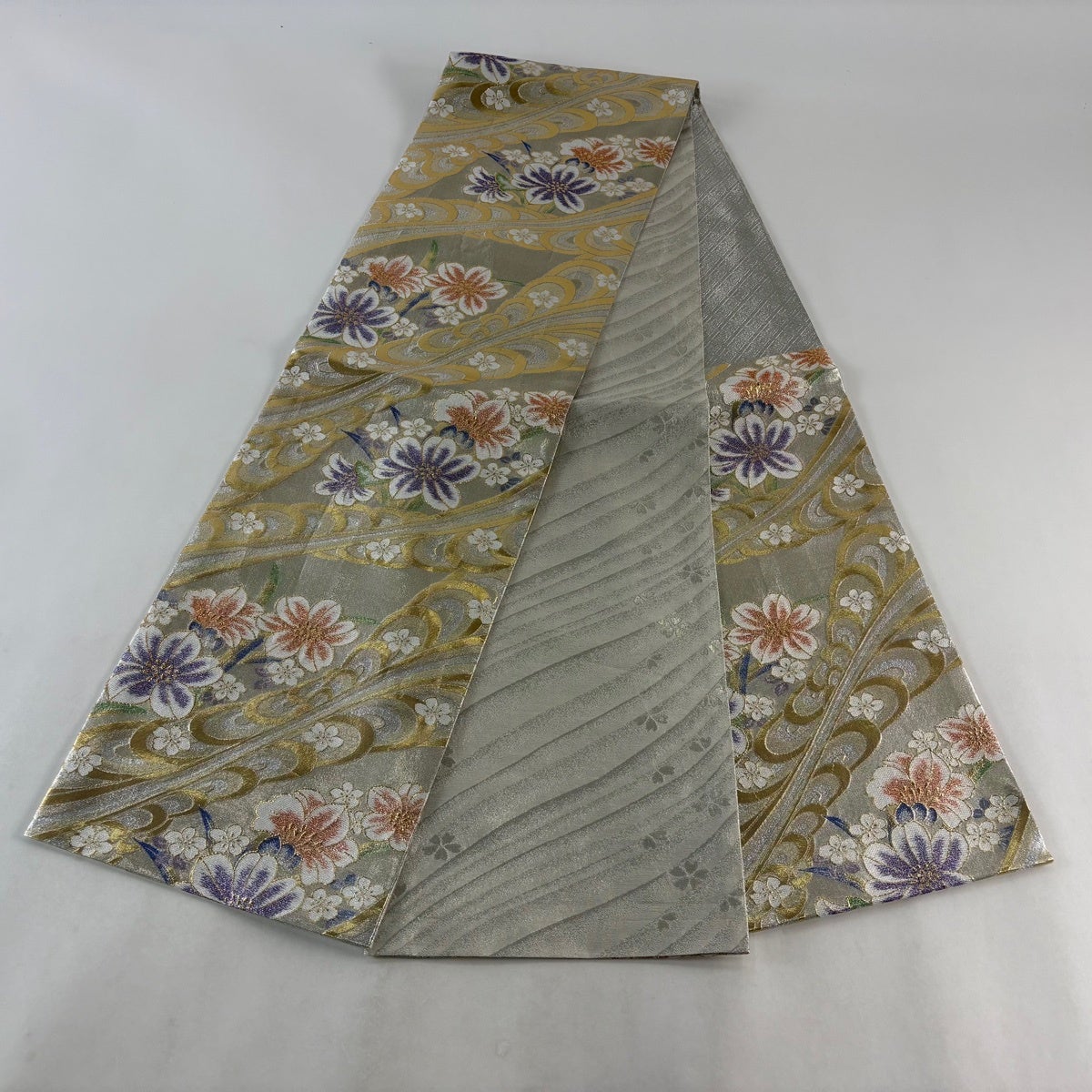 50%OFF 名古屋帯 優品 草花 流水 金銀糸 銀色 正絹 K50