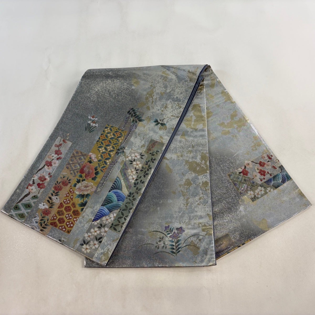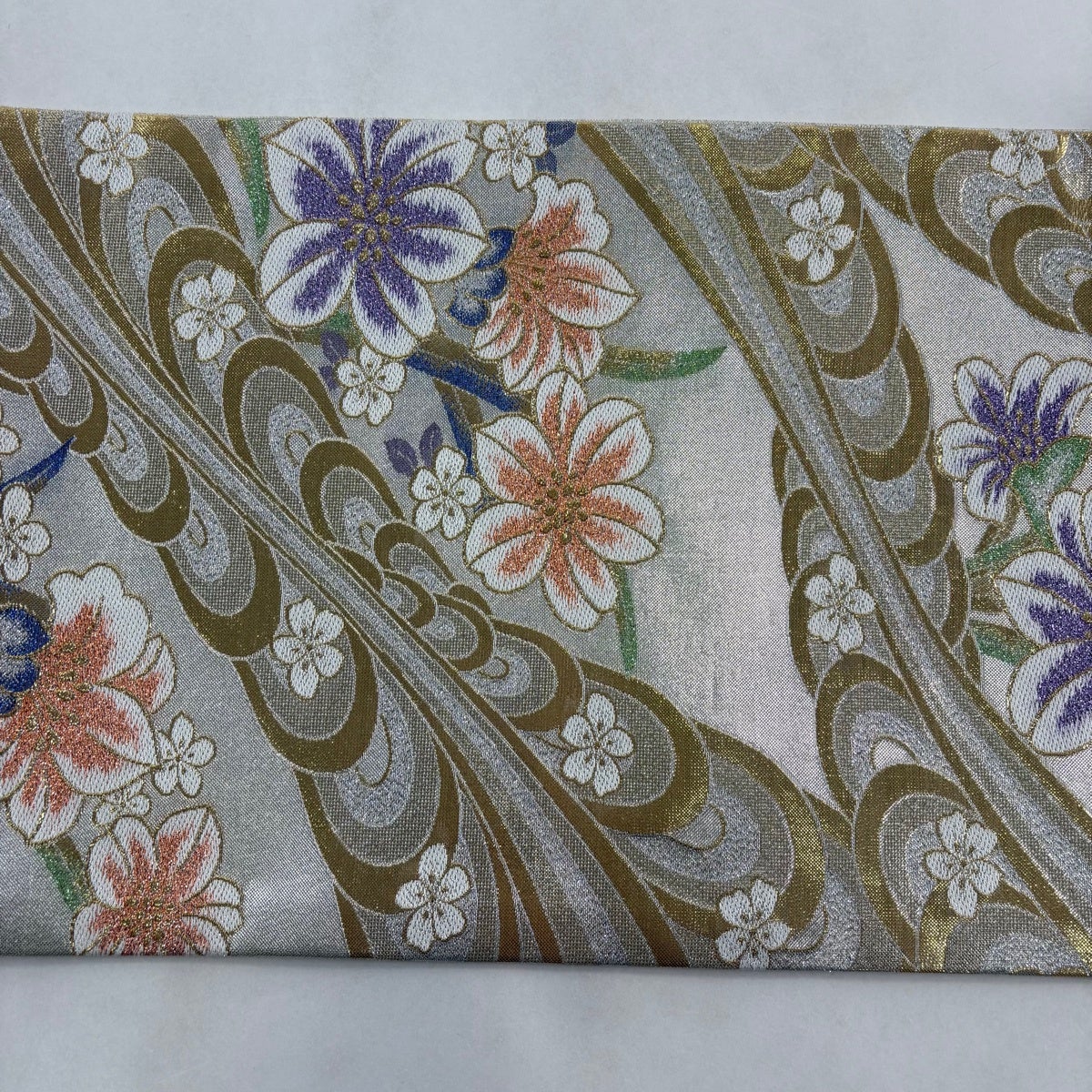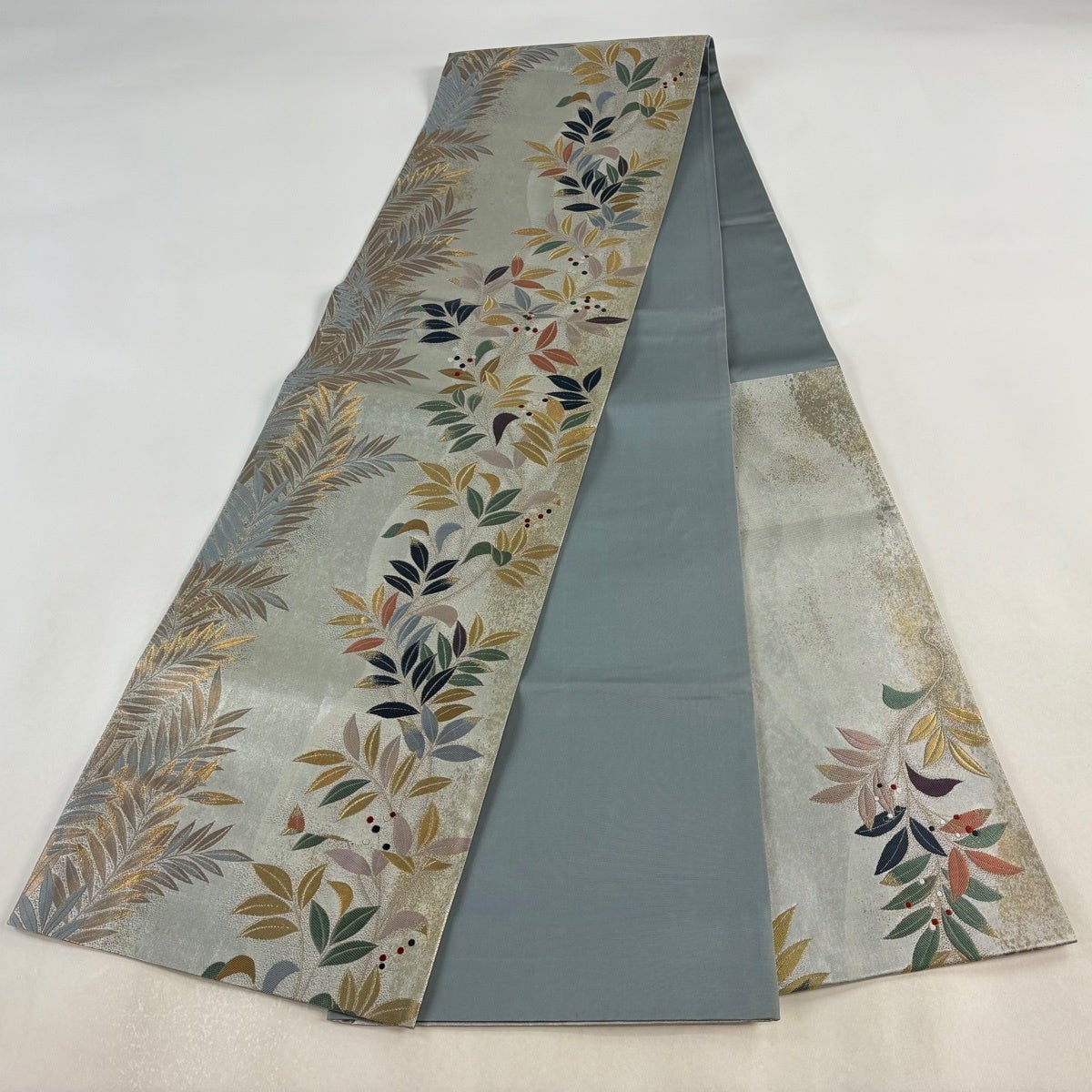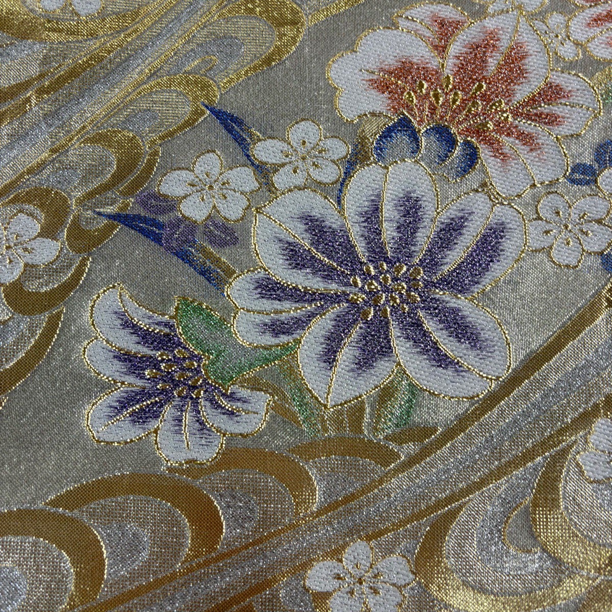 50%OFF 名古屋帯 優品 草花 流水 金銀糸 銀色 正絹 K50