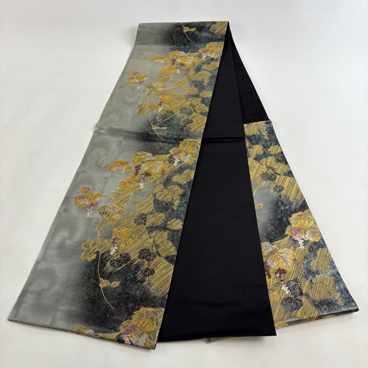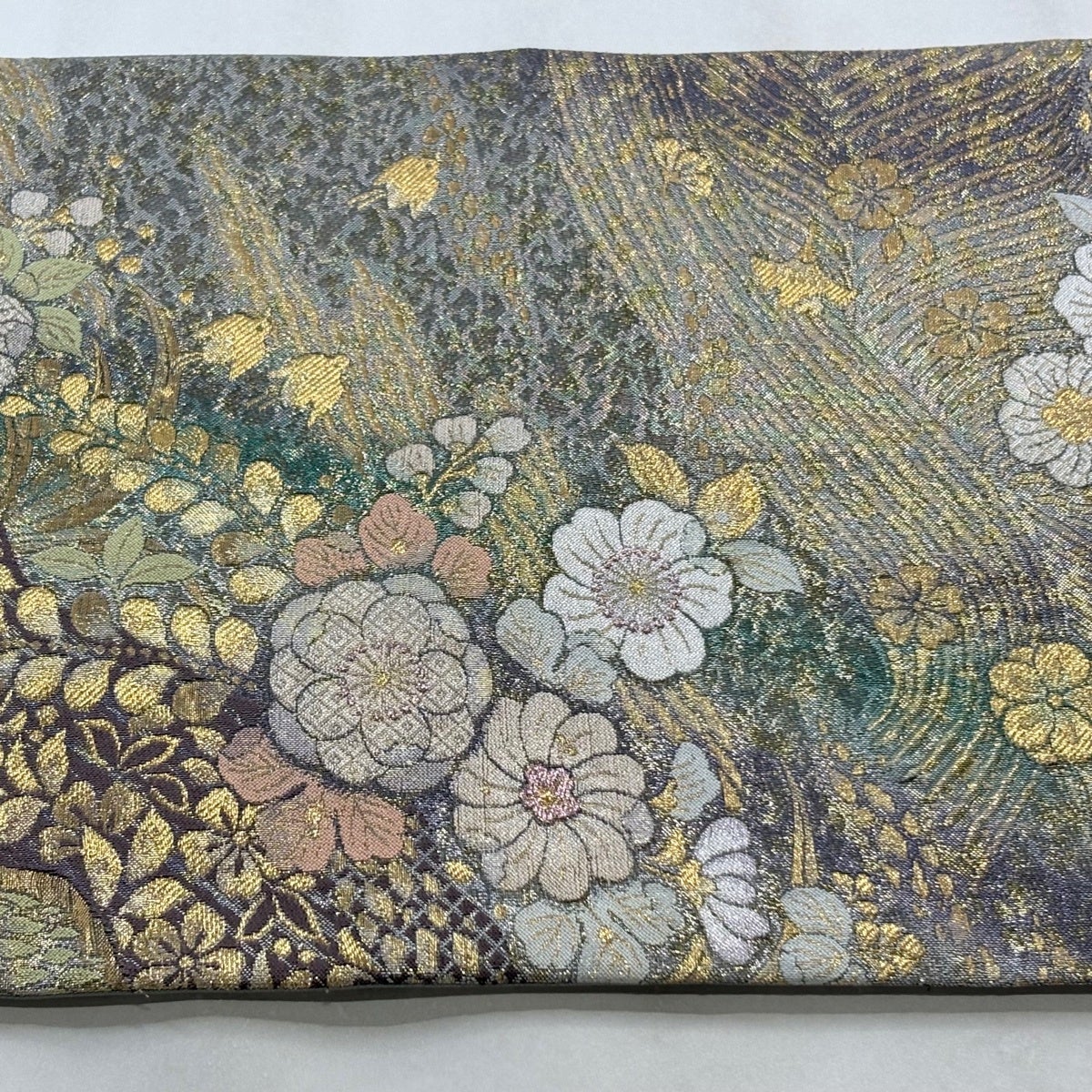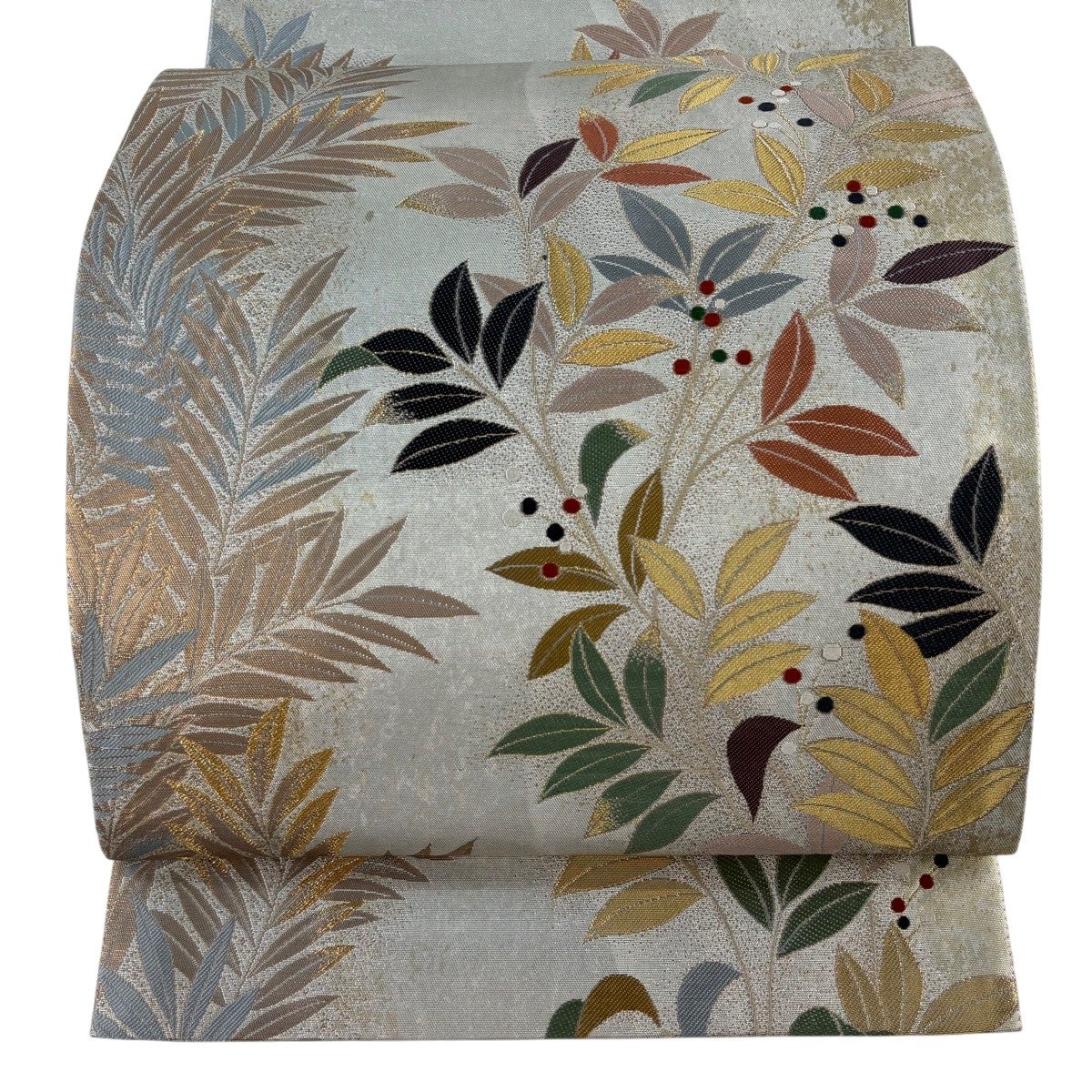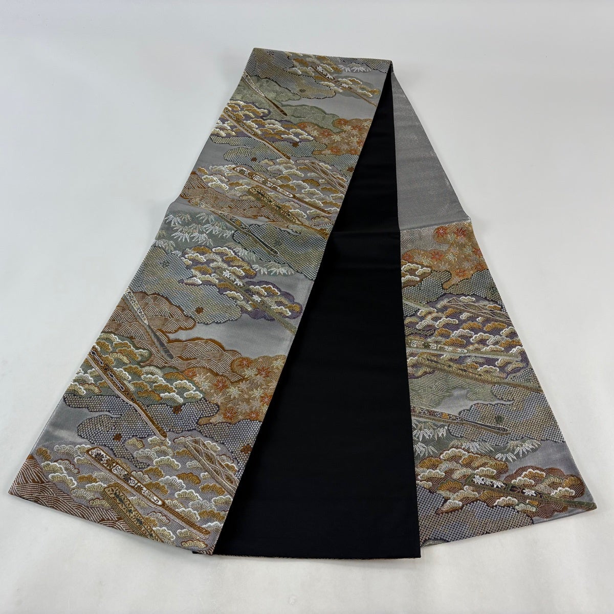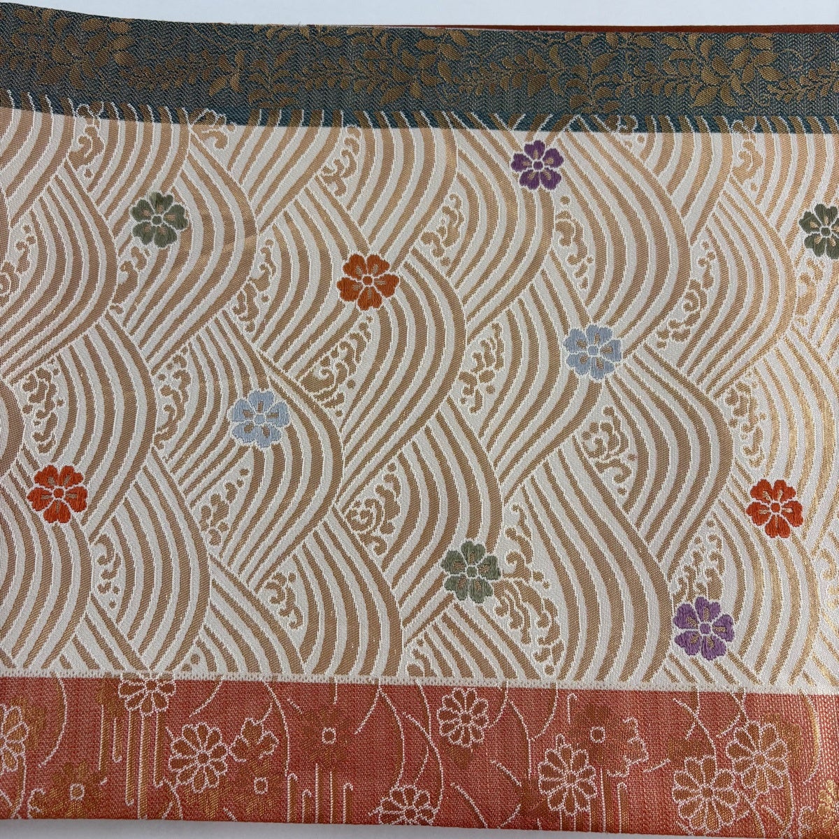 50%OFF 名古屋帯 優品 草花 流水 金銀糸 銀色 正絹 K50