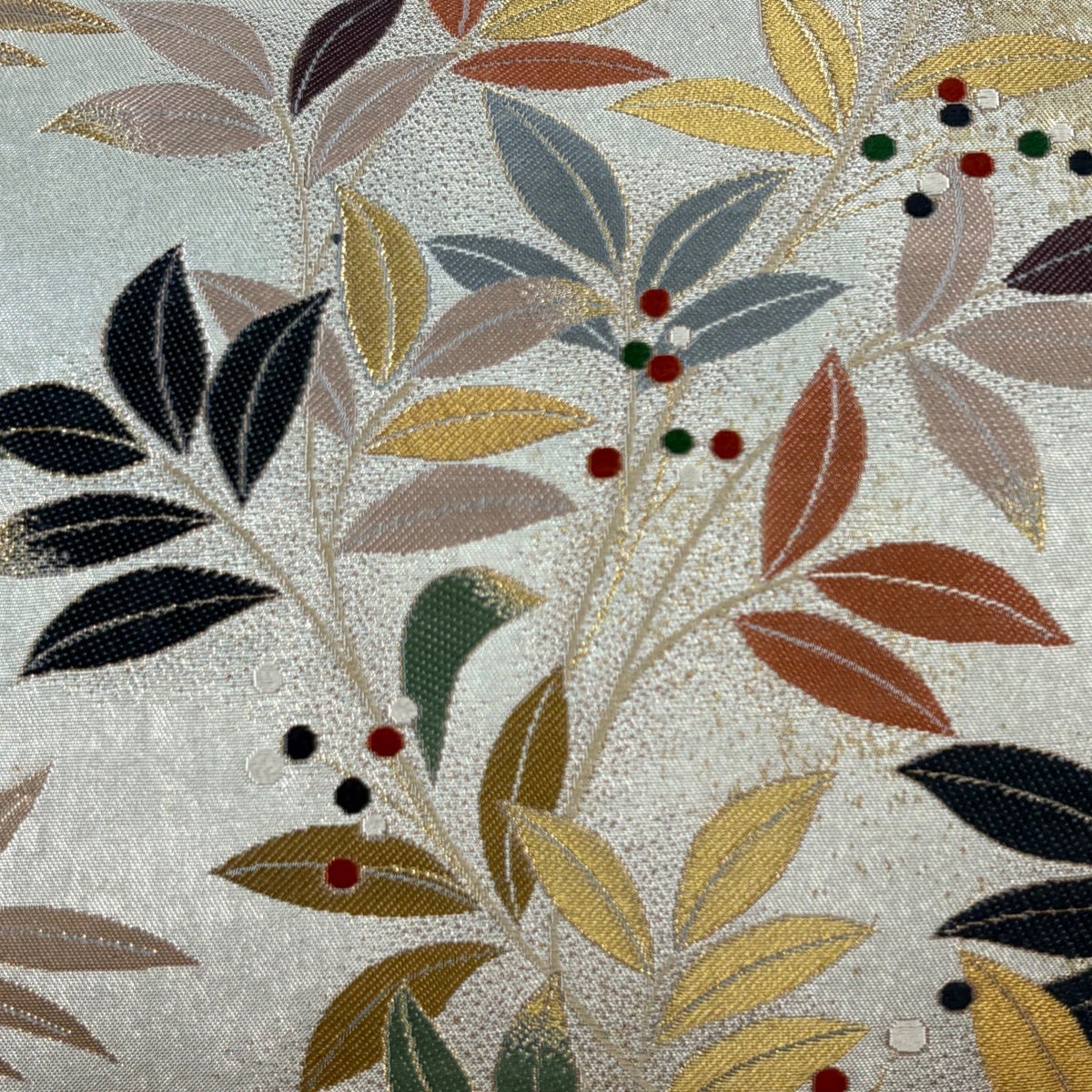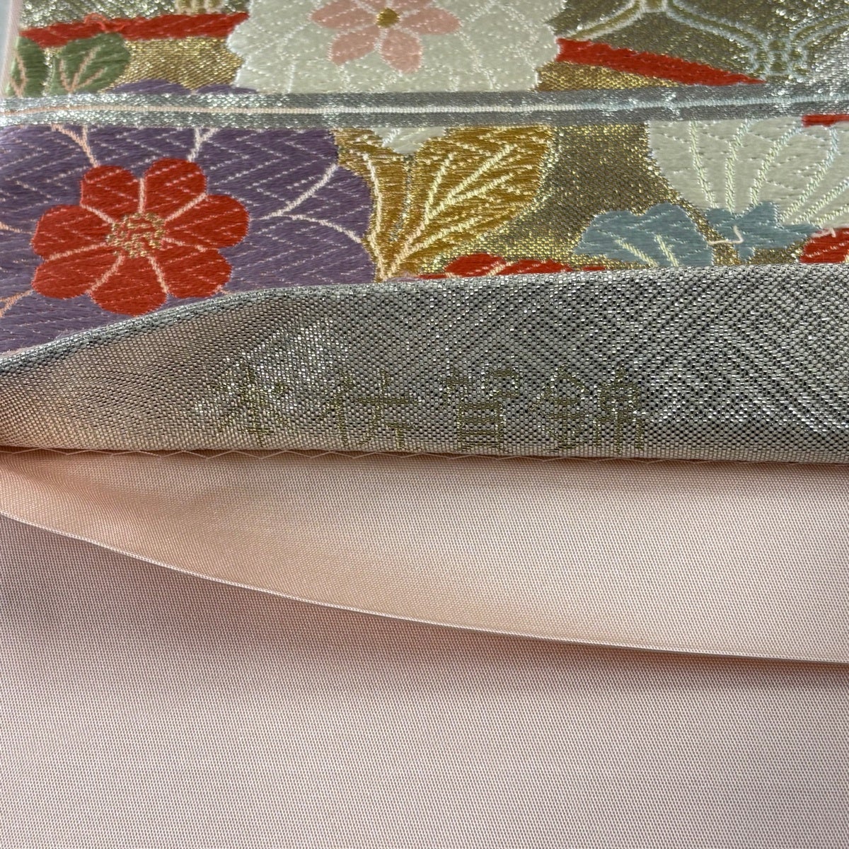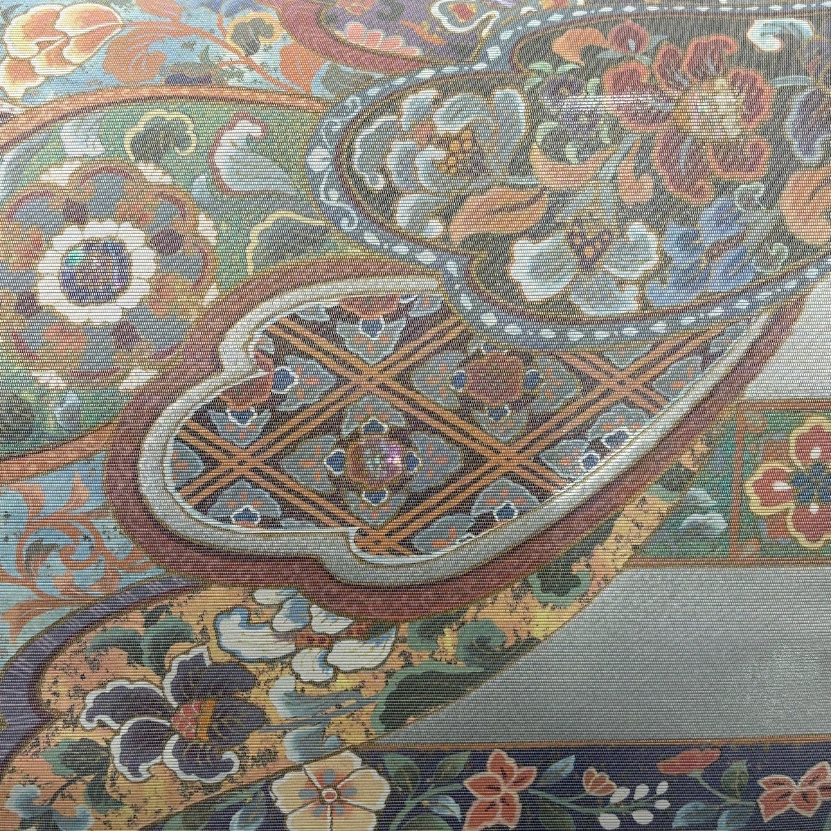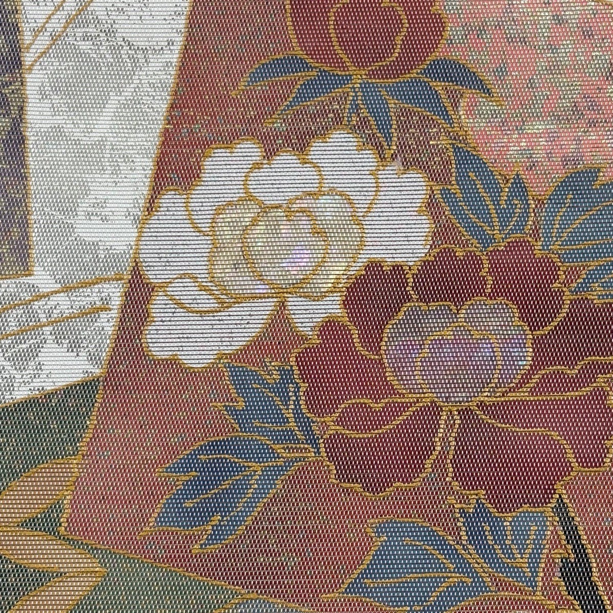 【美品】 袋帯 秀品 草花 華文 螺鈿箔 金彩 銀色 お太鼓柄 正絹