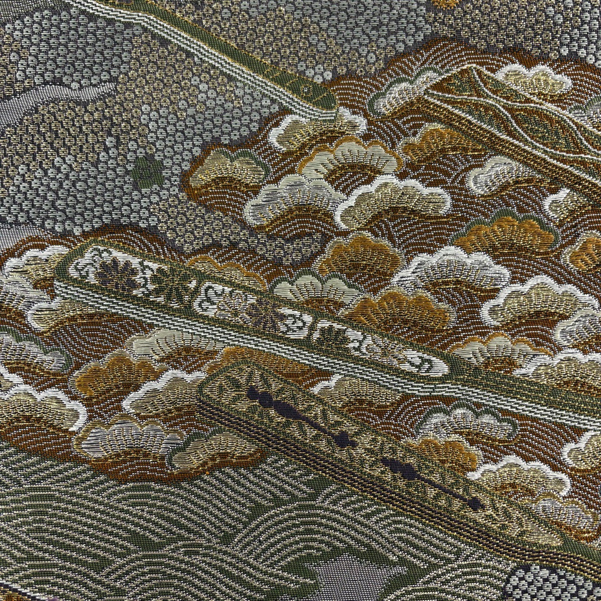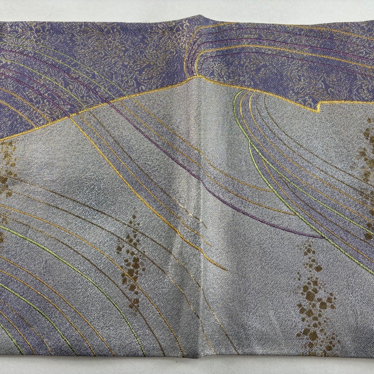 50%OFF 名古屋帯 秀品 流水 箔 金糸 銀色 正絹 K50