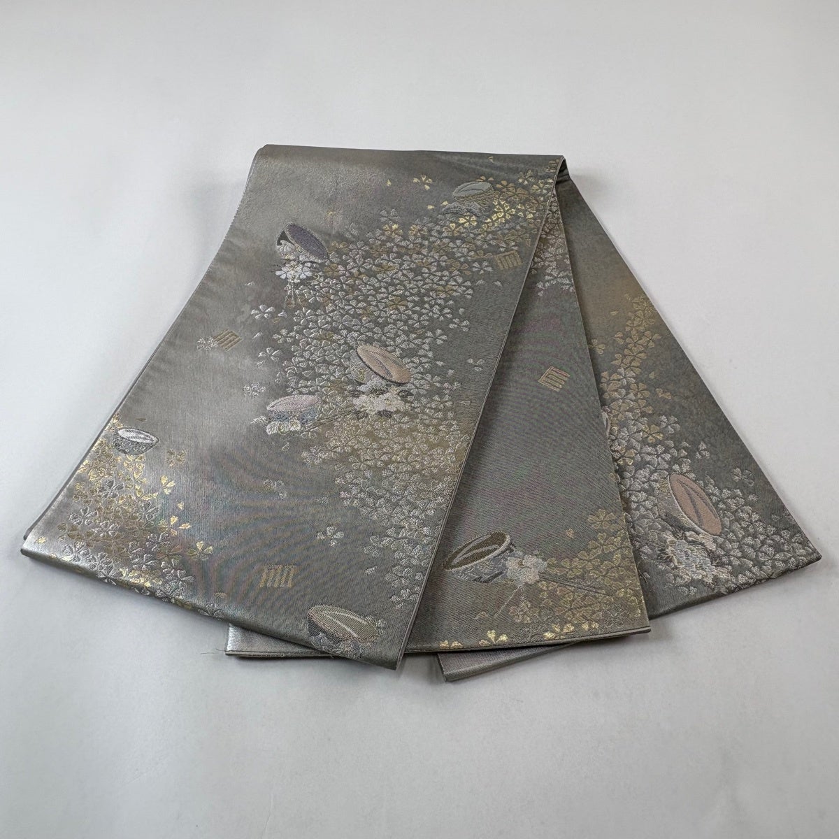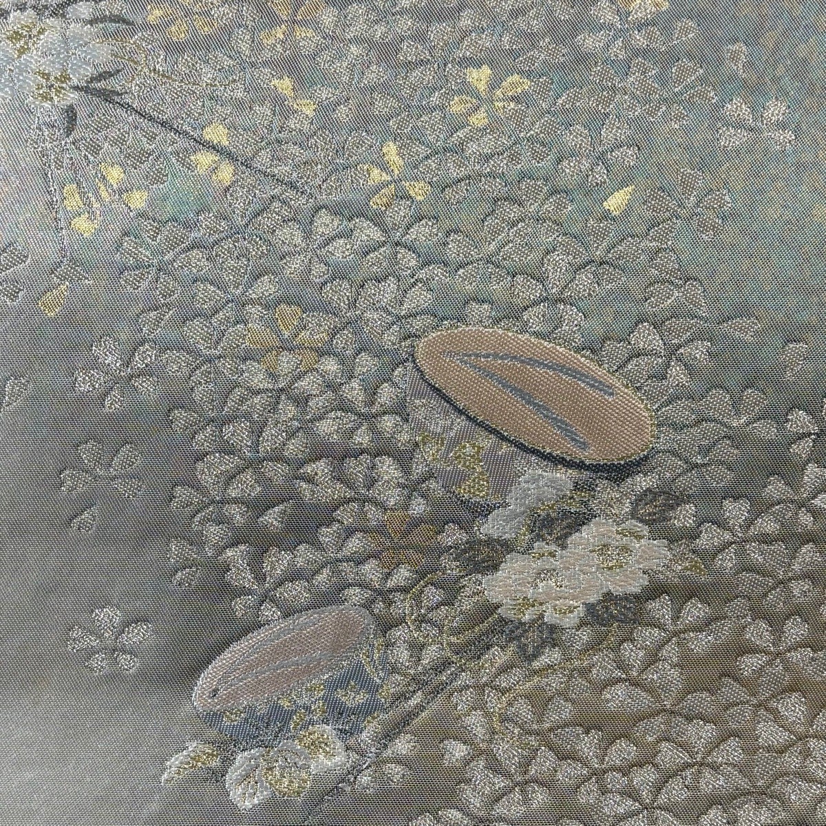 50%OFF 袋帯 秀品 桜 金銀糸 箔 銀色 六通 正絹 K50