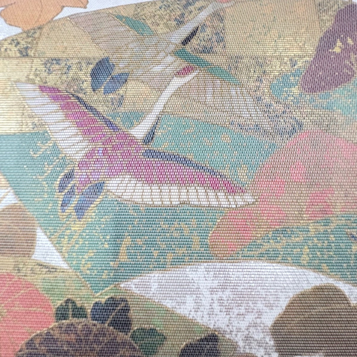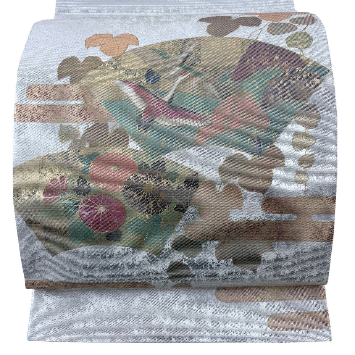 50%OFF 袋帯 秀品 鳥 梅 金糸 箔 銀色 六通 正絹 K50