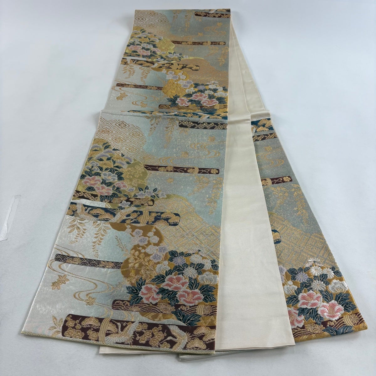 50%OFF 袋帯 秀品 桜 梅 金糸 箔 銀色 六通 正絹 K50