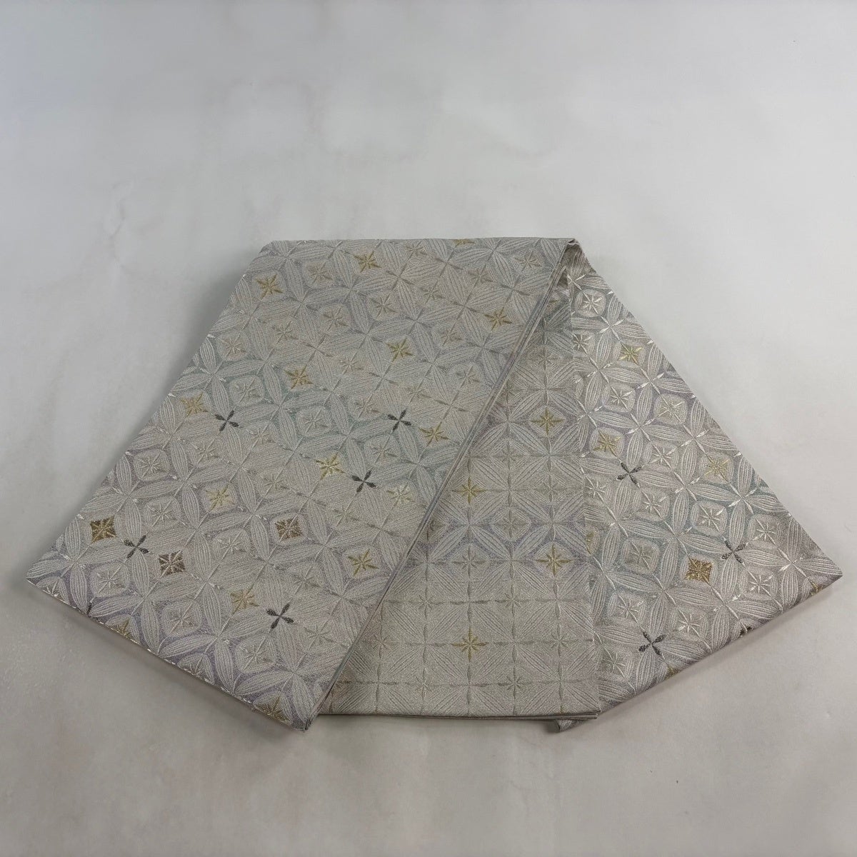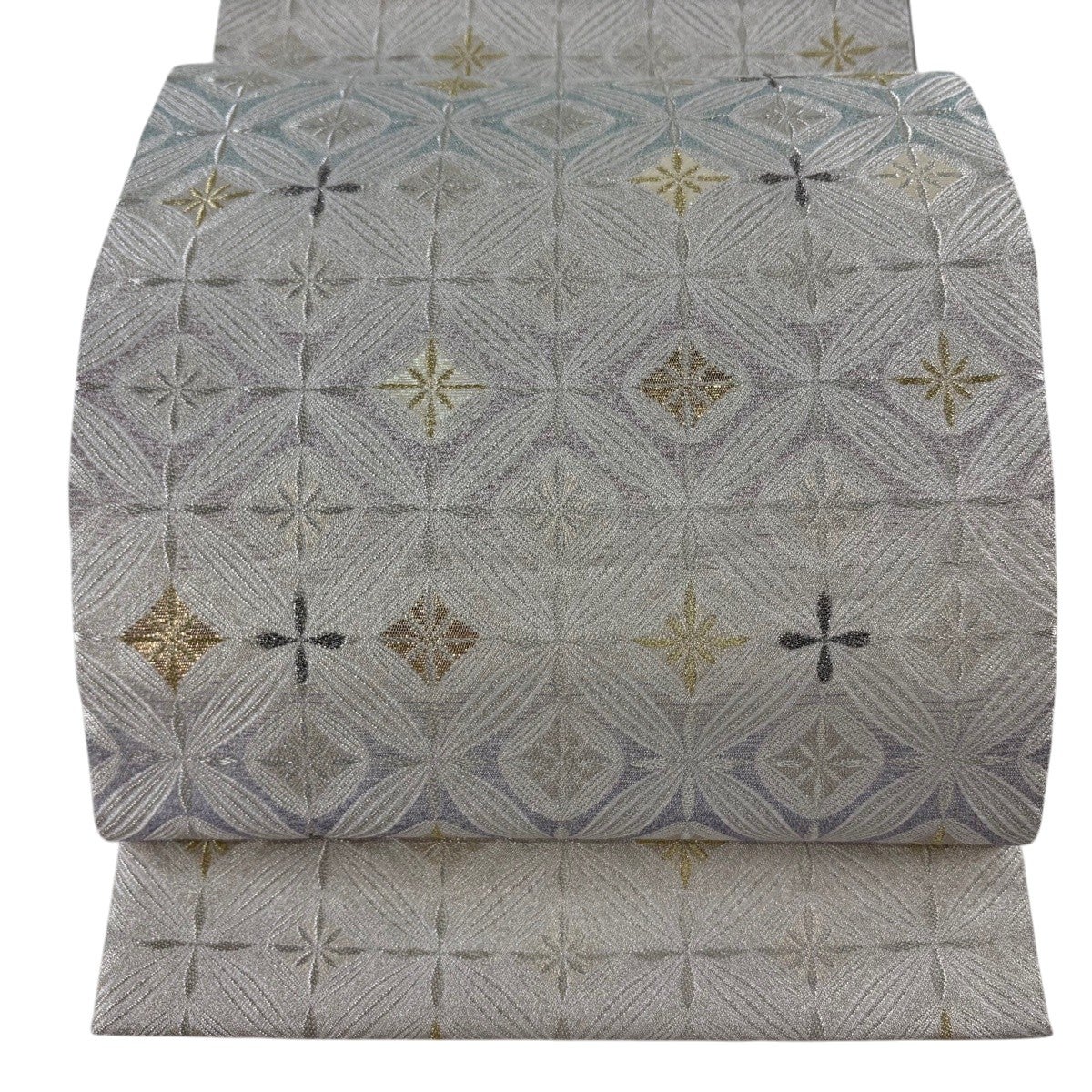 30%OFF 袋帯 秀品 華文 雪輪 金銀糸 箔 銀色 六通 正絹 K30