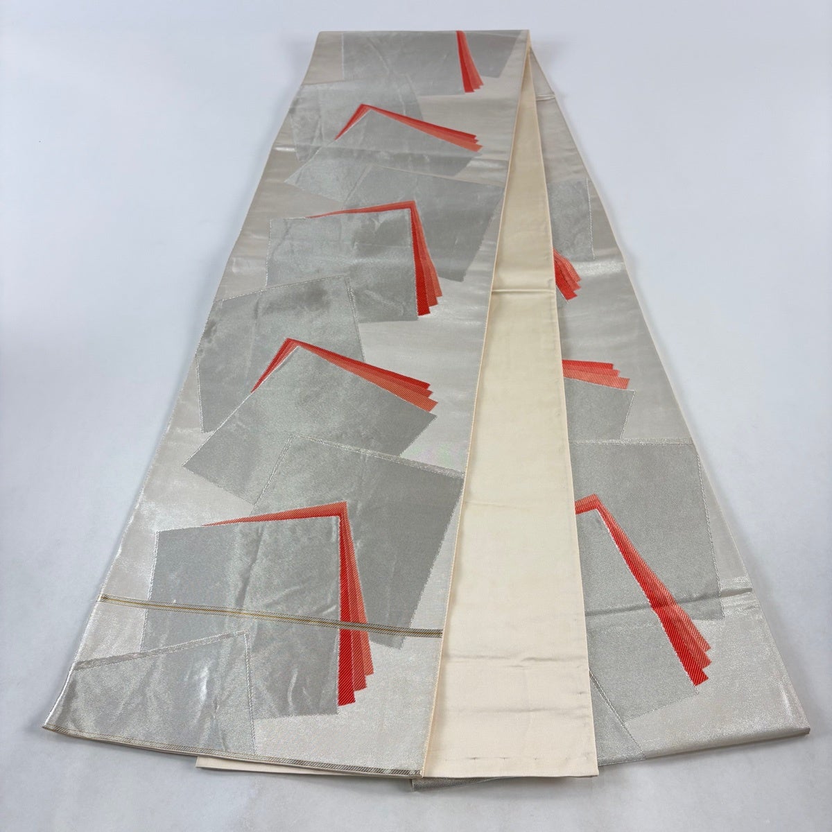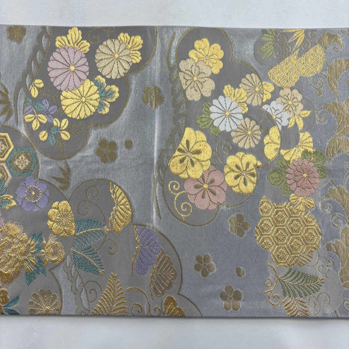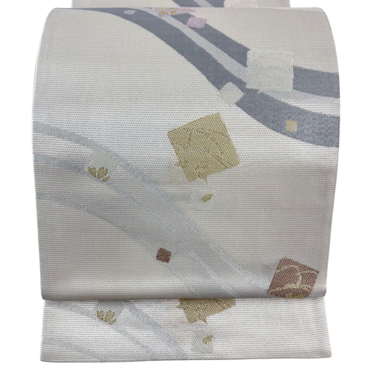 30%OFF 袋帯 秀品 桜 幾何学 金銀糸 箔 銀色 六通 正絹 K30