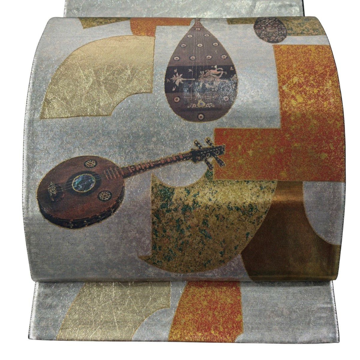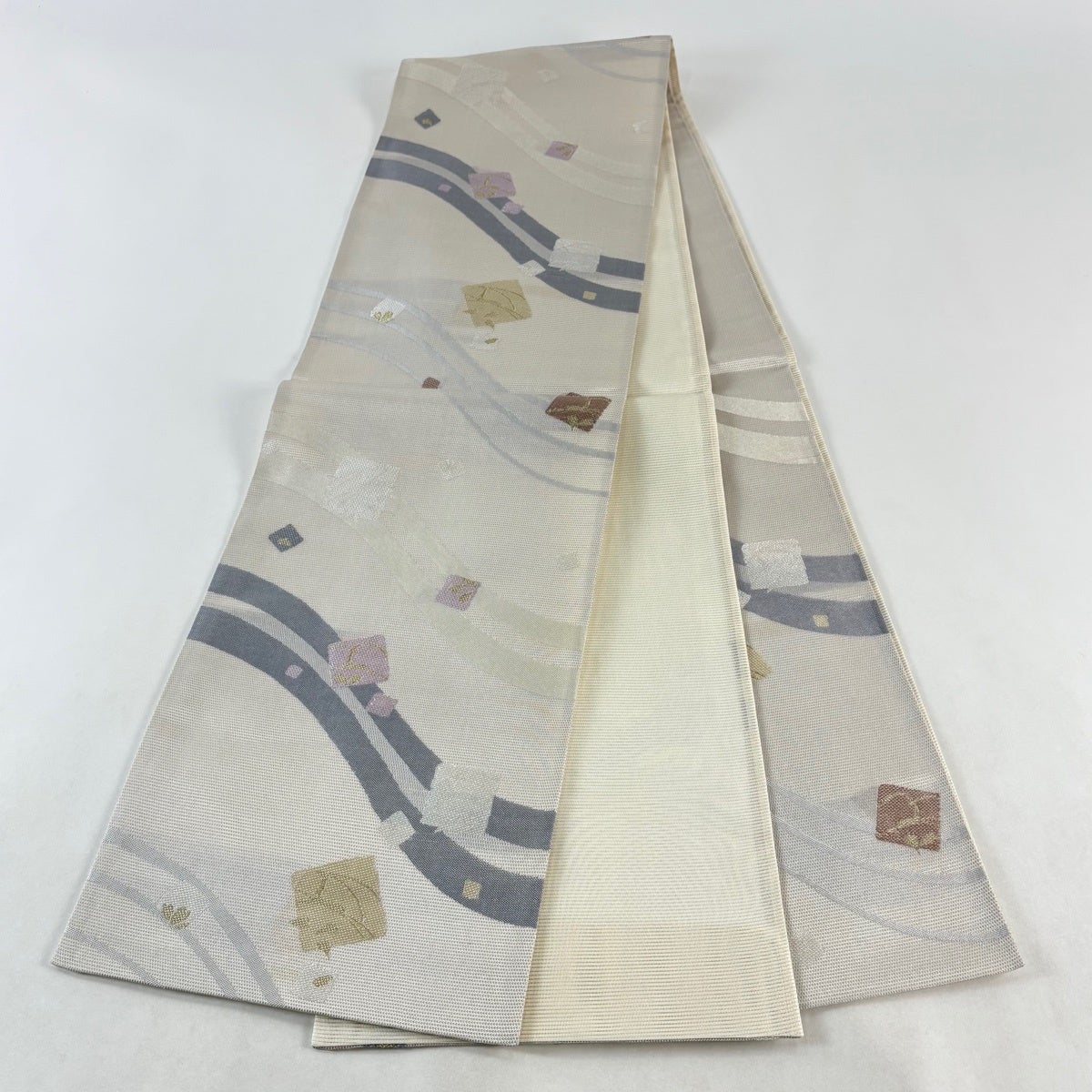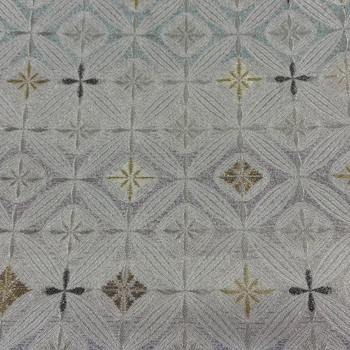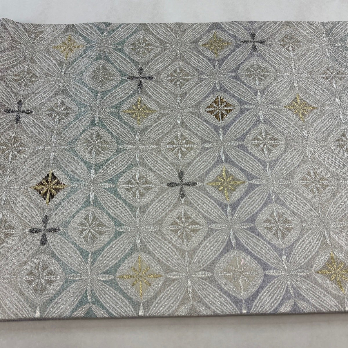 30%OFF 袋帯 秀品 桜 幾何学 金銀糸 箔 銀色 六通 正絹 K30