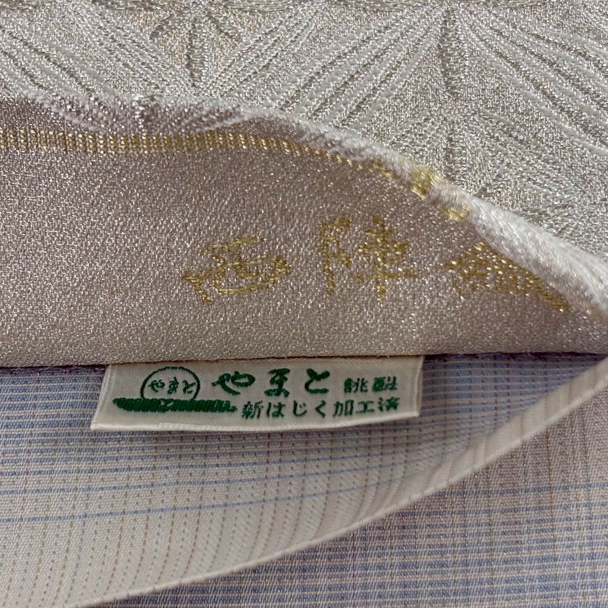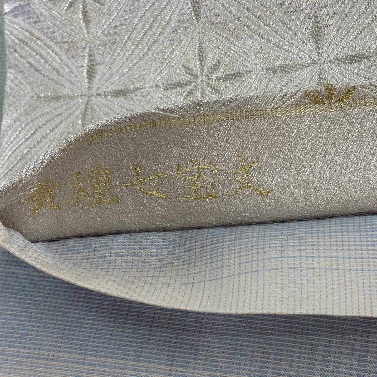 【在庫一掃】 【美品】 名古屋帯 優品 扇 青海波 金糸 刺繍 銀色 正絹