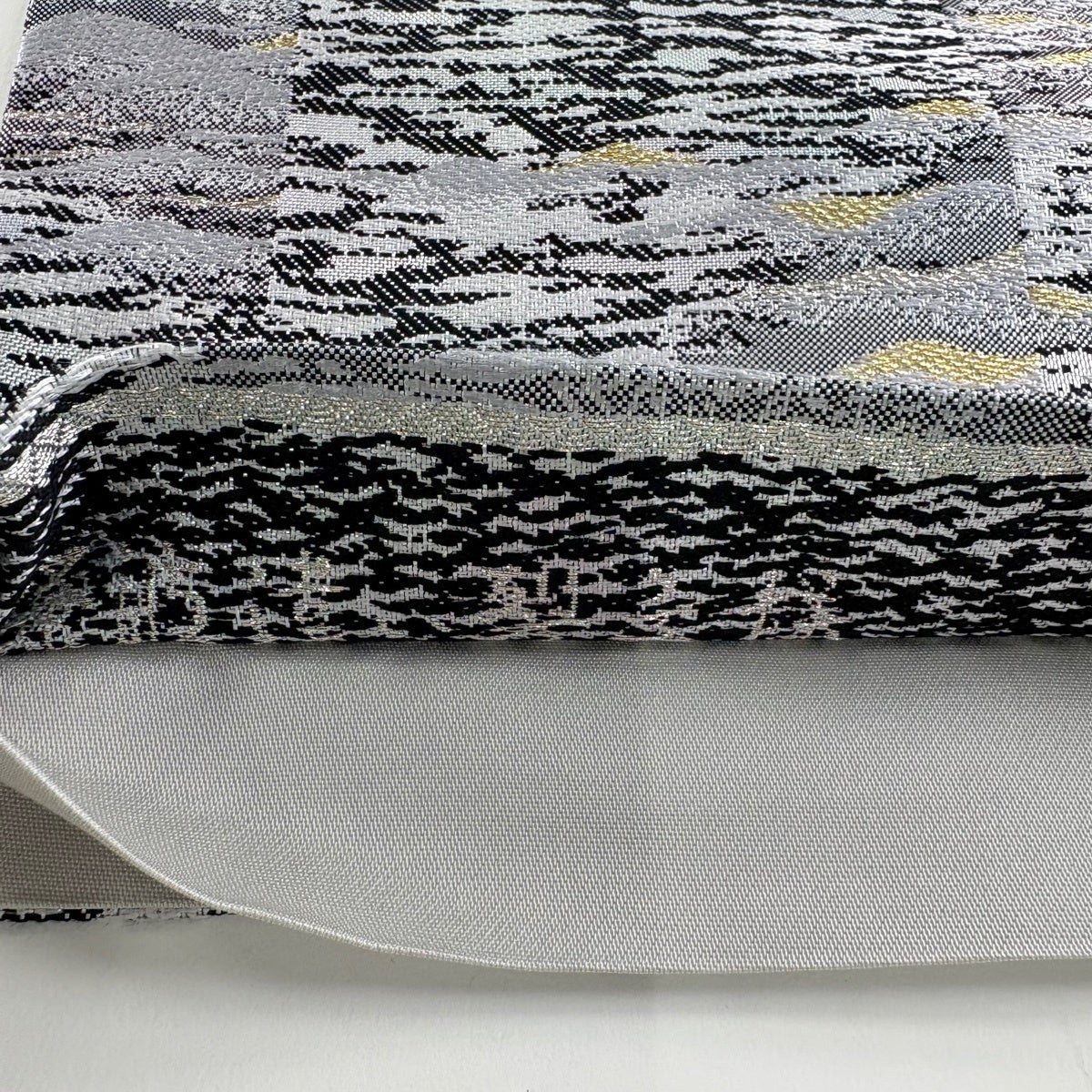 袋帯 秀品 証紙あり 波 幾何学 箔 金糸 銀色 六通 正絹