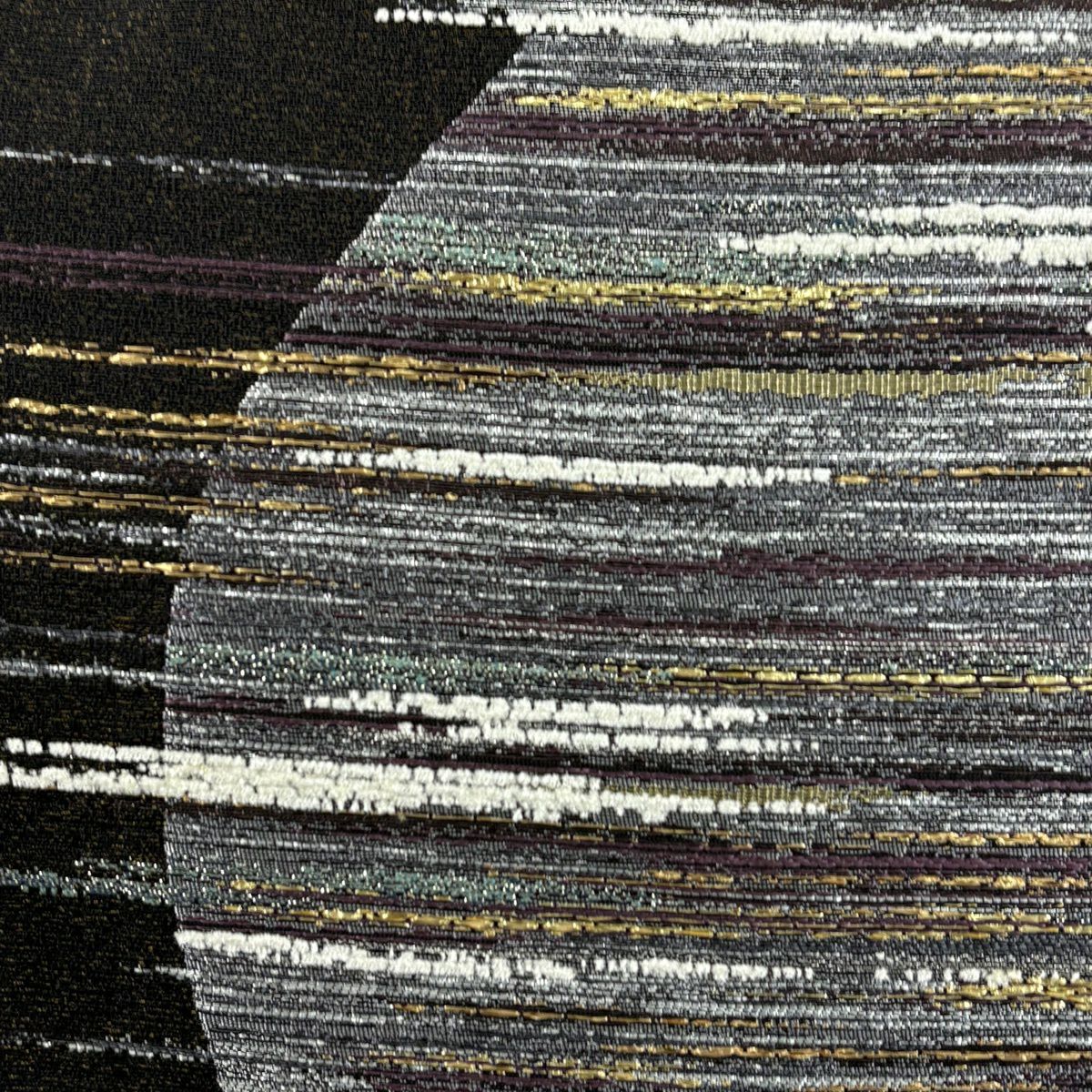【美品】 袋帯 秀品 縞 幾何学模様 箔 銀色 六通 正絹