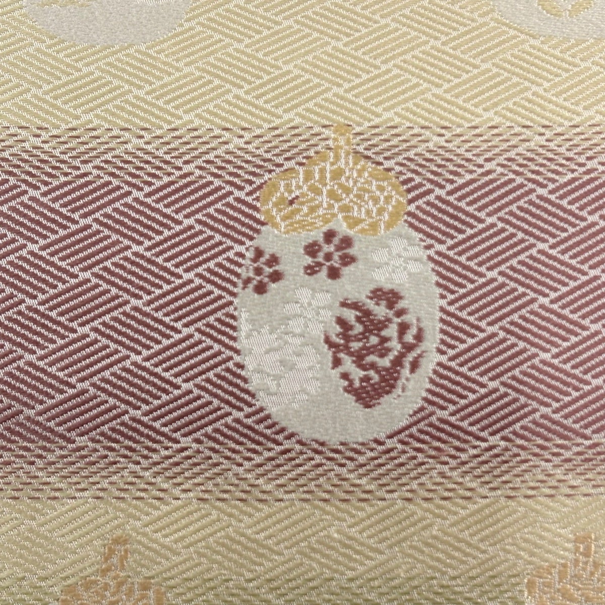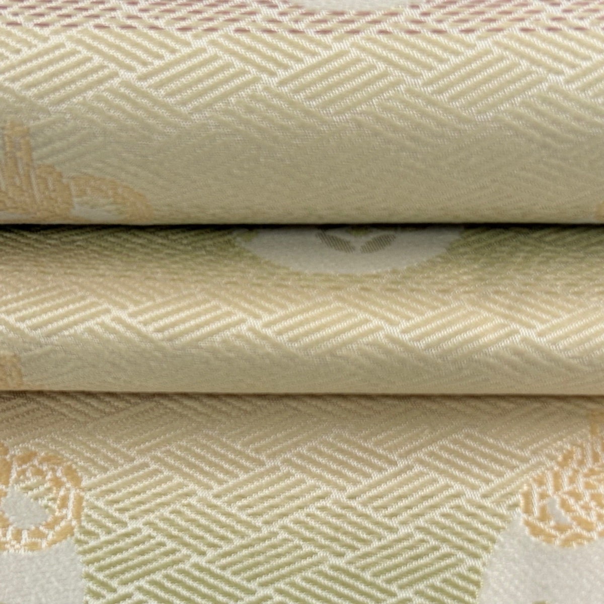 30%OFF 開き名古屋帯 秀品 花菱 桐唐草 金糸 箔 薄黄 正絹 K30