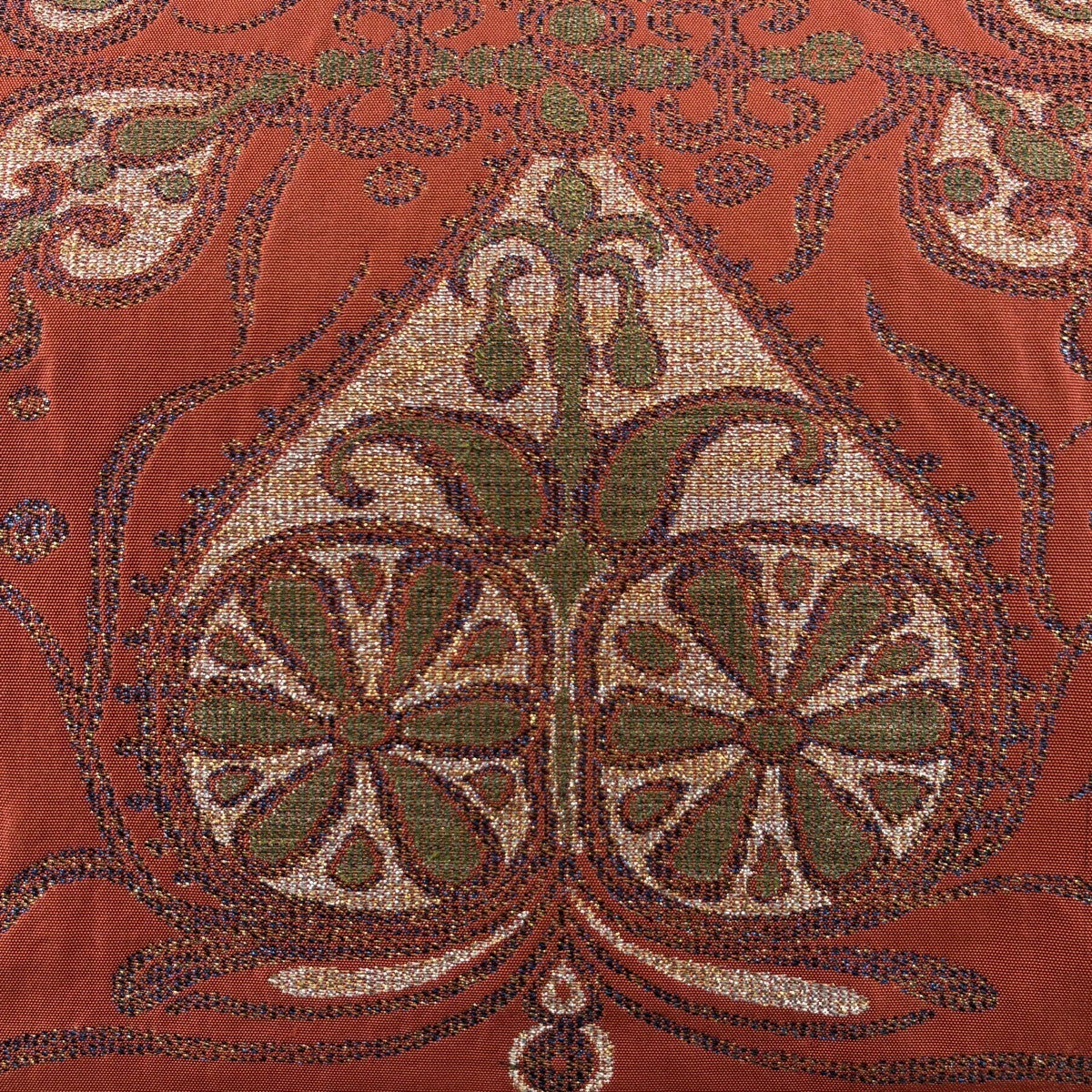 70%OFF 開き名古屋帯 秀品 松笠 松葉 箔 金糸 黄土色 正絹 K70