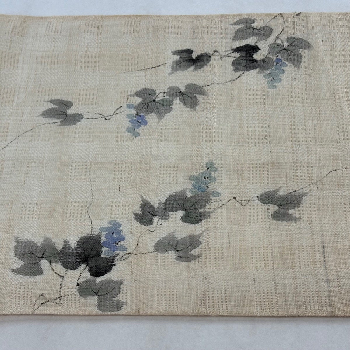 50%OFF 開き名古屋帯 名品 落款あり 夏帯 紬地 草花 ベージュ 正絹 K50