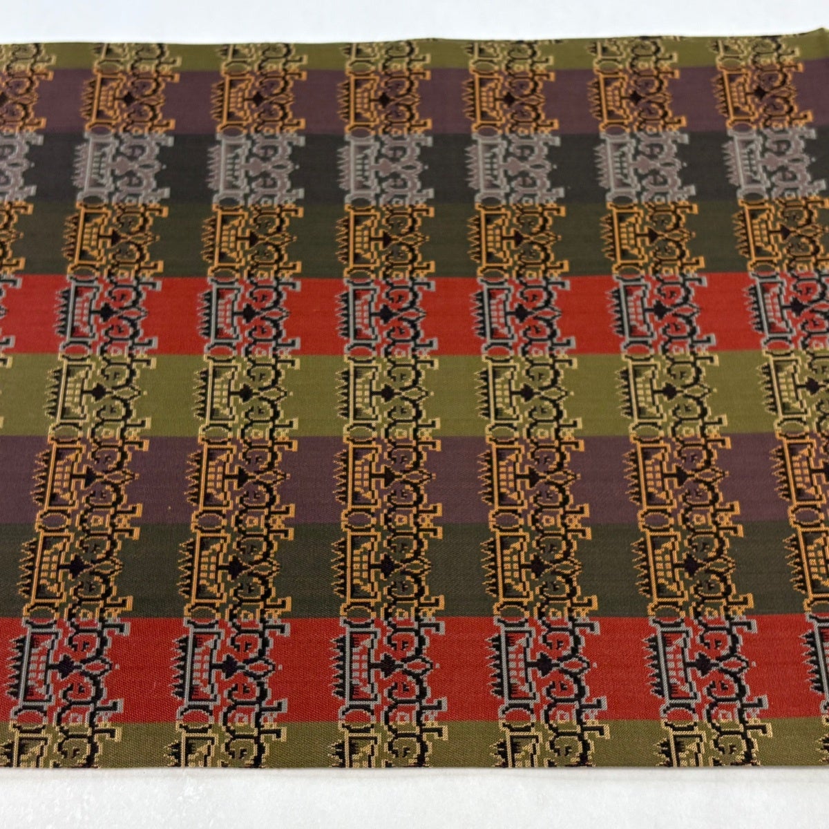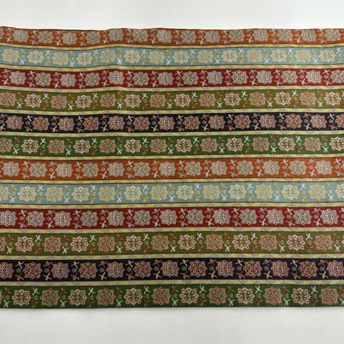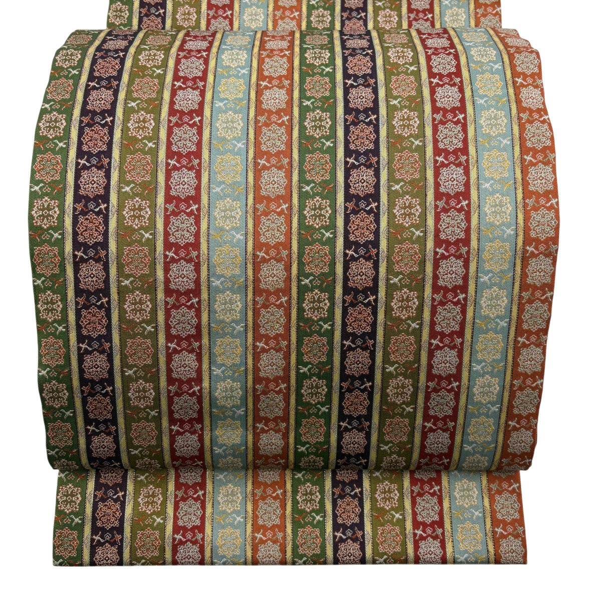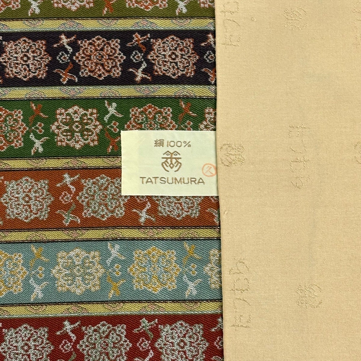 50%OFF 【美品】 開き名古屋帯 逸品 龍村美術織物 幾何学 縞 鶯色 正絹 K50
