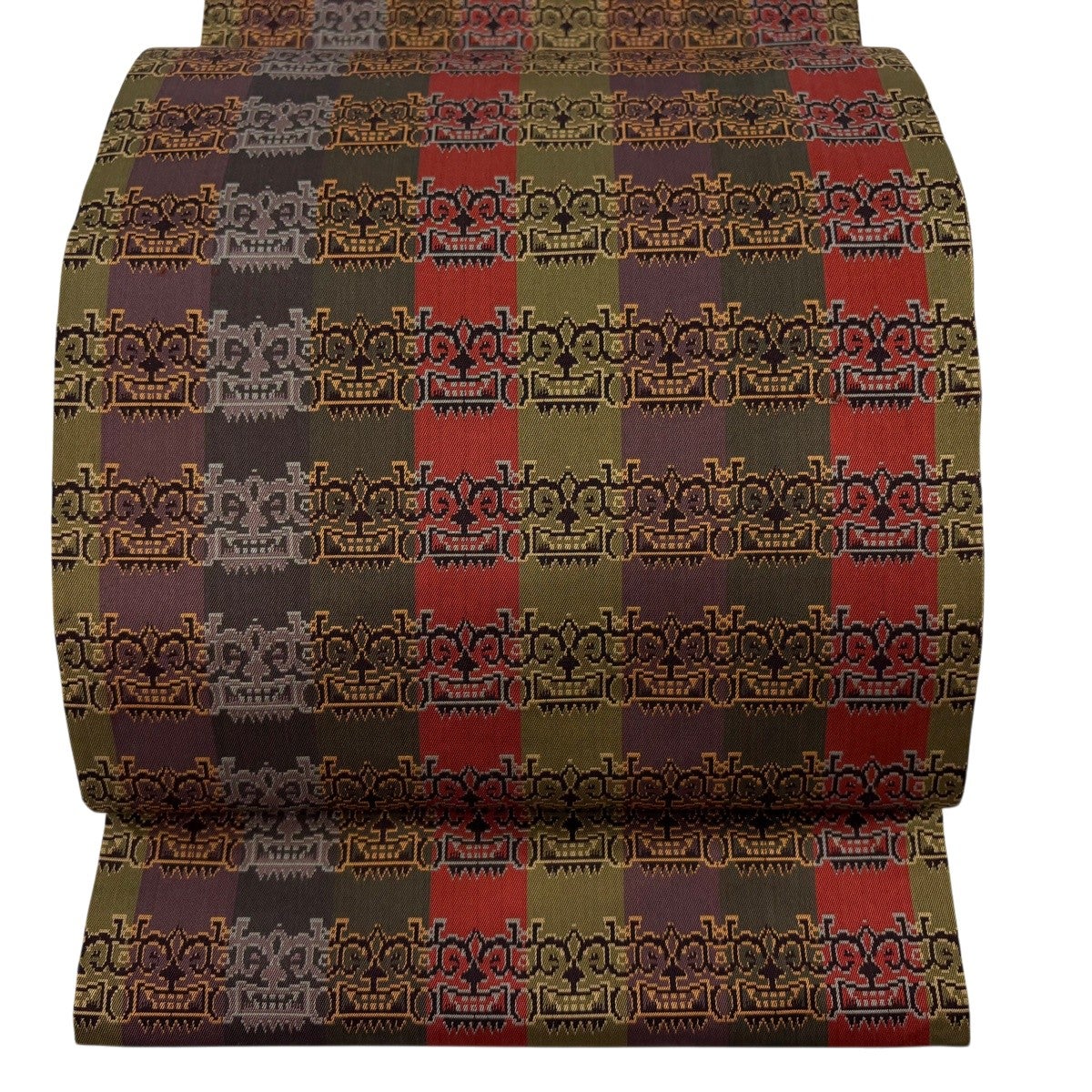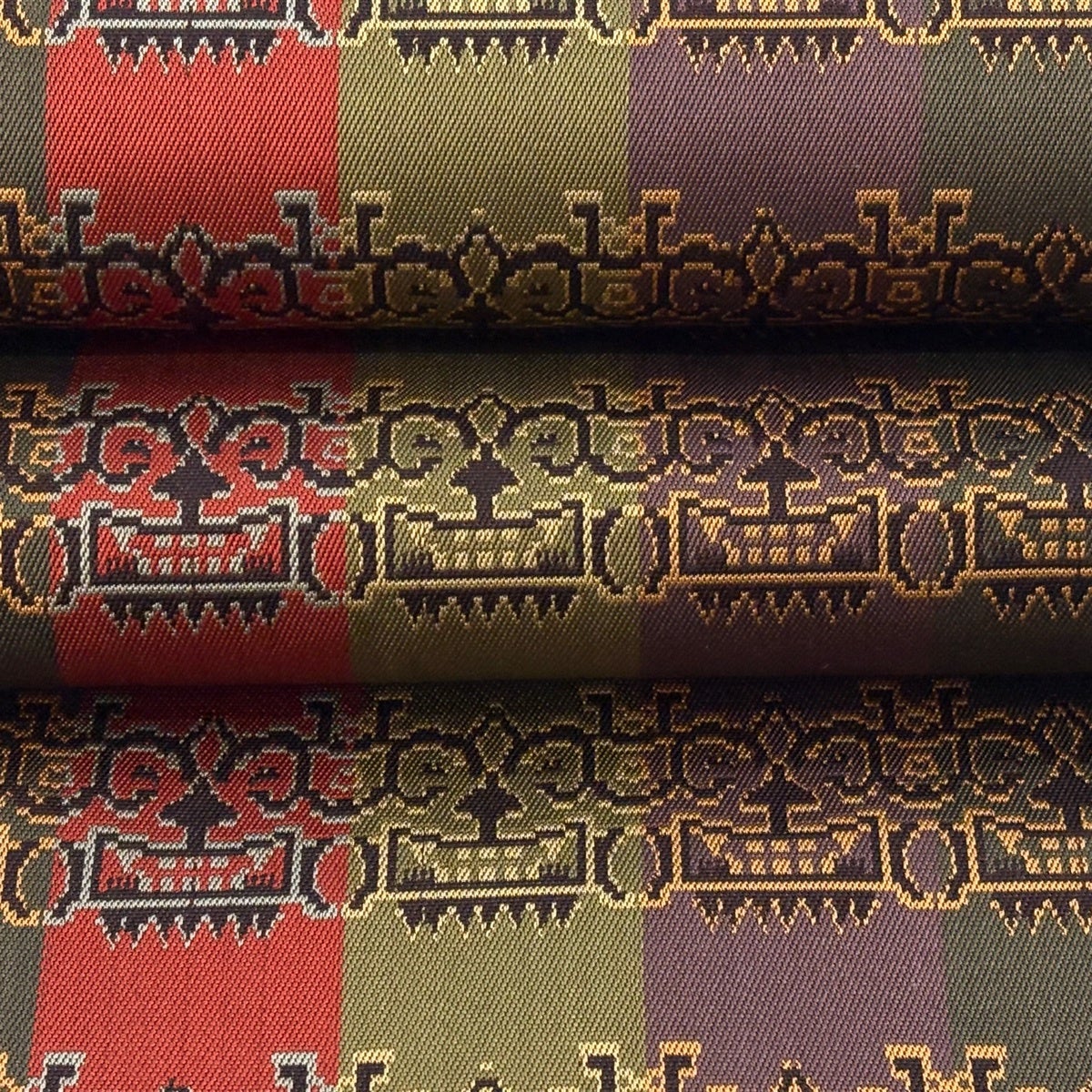 40%OFF 【美品】 開き名古屋帯 逸品 龍村美術織物 幾何学模様 茶紫 正絹 K30