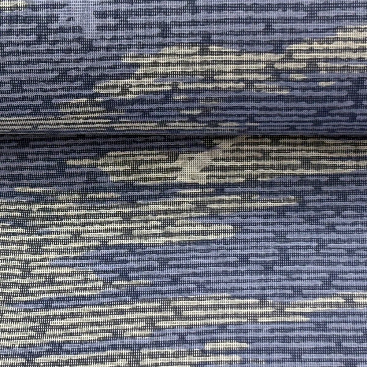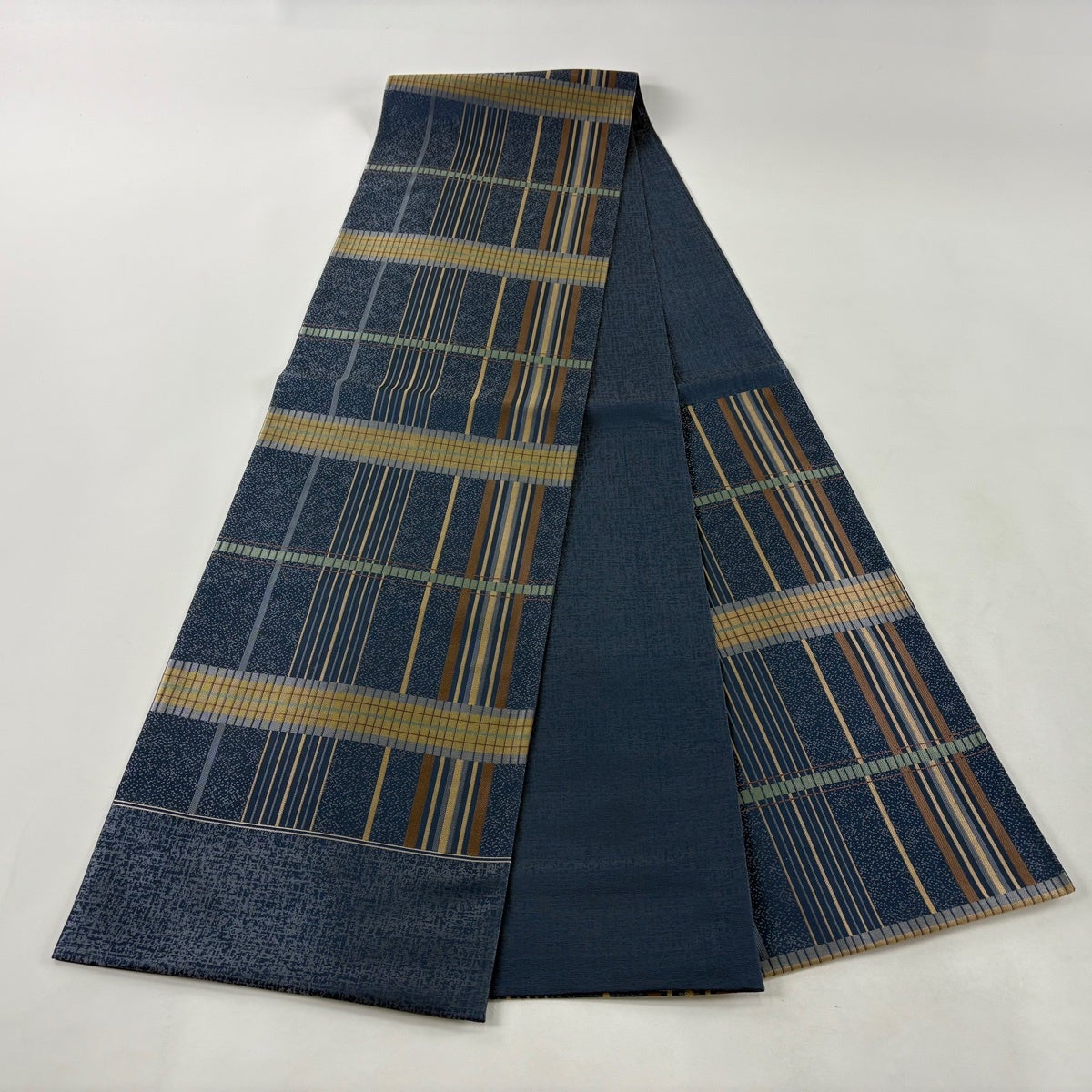 【美品】 袋帯 秀品 縞 幾何学 青灰色 六通 正絹
