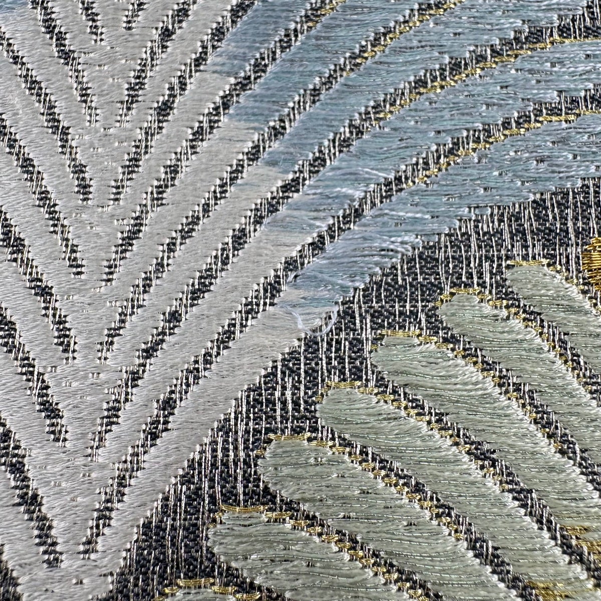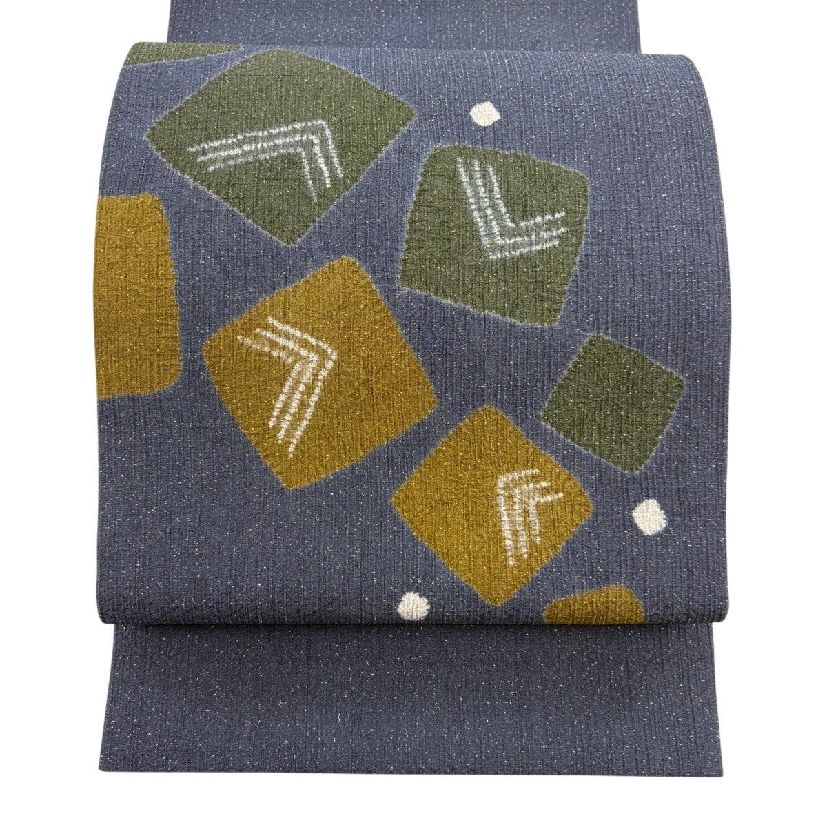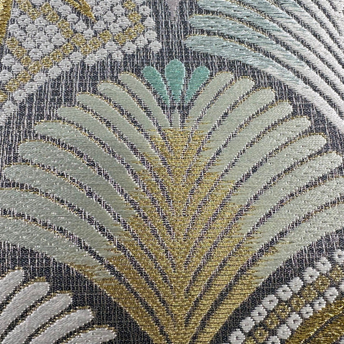 【美品】 袋帯 秀品 幾何学 箔 青灰色 六通 正絹