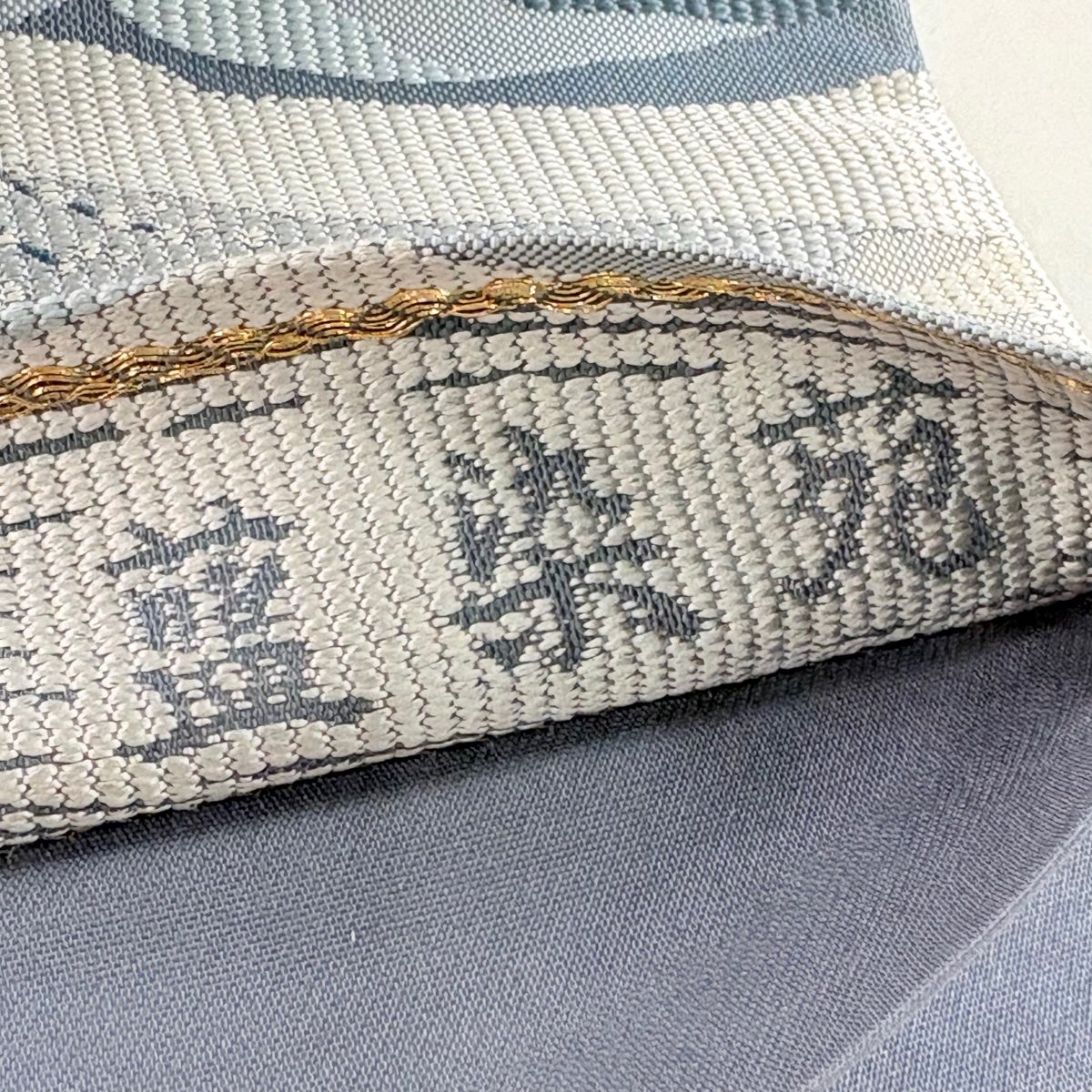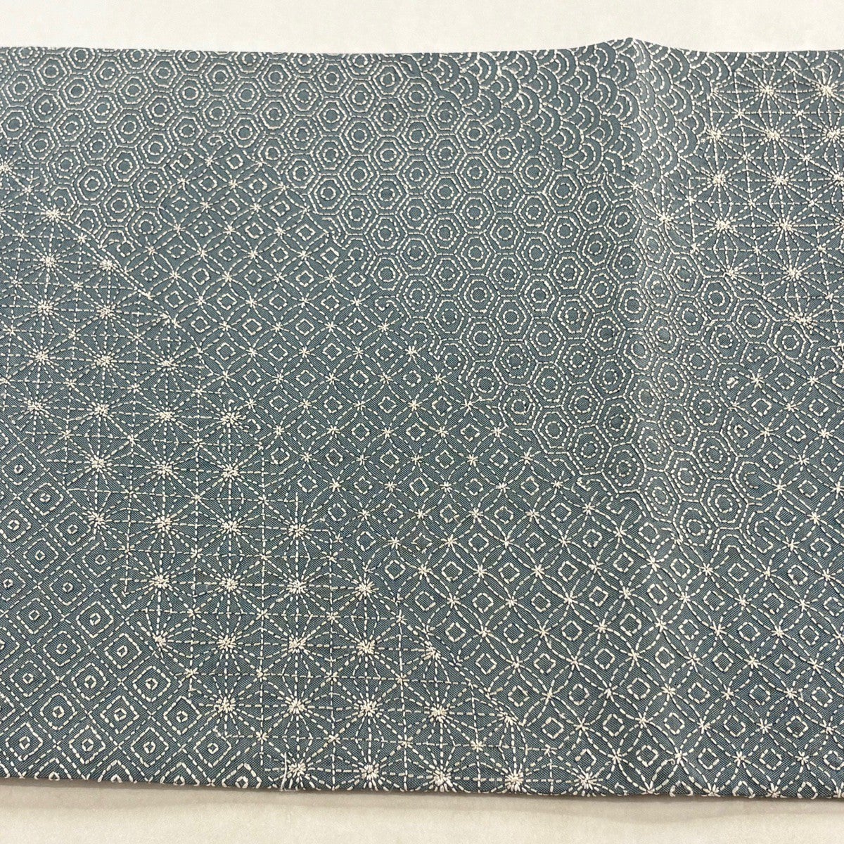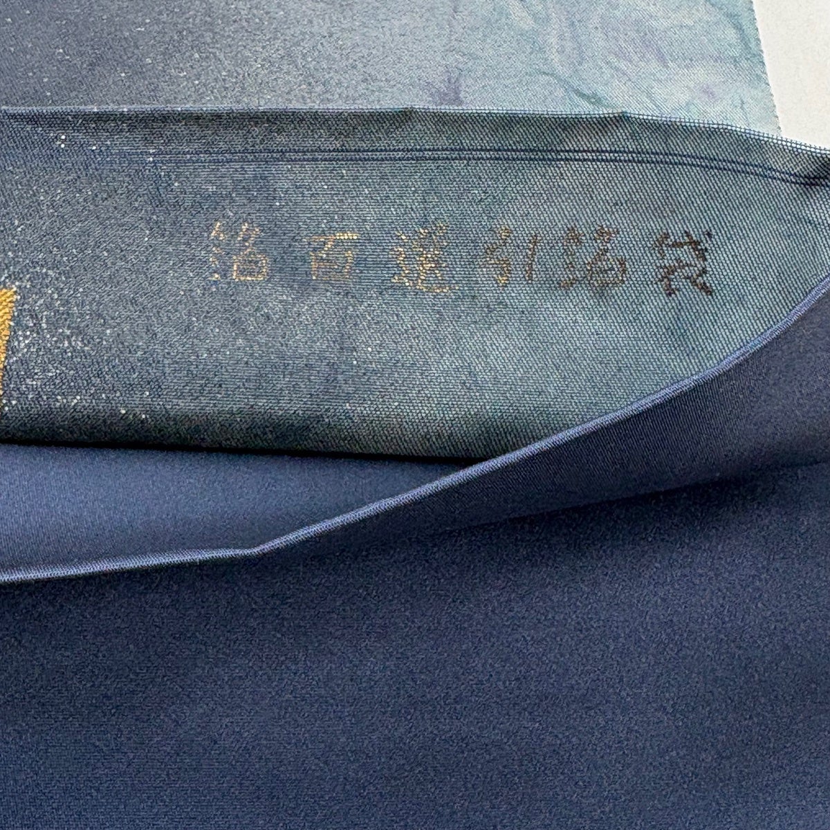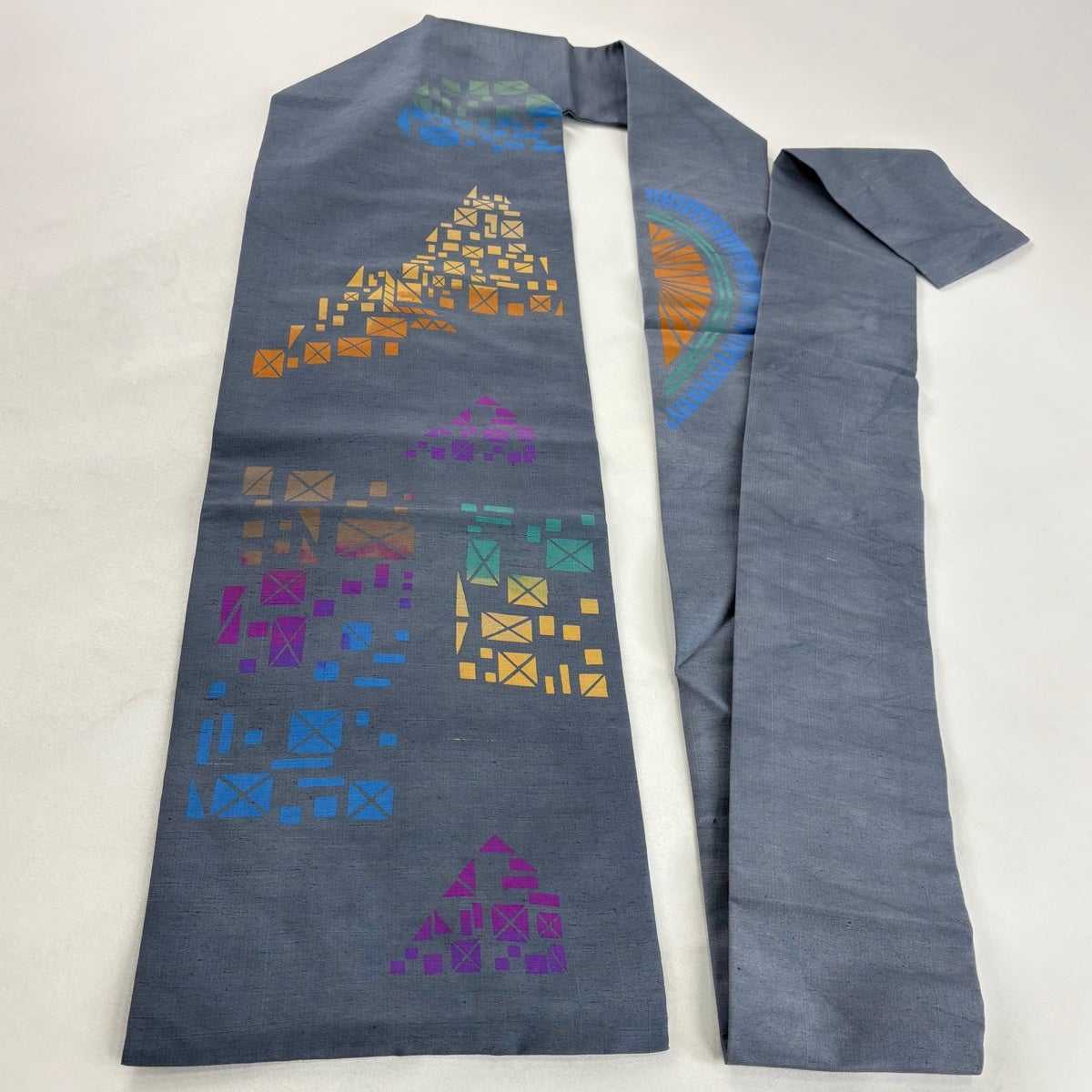 【美品】 袋帯 秀品 幾何学 箔 青灰色 六通 正絹