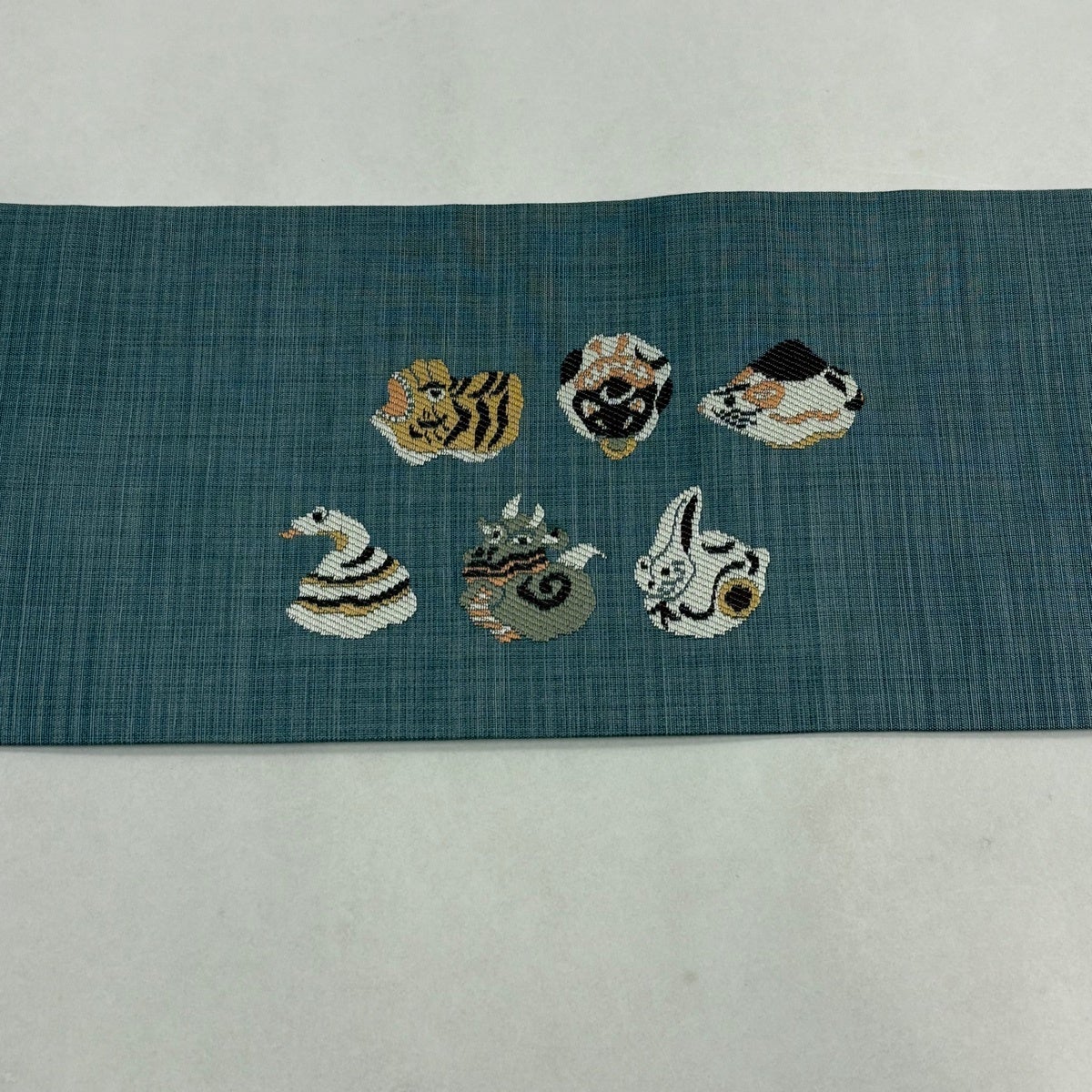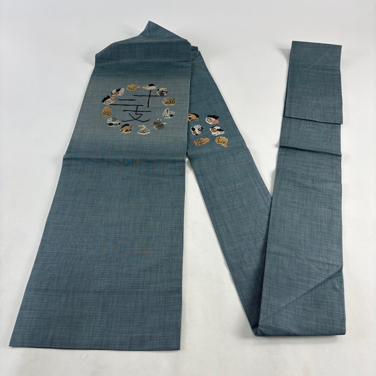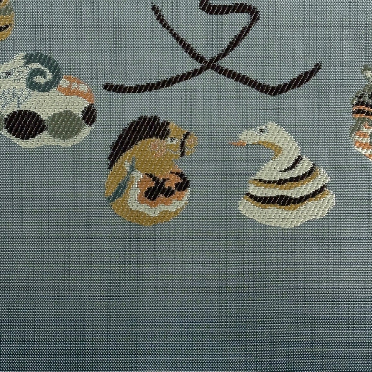 40%OFF 名古屋帯 逸品 猫 青灰色 正絹 K30