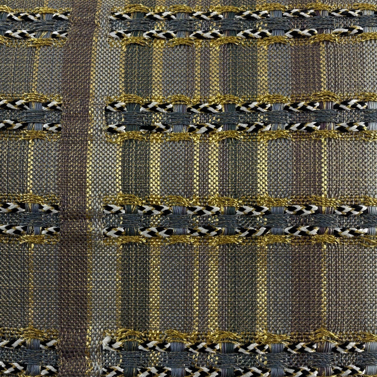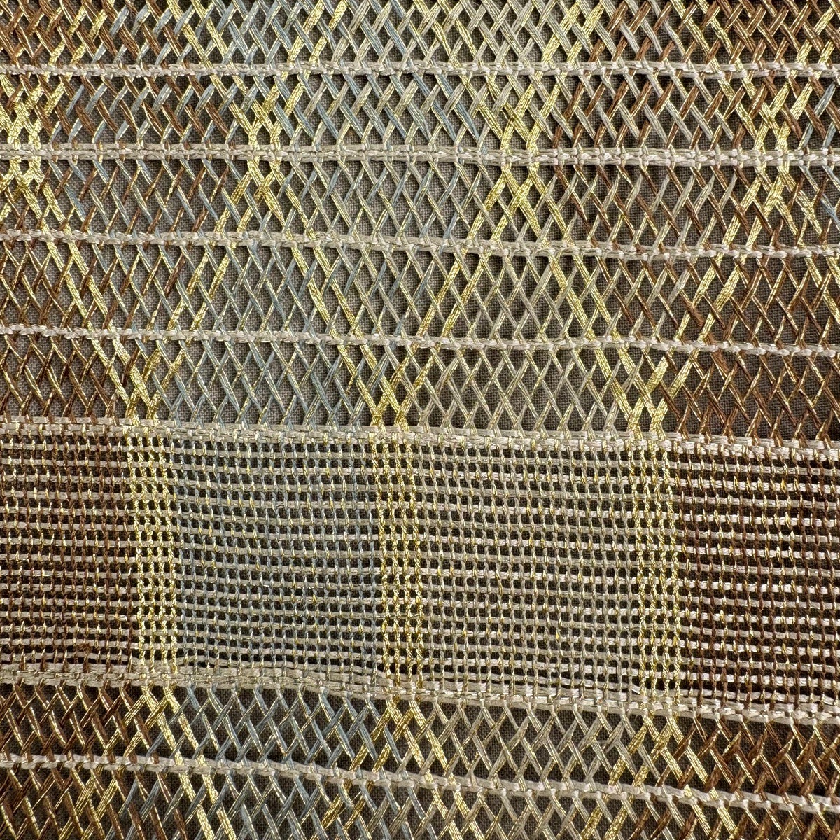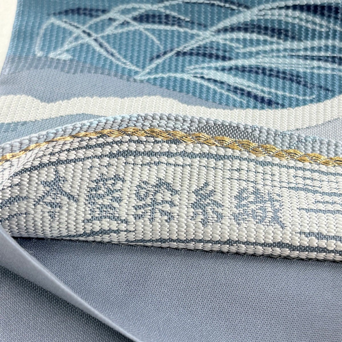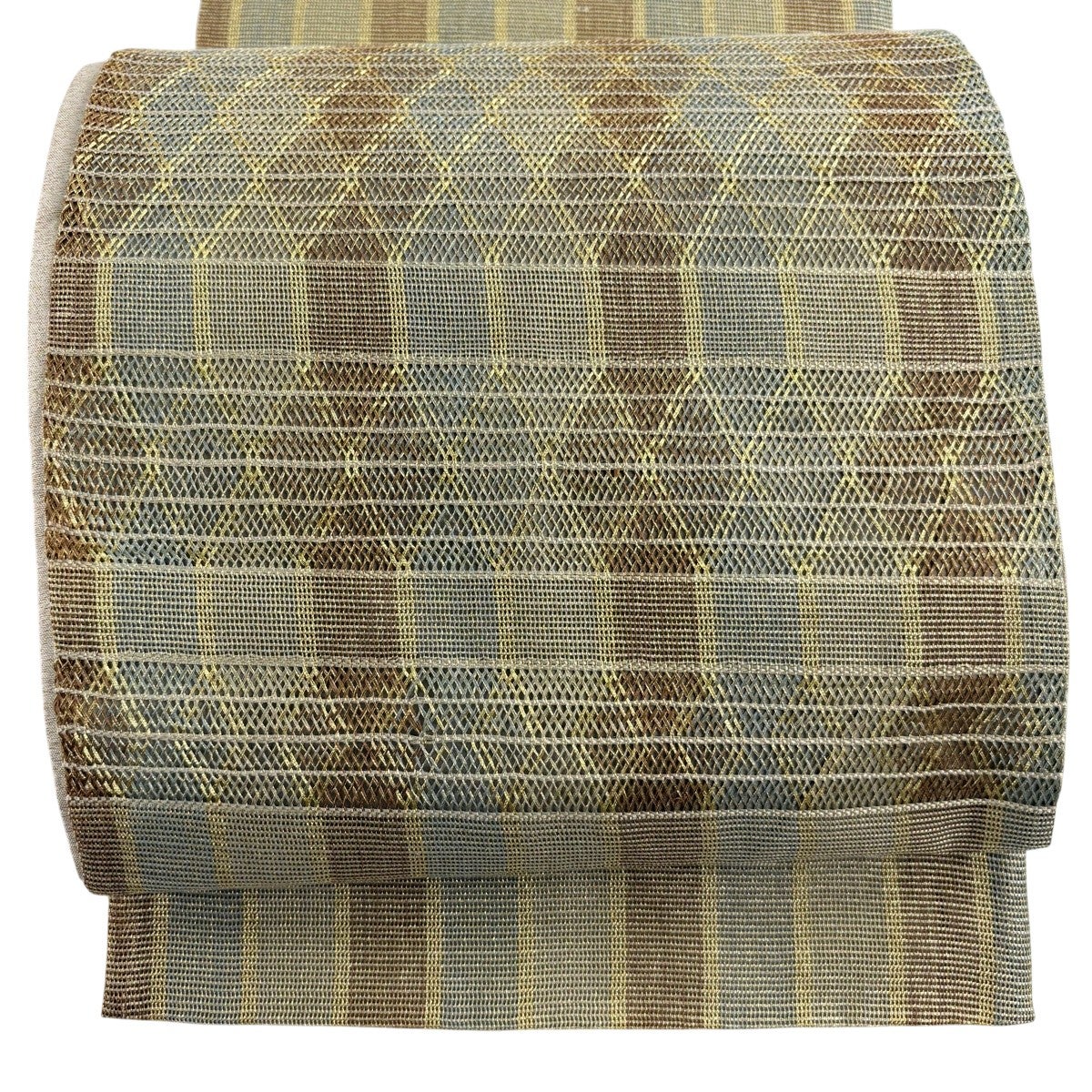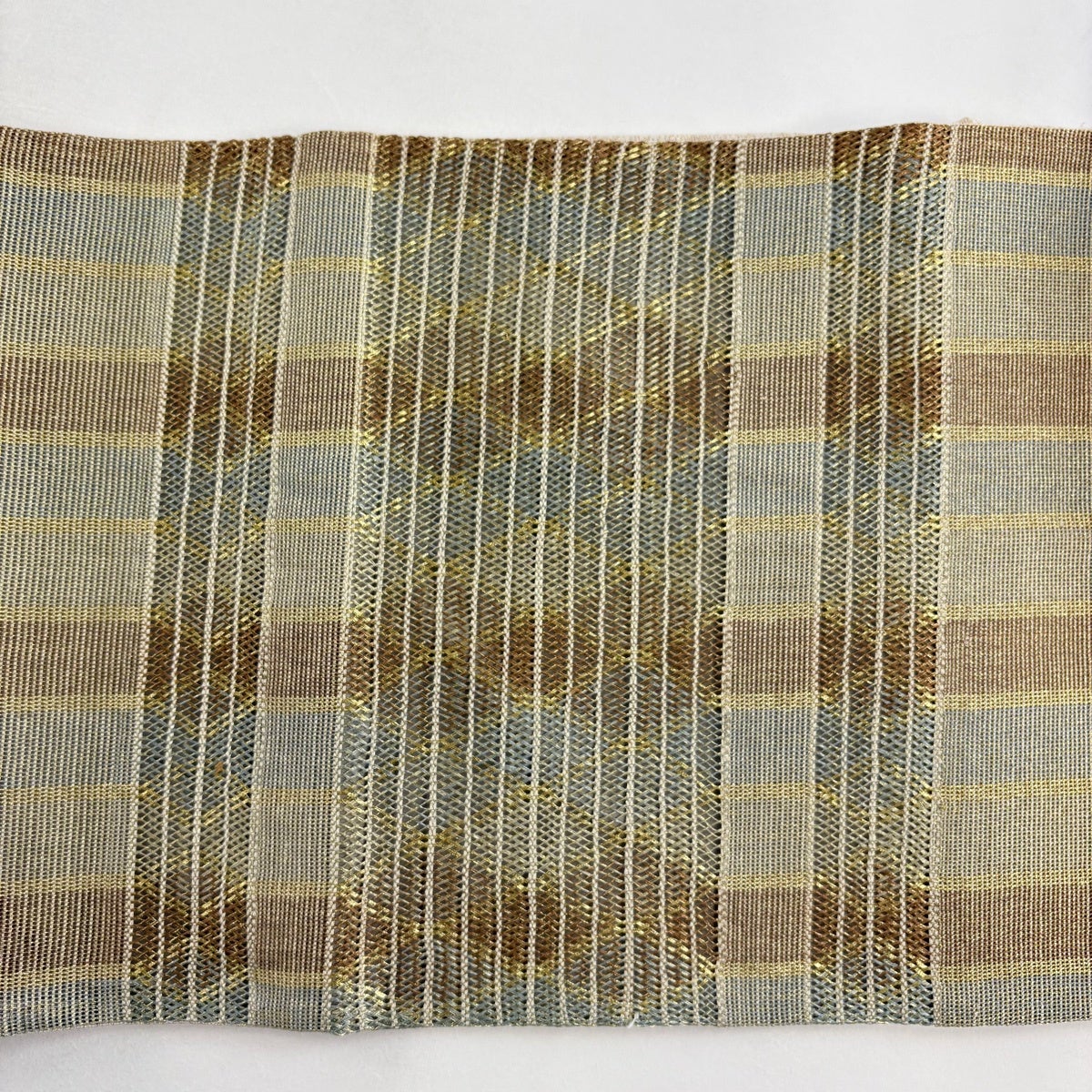 袋帯 秀品 縞 幾何学模様 金糸 青灰色 お太鼓柄 正絹
