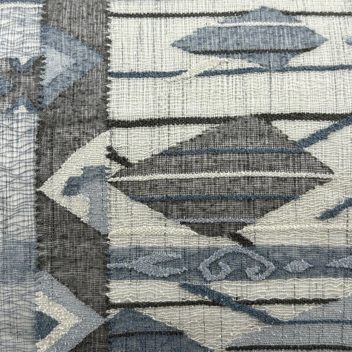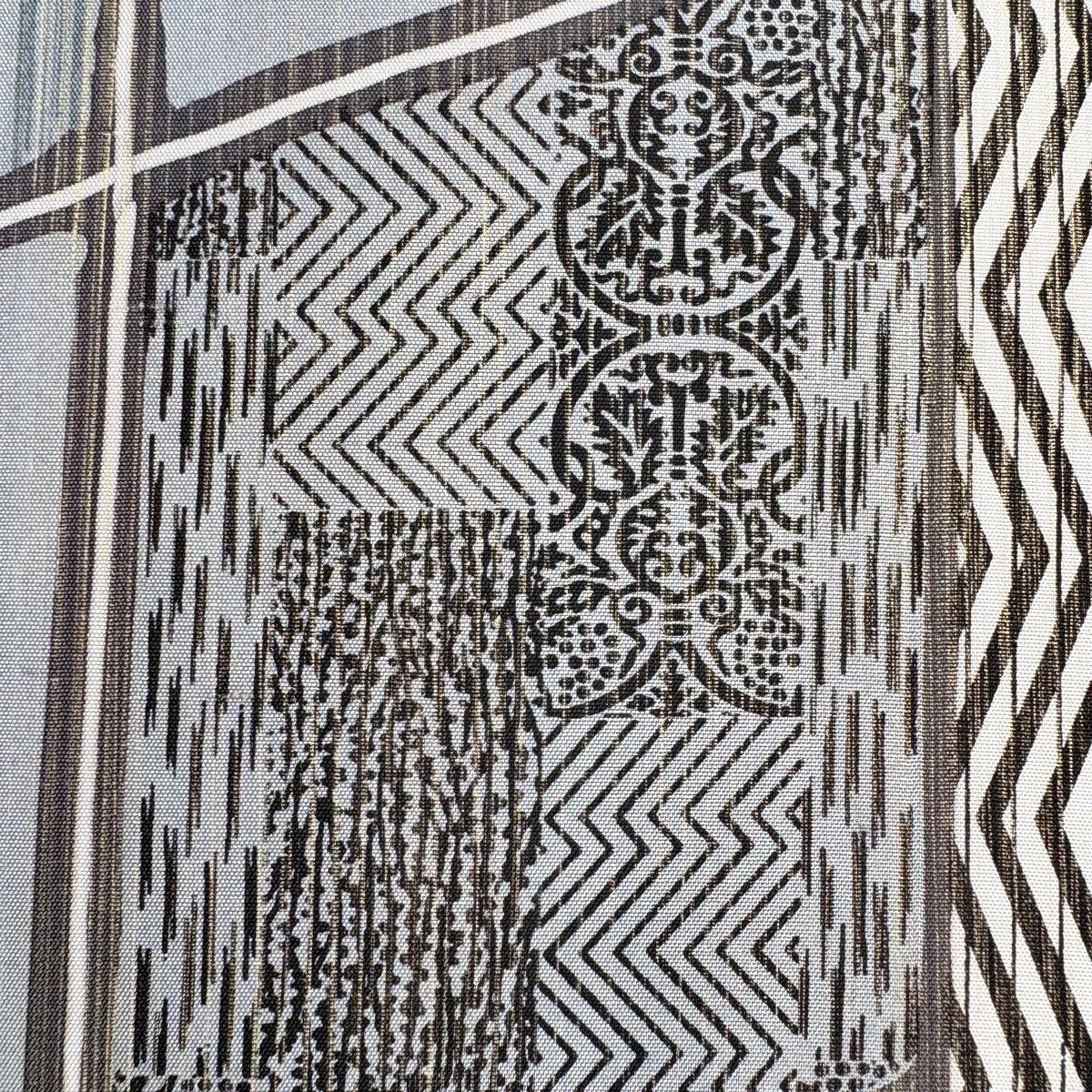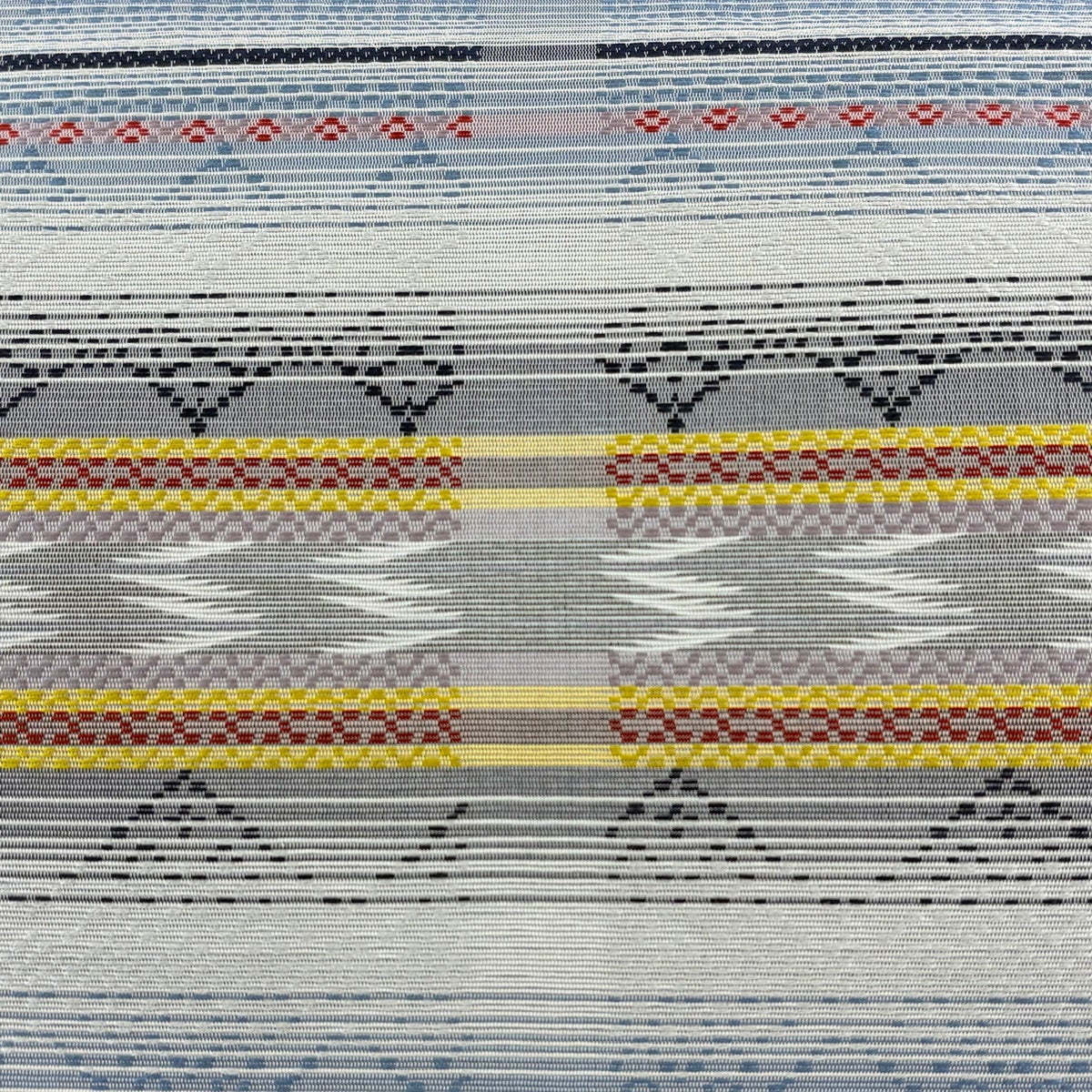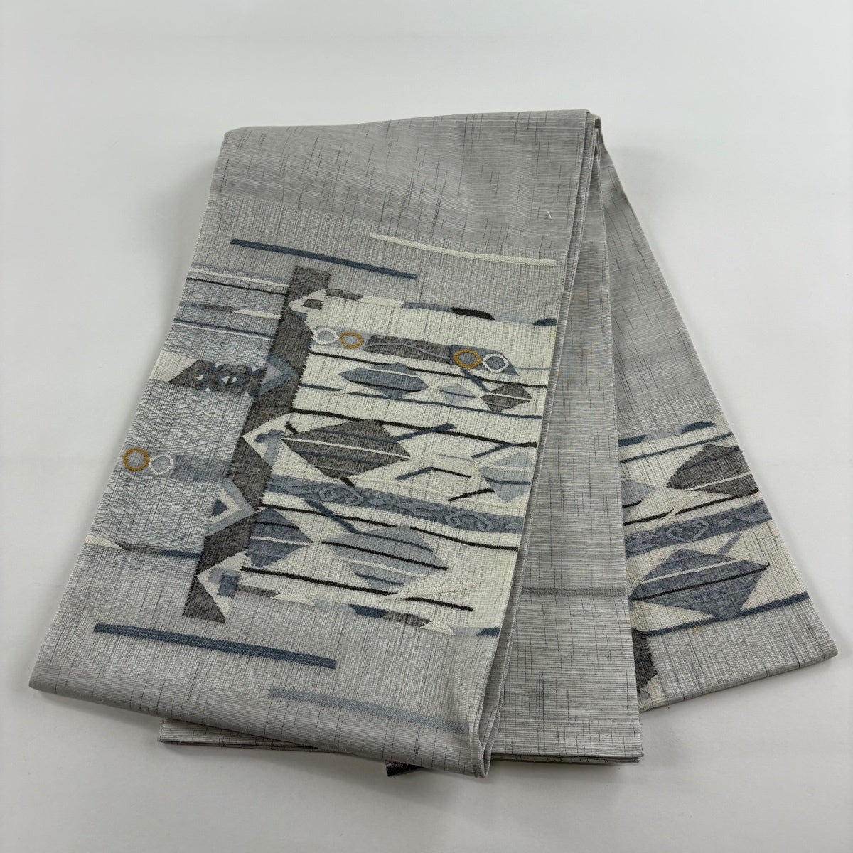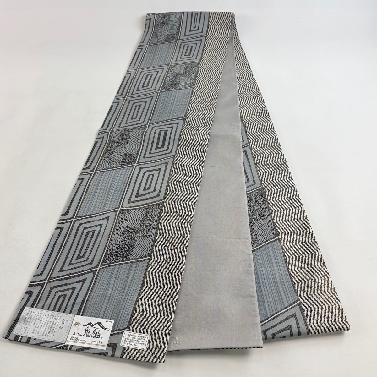 【美品】 袋帯 名品 縞 幾何学模様 青灰色 全通 正絹