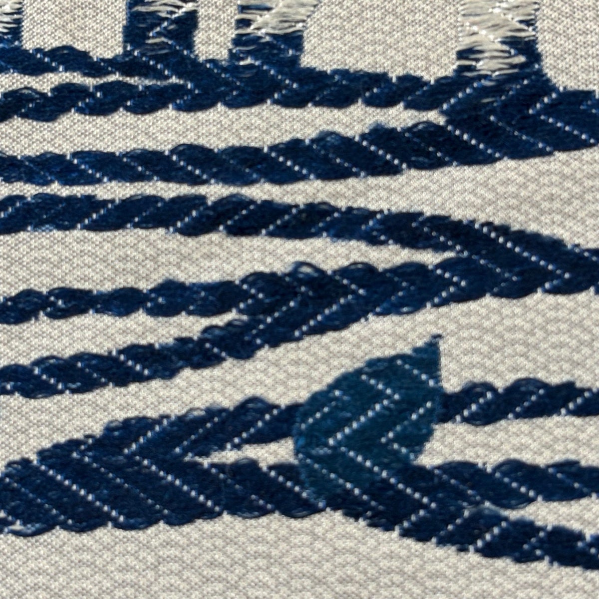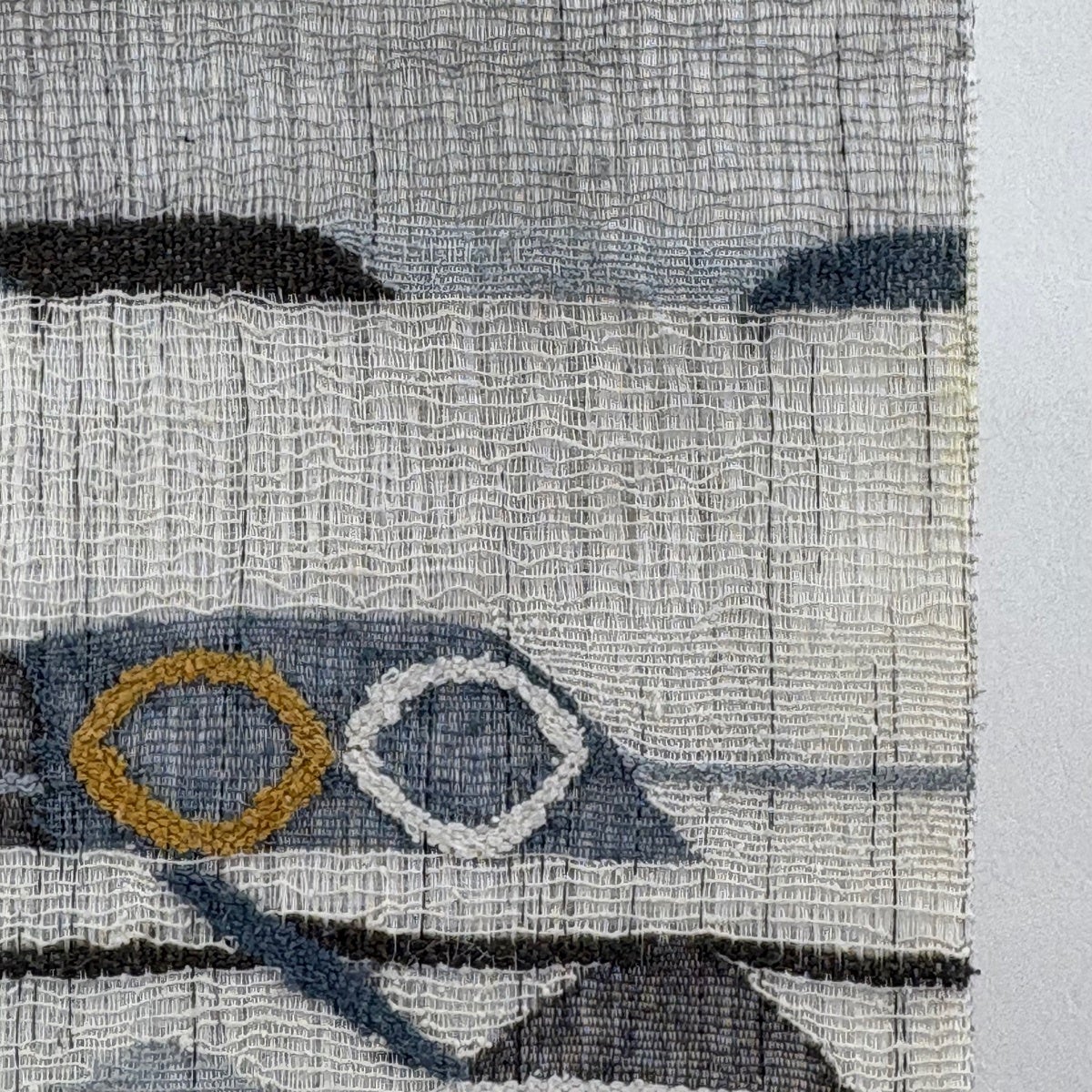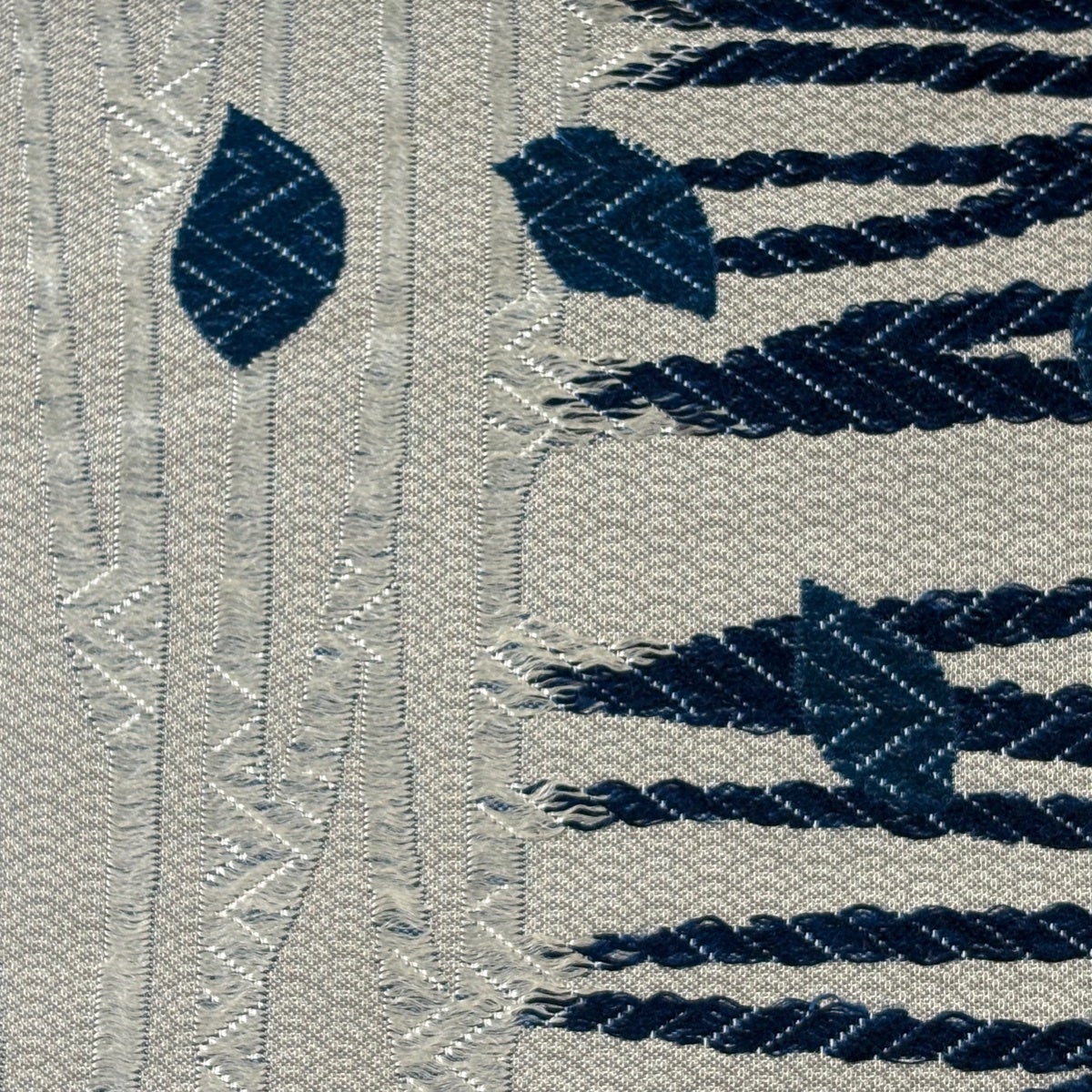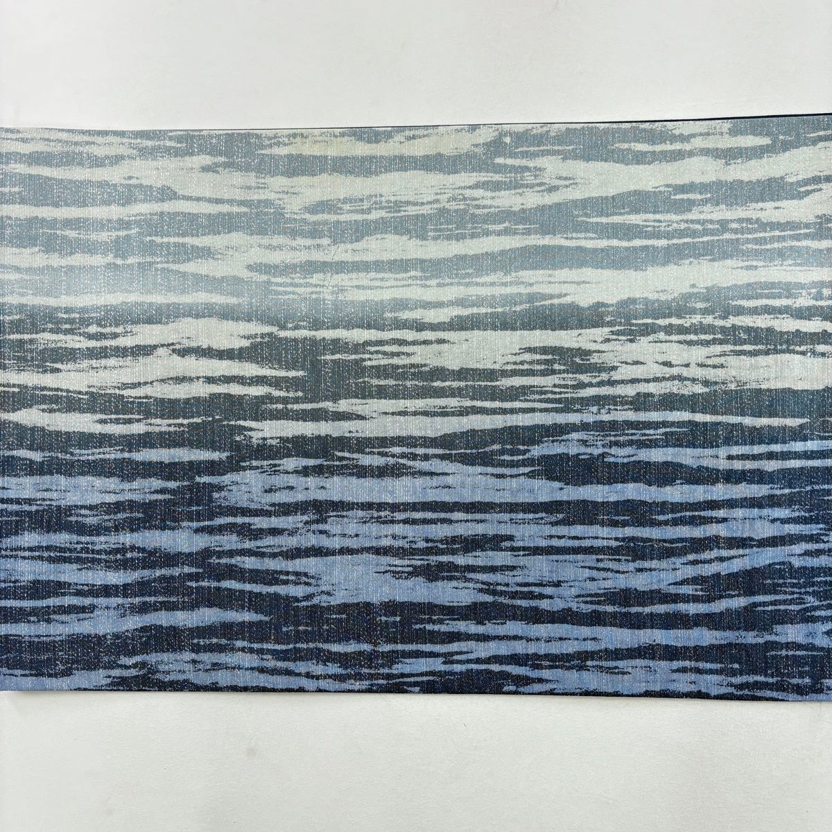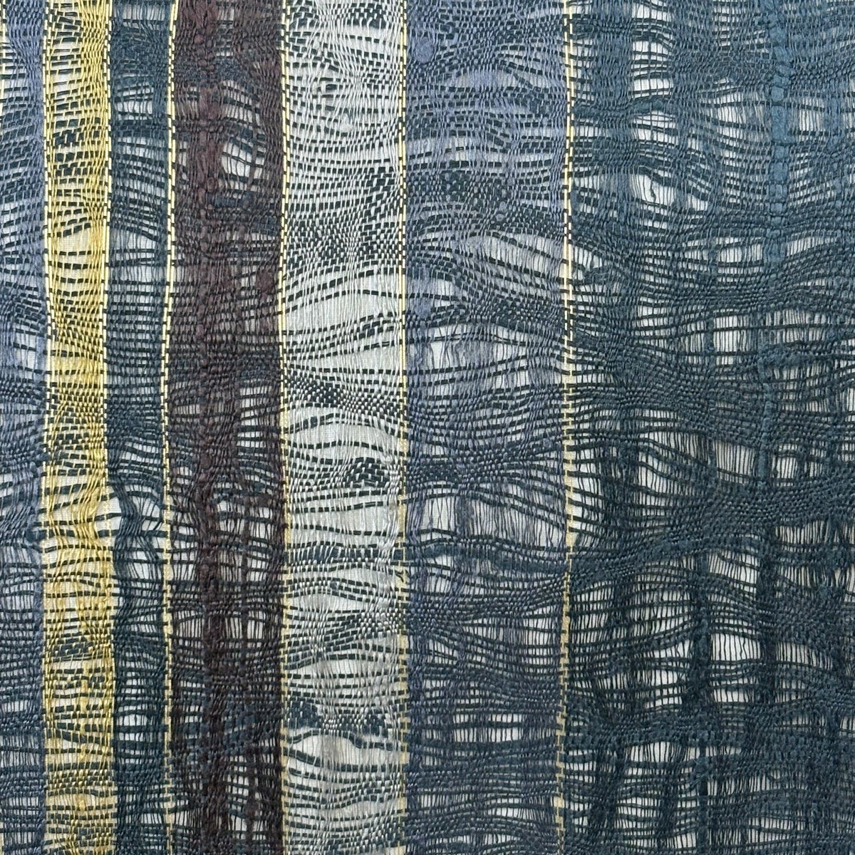 【美品】 袋帯 名品 縞 幾何学模様 青灰色 全通 正絹