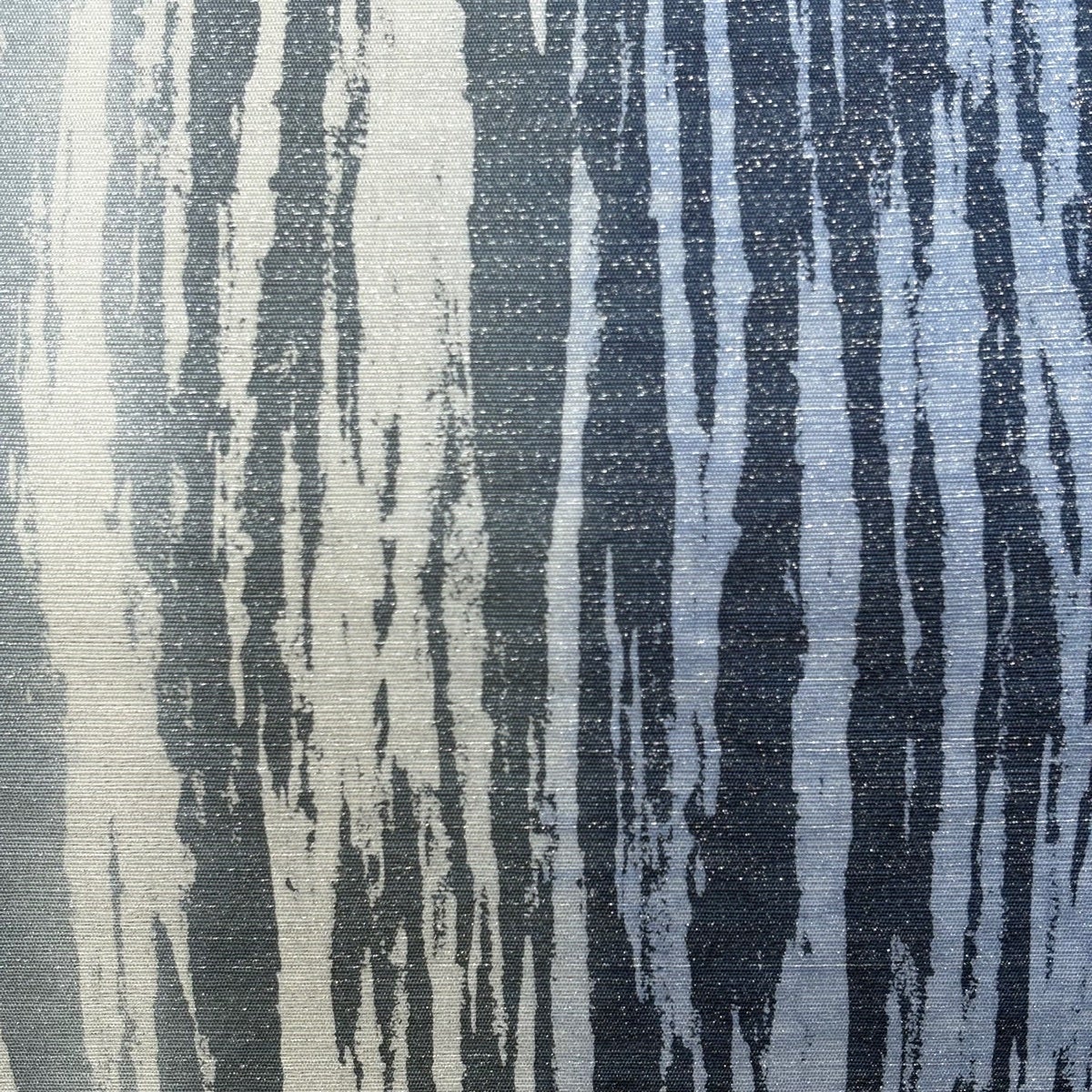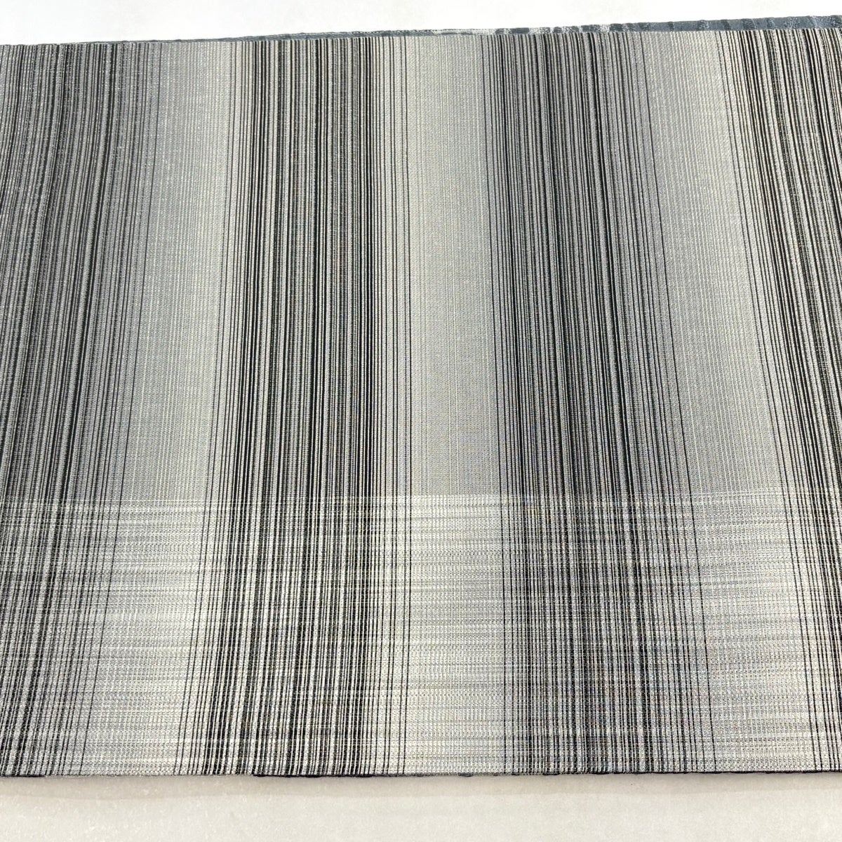 【美品】 袋帯 秀品 霞 縞 銀糸 青灰色 全通 正絹