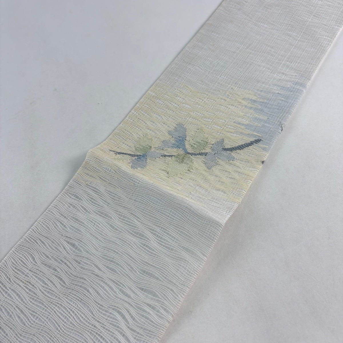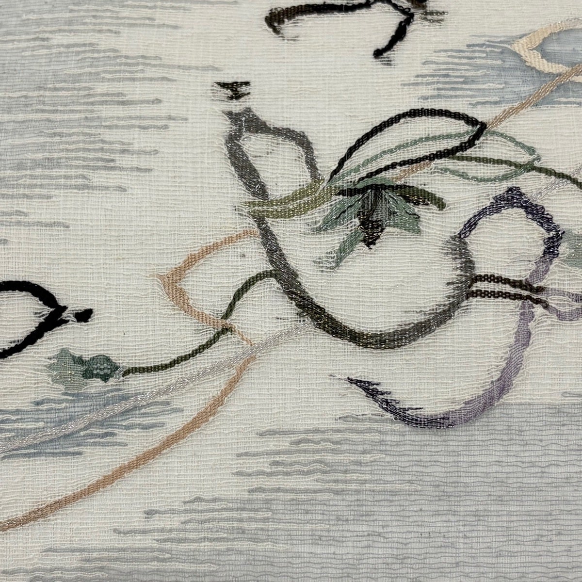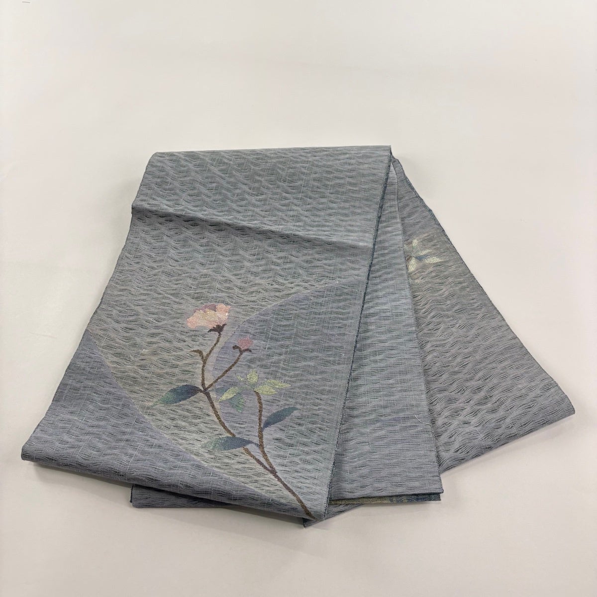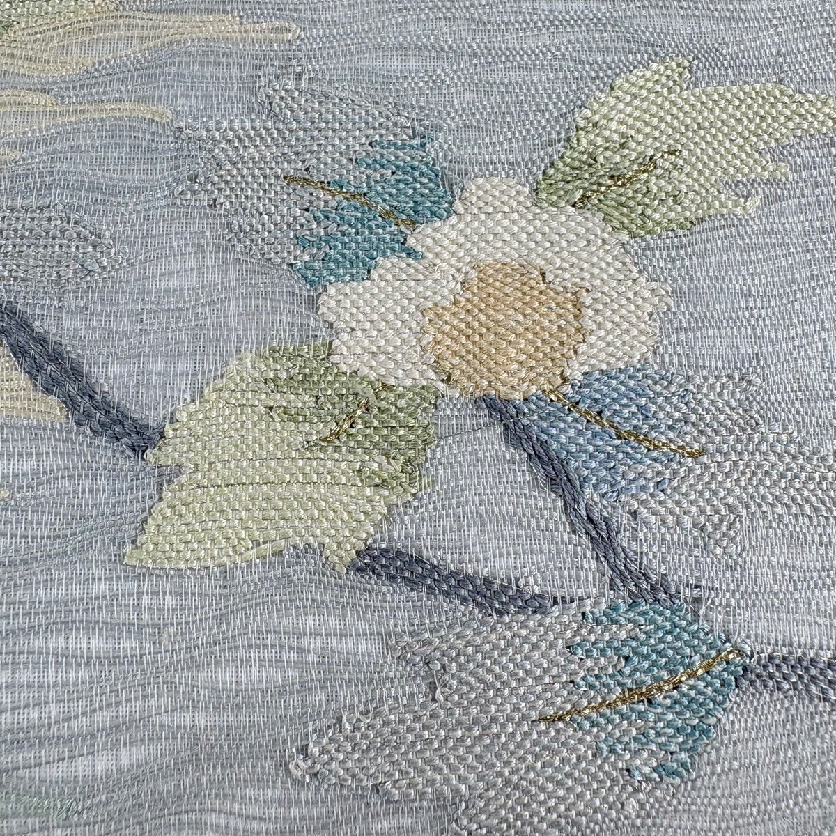 名古屋帯 秀品 夏帯 枝花 霞 金銀糸 青灰色 正絹