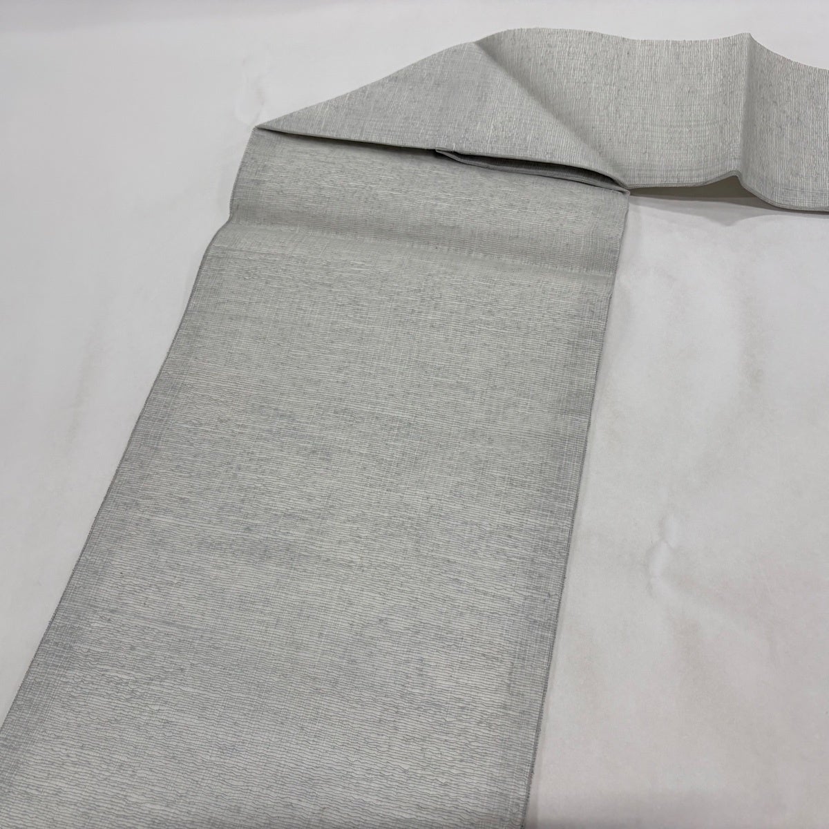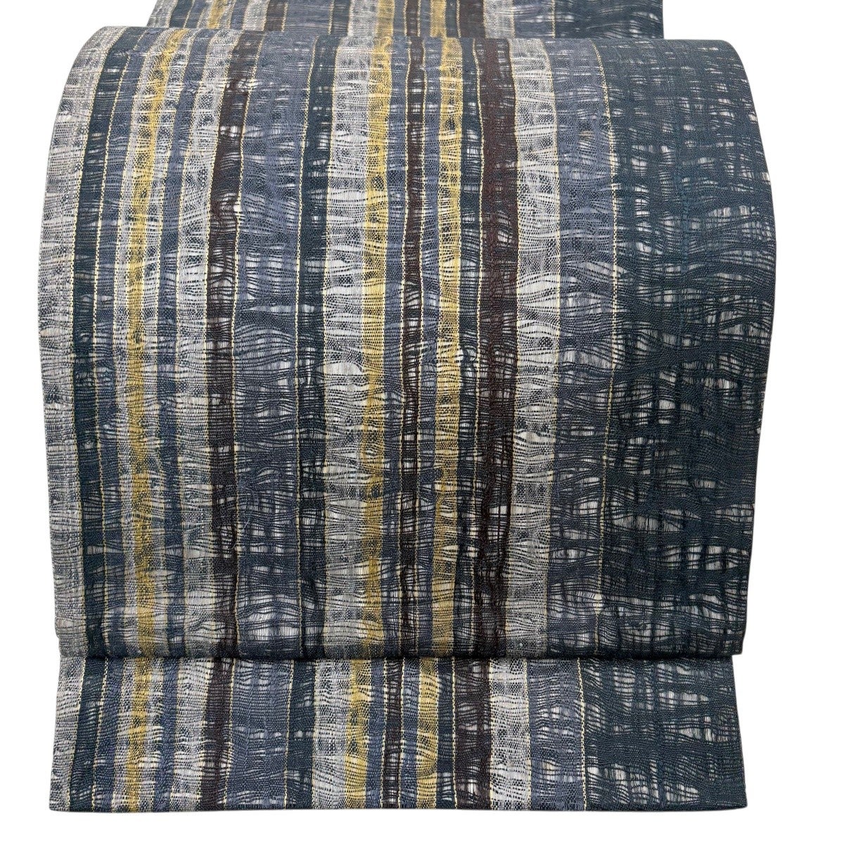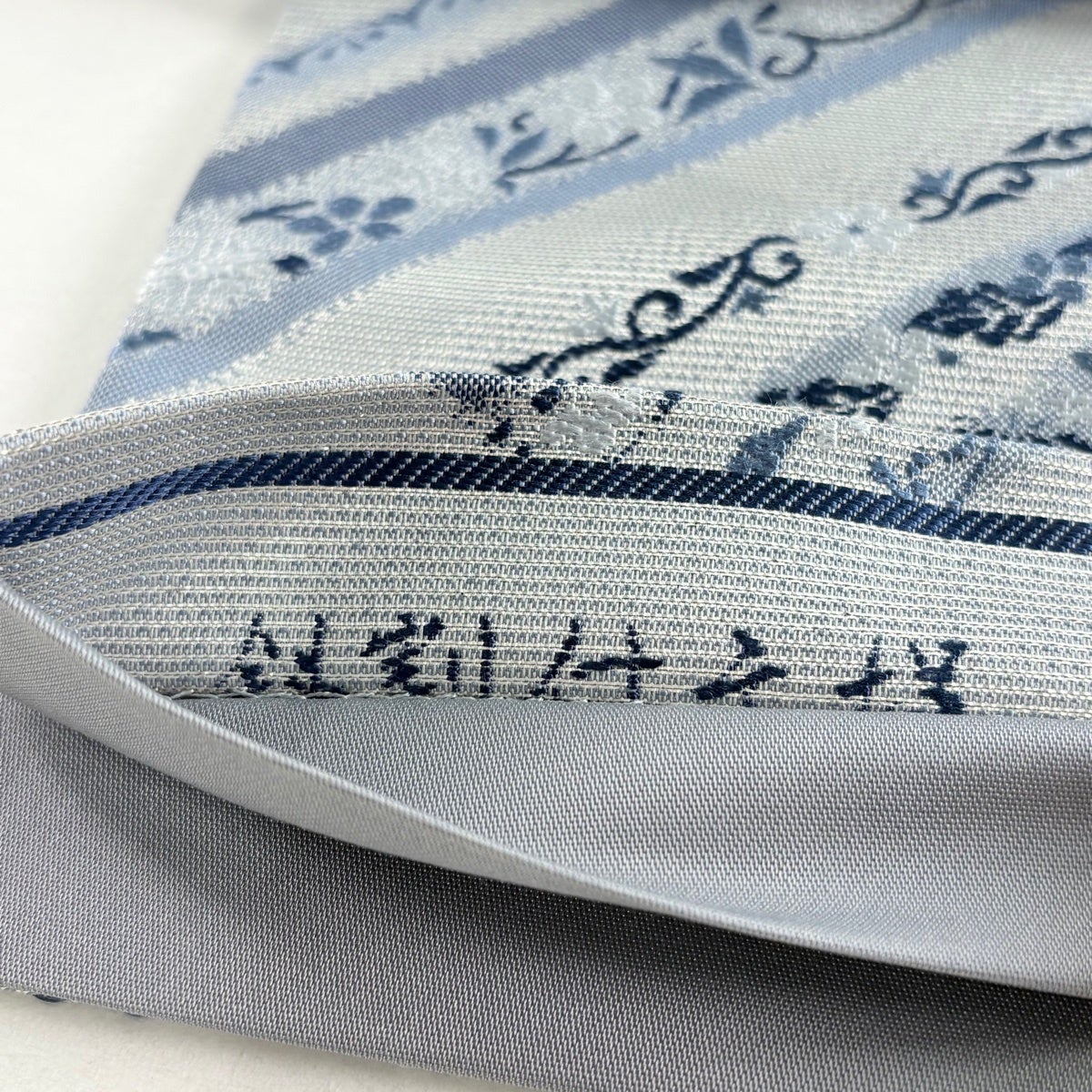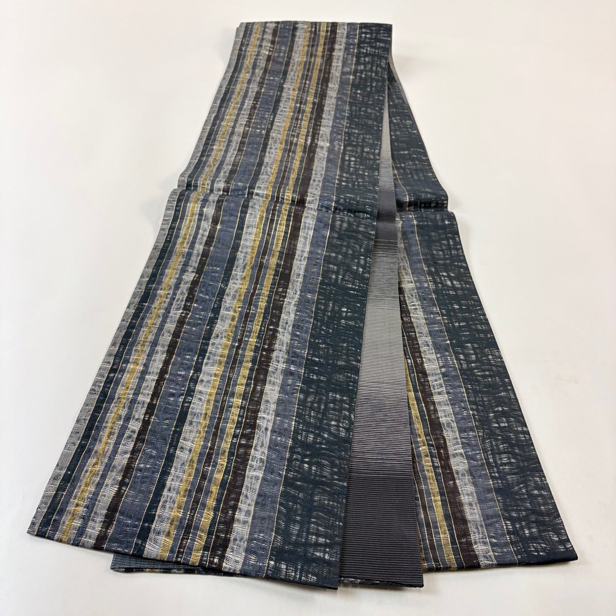 袋帯 秀品 落款あり 縞 銀通し 青灰色 六通 正絹