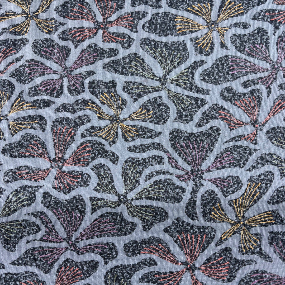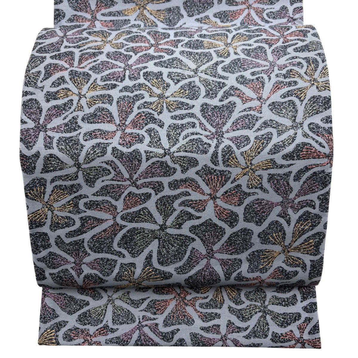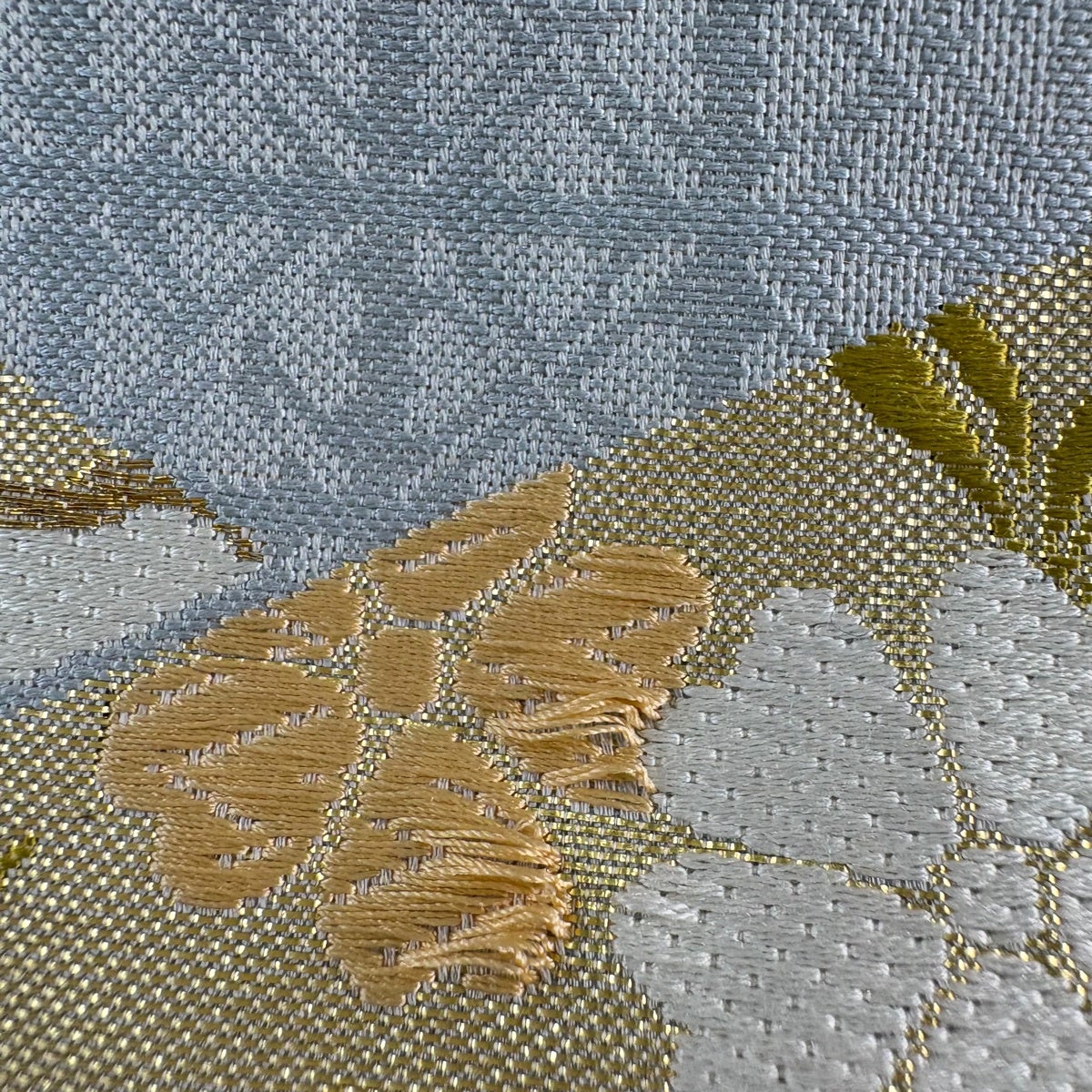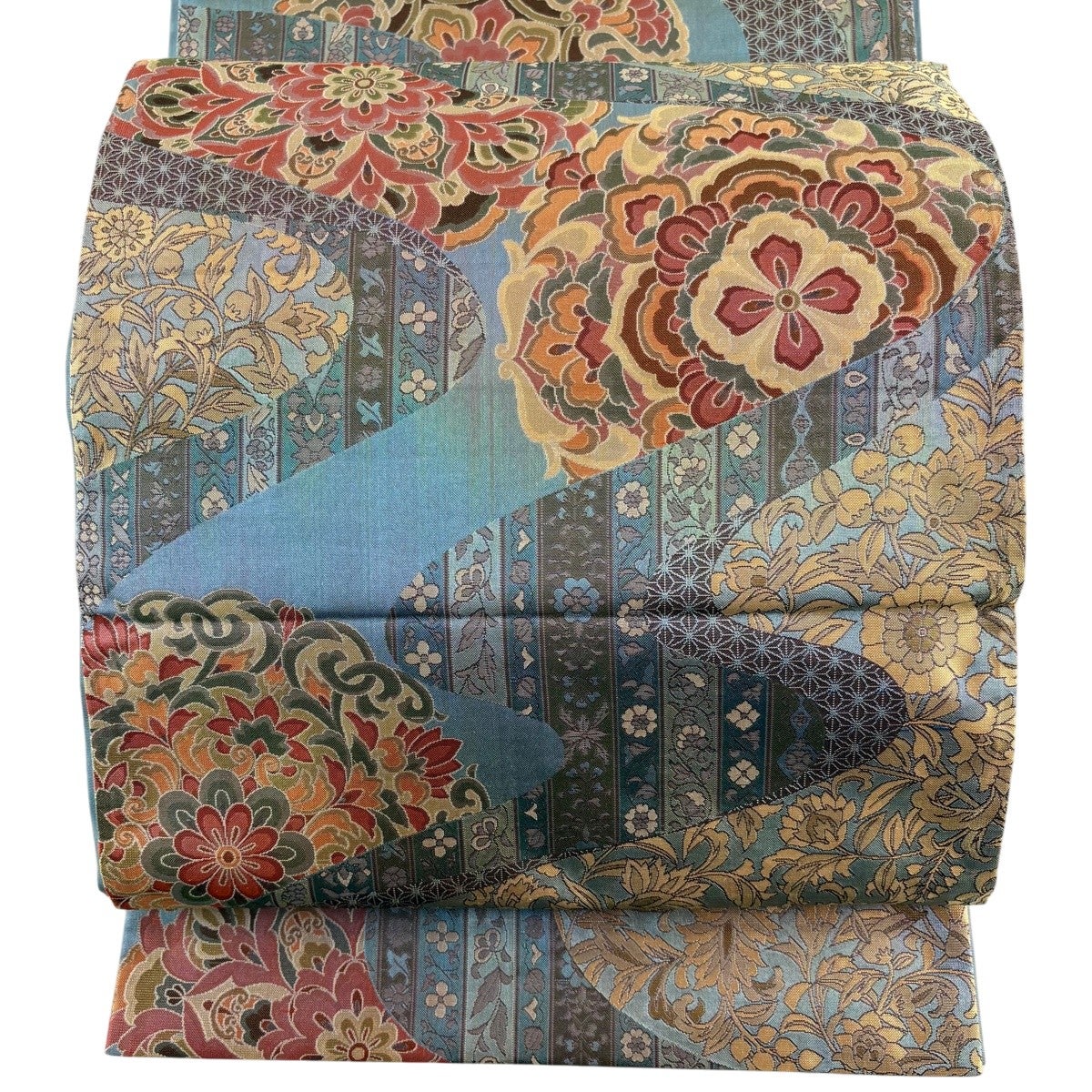 袋帯 秀品 草花 華文 金糸 箔 青灰色 六通 正絹