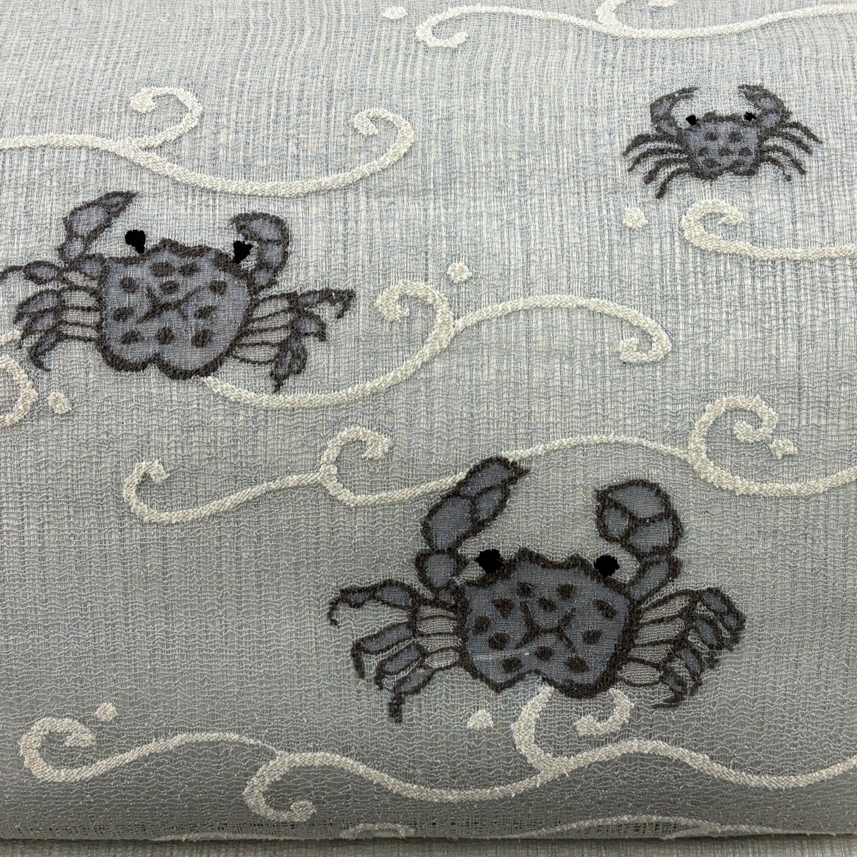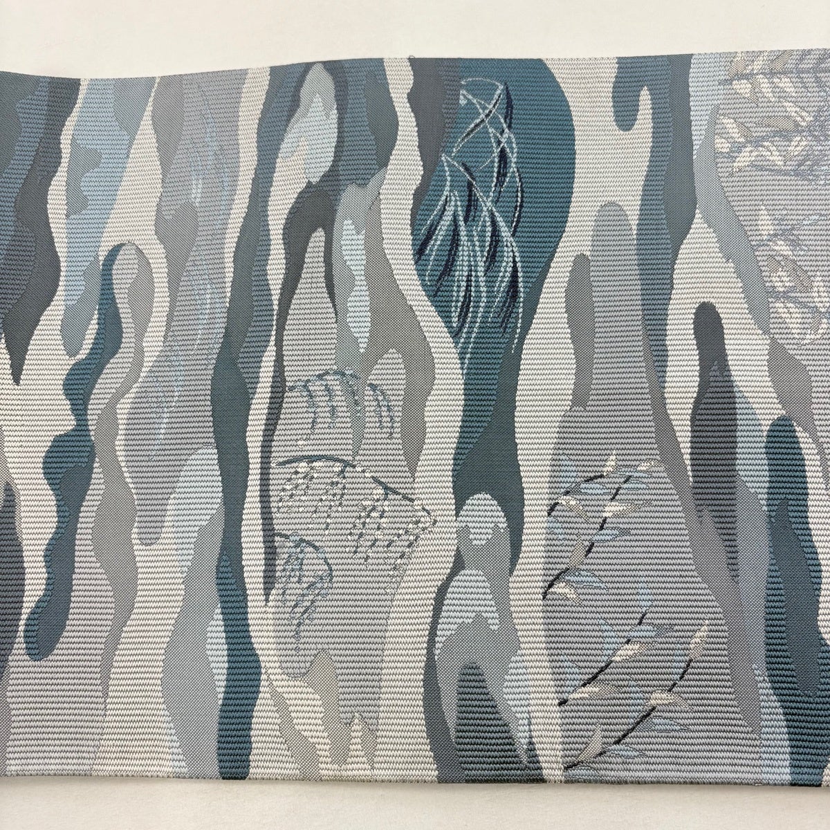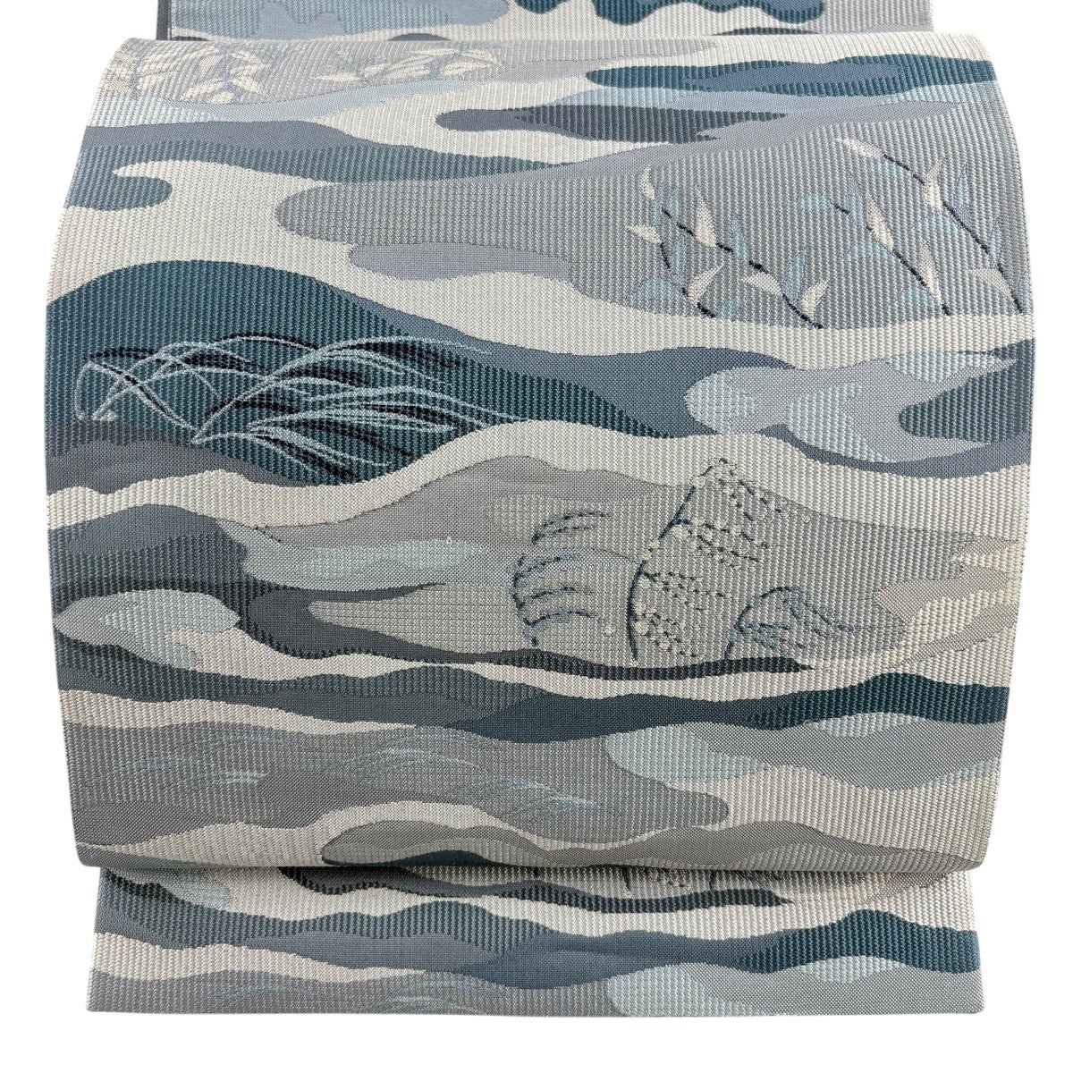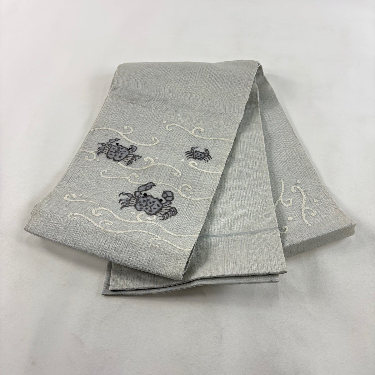 袋帯 秀品 夏帯 蟹 波 箔 青灰色 お太鼓柄 正絹