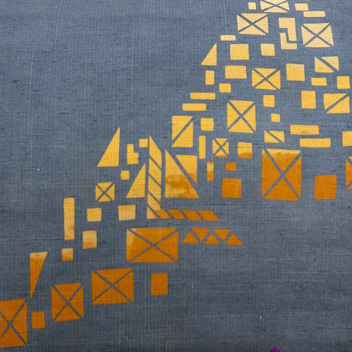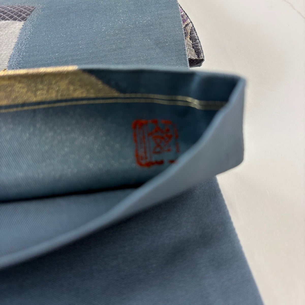【美品】 袋帯 秀品 幾何学 箔 青灰色 お太鼓柄 正絹