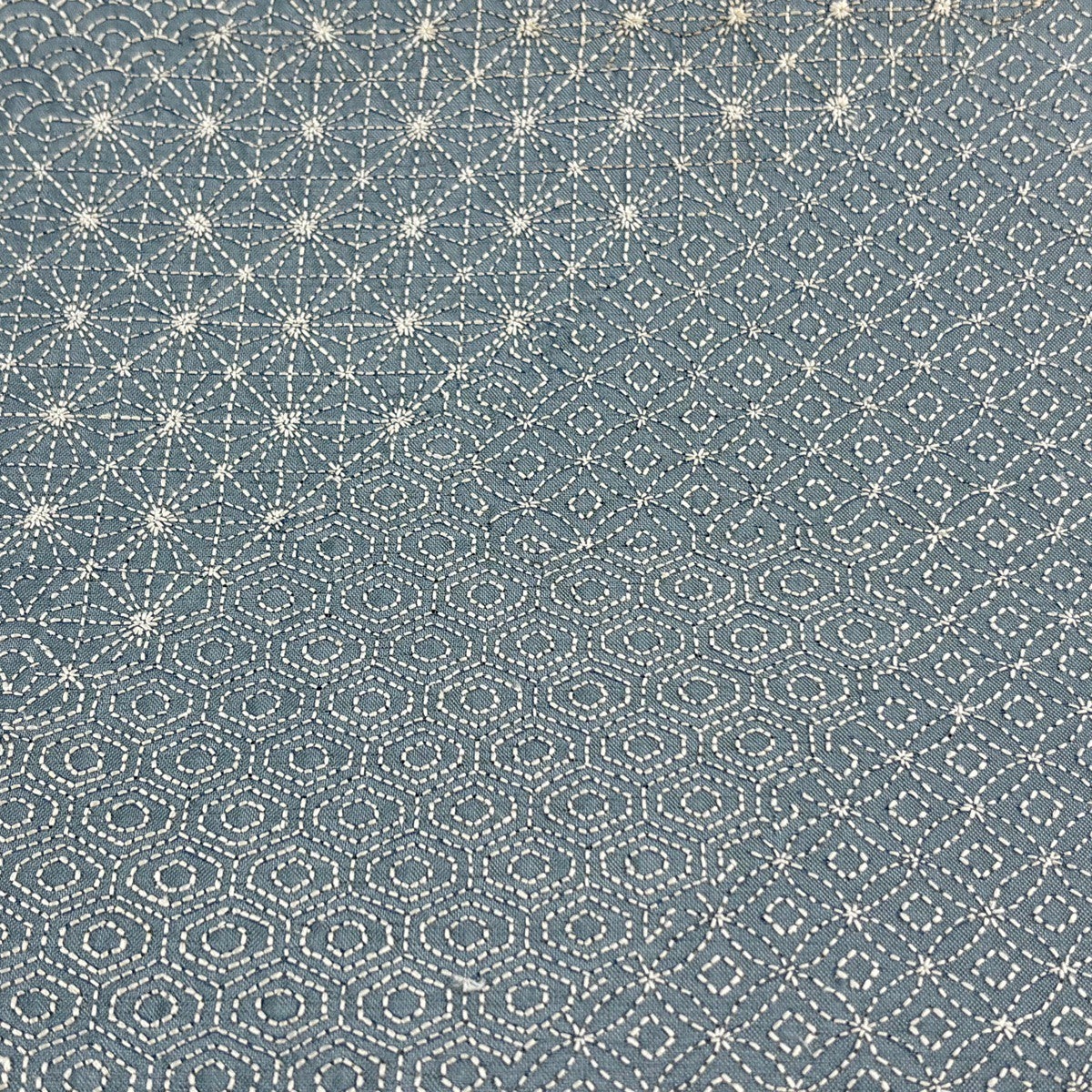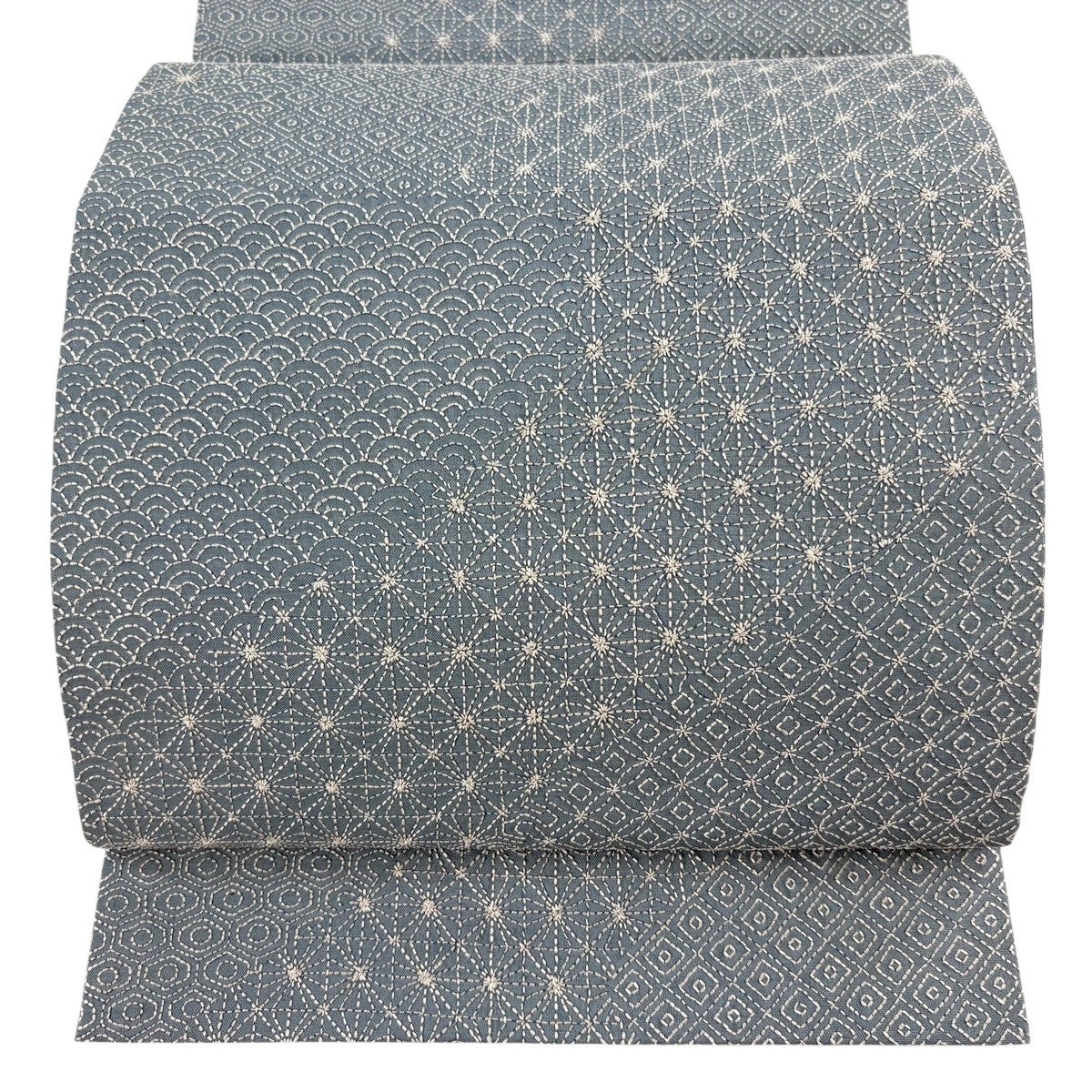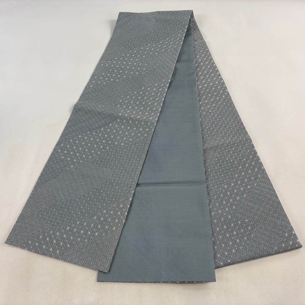 【美品】 袋帯 名品 麻の葉 銀通し 青灰色 六通 正絹