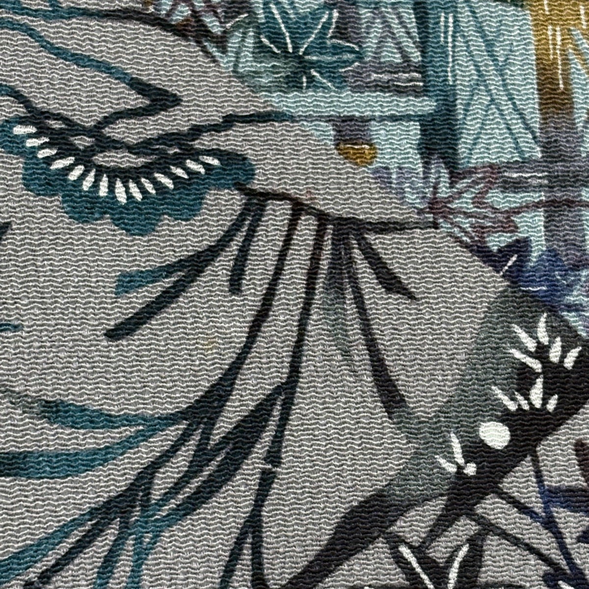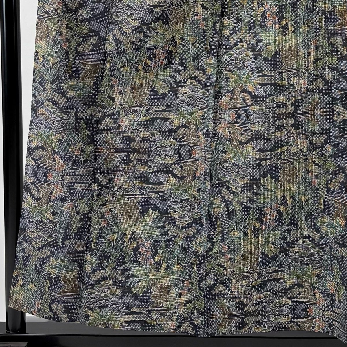 小紋 身丈154cm 裄丈65.5cm M 単衣 天然藍染 樹木 青灰色 正絹 逸品