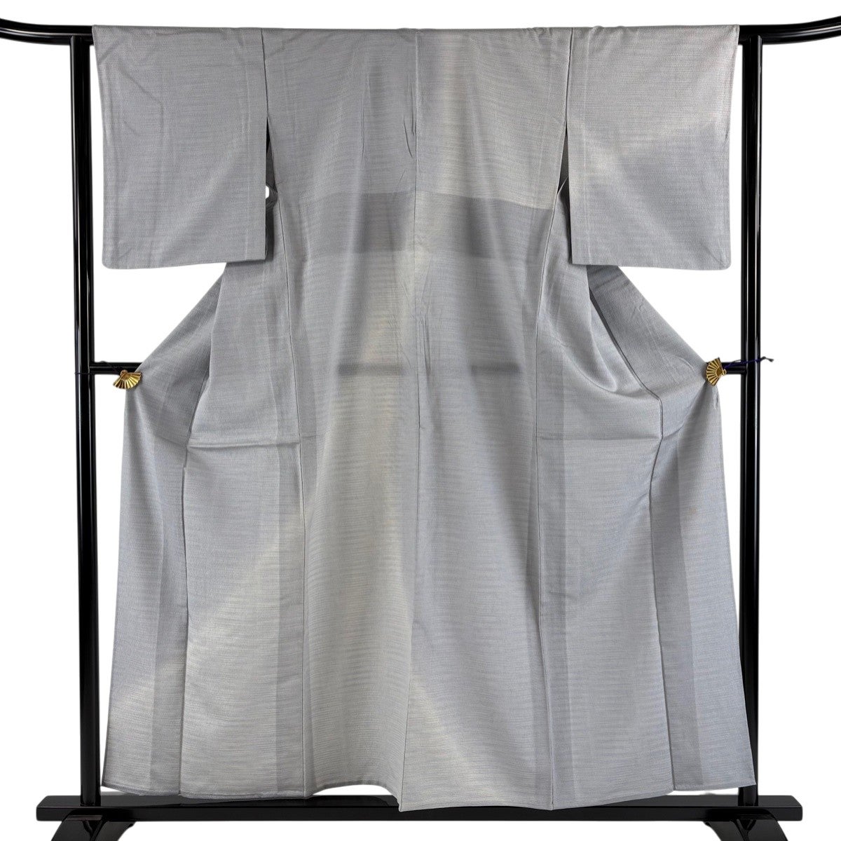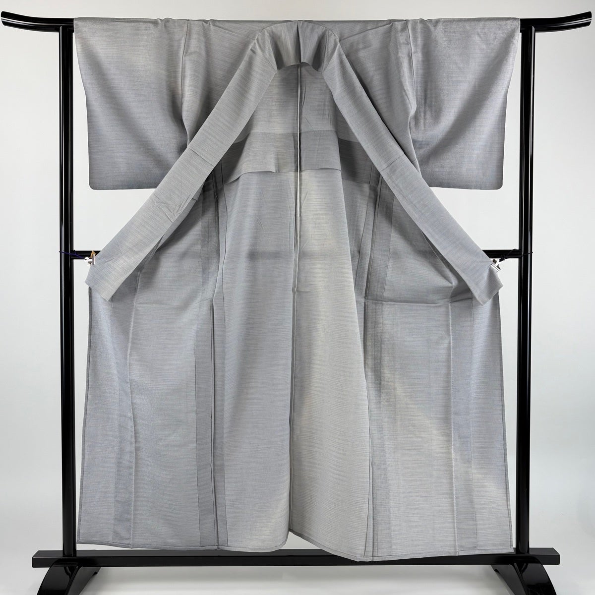 小紋 身丈153.5cm 裄丈64.5cm M 薄物 絽 霞 青灰色 正絹 名品 一つ紋