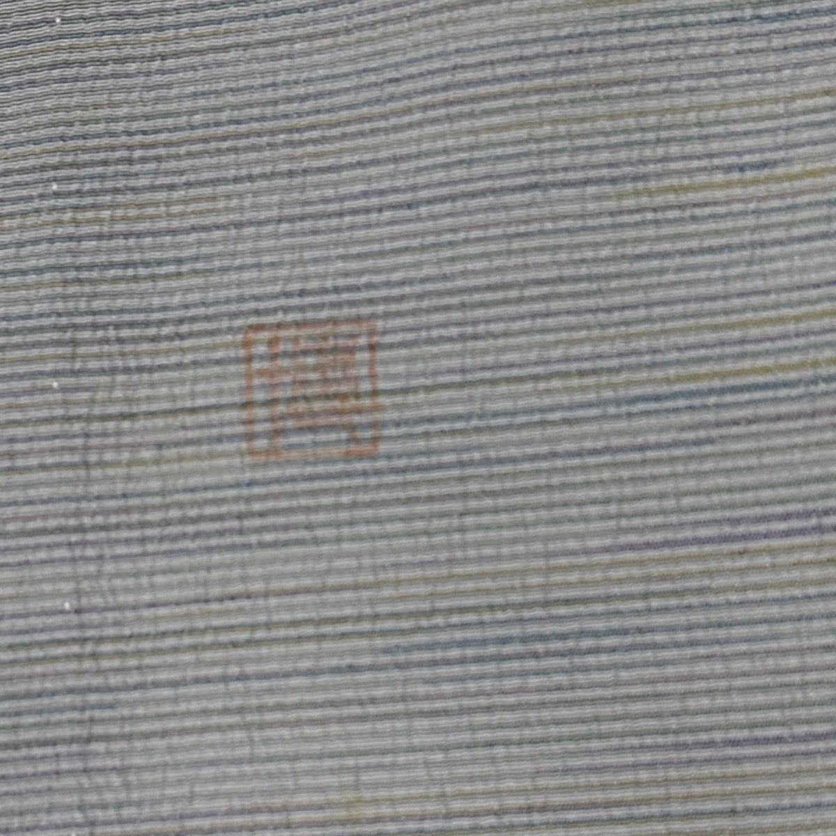 付下げ 身丈156.5cm 裄丈63cm S 単衣 落款あり 縞 青灰色 正絹 秀品