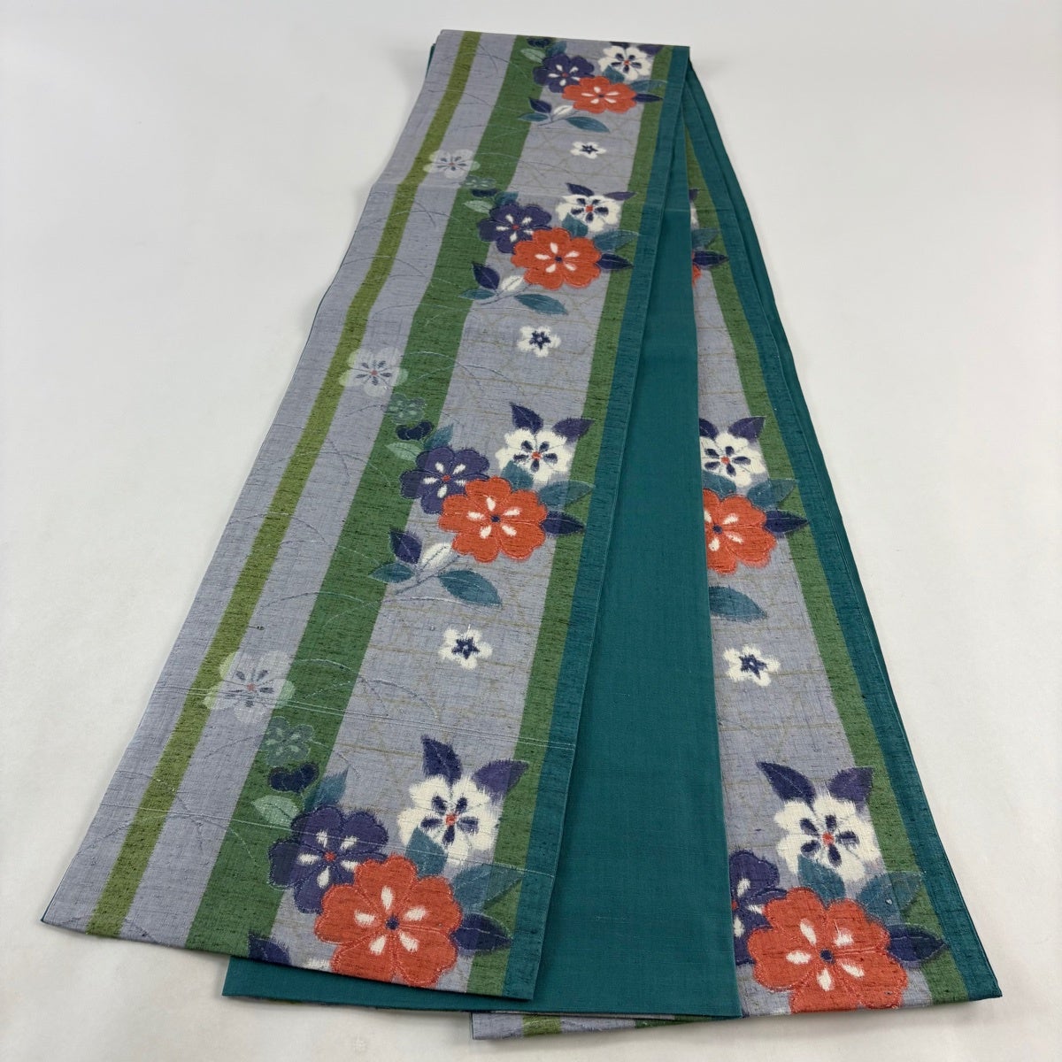 小紋 身丈163.5cm 裄丈67cm M 薄物 絽 草花 ヱ霞 青灰色 化繊 秀品